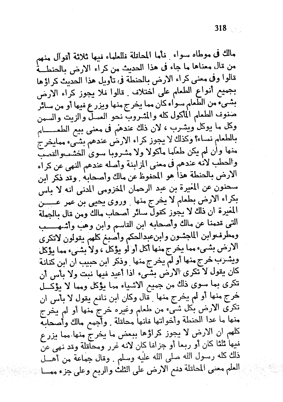 مالك في موطاه سَوَاءً فَأَمَّا الْمُحَاقَلَةُ فَلِلْعُلَمَاءِ فِيهَا ثَلَاثَةُ أَقْوَالٍ مِنْهُمْ مَنْ قَالَ مَعْنَاهَا مَا جَاءَ فِي هَذَا الْحَدِيثِ مِنْ كِرَاءِ الْأَرْضِ بِالْحِنْطَةِ قَالُوا وَفِي مَعْنَى كِرَاءِ الْأَرْضِ بِالْحِنْطَةِ فِي تَأَوُّلِ هَذَا الْحَدِيثِ كِرَاؤُهَا بِجَمِيعِ أَنْوَاعِ الطَّعَامِ عَلَى اخْتِلَافٍ قَالُوا فَلَا يَجُوزُ كِرَاءُ الْأَرْضِ بِشَيْءٍ مِنَ الطَّعَامِ سَوَاءٌ كَانَ مِمَّا يَخْرُجُ مِنْهَا وَيُزْرَعُ فِيهَا أَوْ مِنْ سَائِرِ صُنُوفِ الطَّعَامِ الْمَأْكُولِ كُلِّهِ وَالْمَشْرُوبِ نَحْوَ الْعَسَلِ وَالزَّيْتِ وَالسَّمْنِ وَكُلِّ مَا يُؤْكَلُ وَيُشْرَبُ لِأَنَّ ذَلِكَ عِنْدَهُمْ فِي مَعْنَى بَيْعِ الطَّعَامِ بِالطَّعَامِ نَسَاءً وَكَذَلِكَ لَا يَجُوزُ كِرَاءُ الْأَرْضِ عِنْدَهُمْ بِشَيْءٍ مِمَّا يَخْرُجُ مِنْهَا وَإِنْ لَمْ يَكُنْ طَعَامًا مَأْكُولًا وَلَا مَشْرُوبًا سِوَى الْخَشَبِ وَالْقَصَبِ وَالْحَطَبِ لِأَنَّهُ عِنْدَهُمْ فِي مَعْنَى الْمُزَابَنَةِ وَأَصْلُهُ عِنْدَهُمُ النَّهْيُ عَنْ كِرَاءِ الْأَرْضِ بِالْحِنْطَةِ هَذَا هُوَ الْمَحْفُوظُ عَنْ مَالِكٍ وَأَصْحَابِهِ وَقَدْ ذَكَرَ ابْنُ سَحْنُونٍ عن المغيرة بن عبد الرحمان الْمَخْزُومِيِّ الْمَدَنِيِّ أَنَّهُ لَا بَاسَ بِكِرَاءِ الْأَرْضِ بِطَعَامٍ لَا يَخْرُجُ مِنْهَا وَرَوَى يَحْيَى بْنُ عُمَرَ عَنِ الْمُغِيرَةِ أَنَّ ذَلِكَ لَا يَجُوزُ كَقَوْلِ سَائِرِ أَصْحَابِ مَالِكٍ وَمَنْ قَالَ بِالْجُمْلَةِ الَّتِي قَدَّمْنَا عَنْ مَالِكٍ وَأَصْحَابِهِ ابْنُ الْقَاسِمِ وَابْنُ وَهْبٍ وَأَشْهَبُ وَمُطَرِّفٌ وَابْنُ الْمَاجِشُونِ وَابْنُ عَبْدِ الْحَكَمِ وَأَصْبَغُ كُلُّهُمْ يَقُولُونَ لَا تُكْرَى الْأَرْضُ بِشَيْءٍ مِمَّا يَخْرُجُ مِنْهَا أُكِلَ أَوْ لَمْ يُؤْكَلْ وَلَا بِشَيْءٍ مِمَّا يُؤْكَلُ وَيُشْرَبُ خَرَجَ مِنْهَا أَوْ لَمْ يَخْرُجْ مِنْهَا وَذَكَرَ ابْنُ حَبِيبٍ أَنَّ ابْنَ كِنَانَةَ كَانَ يَقُولُ لَا تُكْرَى الْأَرْضُ بِشَيْءٍ إِذَا أُعِيدَ فِيهَا نَبْتٌ وَلَا بَأْسَ أَنْ تُكْرَى بِمَا سِوَى ذَلِكَ مِنْ جَمِيعِ الْأَشْيَاءِ مِمَّا يُؤْكَلُ وَمِمَّا لَا يُؤْكَلُ خَرَجَ مِنْهَا أَوْ لَمْ يَخْرُجْ مِنْهَا قَالَ وَكَانَ ابْنُ نَافِعٍ يَقُولُ لَا بَأْسَ أَنْ تُكْرَى الْأَرْضُ بِكُلِّ شَيْءٍ مِنْ طَعَامٍ وَغَيْرِهِ خَرَجَ مِنْهَا أَوْ لَمْ يَخْرُجْ مِنْهَا مَا عَدَا الْحِنْطَةُ وَأَخَوَاتُهَا فَإِنَّهَا مُحَاقَلَةٌ وَأَجْمَعَ مَالِكٌ وَأَصْحَابُهُ كُلُّهُمْ أَنَّ الْأَرْضَ لَا يَجُوزُ كِرَاؤُهَا بِبَعْضِ مَا يَخْرُجُ مِنْهَا مِمَّا يُزْرَعُ فِيهَا ثُلُثًا كَانَ أَوْ رُبُعًا أَوْ جُزَافًا كَانَ لِأَنَّهُ غَرَرٌ وَمُحَاقَلَةٌ وَقَدْ نَهَى عَنْ ذَلِكَ كُلِّهِ رَسُولُ اللَّهِ صَلَّى اللَّهُ عَلَيْهِ وَسَلَّمَ وَقَالَ جَمَاعَةٌ مِنْ أَهْلِ الْعِلْمِ مَعْنَى الْمُحَاقَلَةِ دَفْعُ الْأَرْضِ عَلَى الثُّلُثِ وَالرُّبُعِ وَعَلَى جُزْءٍ مِمَّا