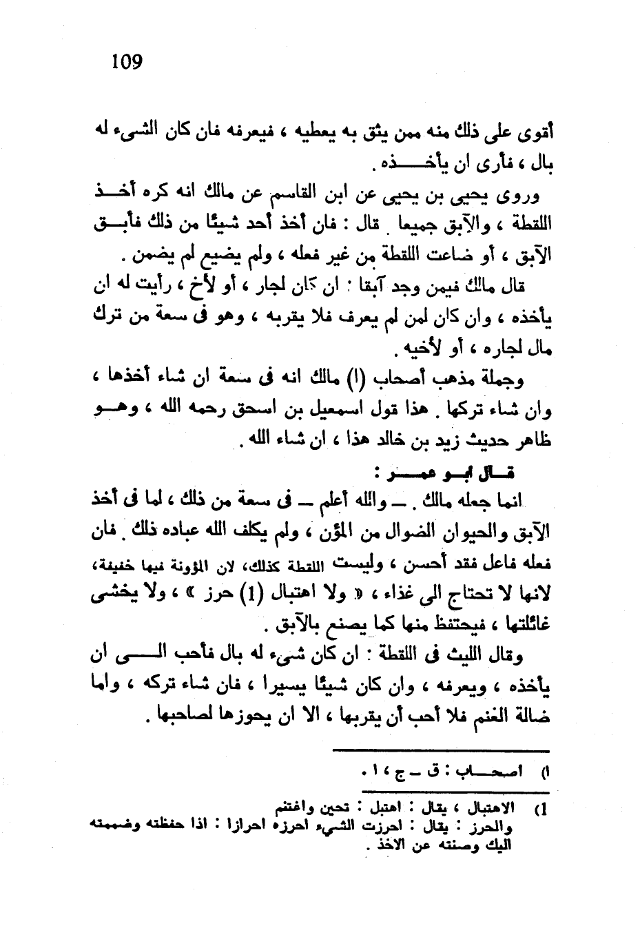 أَقْوَى عَلَى ذَلِكَ مِنْهُ مِمَّنْ يَثِقُ بِهِ يُعْطِيهِ فَيُعَرِّفُهُ فَإِنْ كَانَ الشَّيْءُ لَهُ بَالٌ فَأَرَى أَنْ يَأْخُذَهُ وَرَوَى يَحْيَى بْنُ يَحْيَى عَنِ ابْنِ الْقَاسِمِ عَنْ مَالِكٍ أَنَّهُ كَرِهَ أَخْذَ اللُّقَطَةِ وَالْآبِقِ جَمِيعًا قَالَ فَإِنْ أَخَذَ أَحَدٌ شَيْئًا مِنْ ذَلِكَ فَأَبَقَ الْآبِقُ أَوْ ضَاعَتِ اللُّقَطَةُ مِنْ غَيْرِ فِعْلِهِ وَلَمْ يُضَيِّعْ لَمْ يَضْمَنْ قَالَ مَالِكٌ فِيمَنْ وَجَدَ آبِقًا إِنْ كَانَ لِجَارٍ أَوْ لِأَخٍ رَأَيْتُ لَهُ أَنْ يَأْخُذَهُ وَإِنْ كَانَ لِمَنْ لَمْ يَعْرِفْ فَلَا يَقْرَبْهُ وَهُوَ فِي سَعَةٍ مِنْ تَرْكِ مَالٍ لِجَارِهِ أَوْ لِأَخِيهِ وَجُمْلَةُ مَذْهَبِ أَصْحَابِ مَالِكٍ أَنَّهُ فِي سَعَةٍ إِنْ شَاءَ أَخَذَهَا وإن شاء تركها هذا قول اسمعيل بْنِ إِسْحَاقَ رَحِمَهُ اللَّهُ وَهُوَ ظَاهِرُ حَدِيثِ زَيْدِ بْنِ خَالِدٍ هَذَا إِنْ شَاءَ اللَّهُ قَالَ أَبُو عُمَرَ إِنَّمَا جَعَلَهُ مَالِكٌ وَاللَّهُ أَعْلَمُ فِي سَعَةٍ مِنْ ذَلِكَ لِمَا فِي أَخْذِ الْآبِقِ وَالْحَيَوَانِ الضَّوَالِّ مِنَ الْمُؤَنِ وَلَمْ يُكَلِّفِ اللَّهُ عِبَادَهُ ذَلِكَ فَإِنْ فَعَلَهُ فَاعِلٌ فقد أحسن وليست اللقطة كذلك لأن المؤونة فِيهَا خَفِيفَةٌ لِأَنَّهَا لَا تَحْتَاجُ إِلَى غِذَاءٍ وَلَا اهْتِبَالِ حِرْزٍ وَلَا يُخْشَى غَائِلَتُهَا فَيُحْتَفَظُ مِنْهَا كَمَا يُصْنَعُ بِالْآبِقِ وَقَالَ اللَّيْثُ فِي اللُّقَطَةِ إِنْ كَانَ شَيْءٌ لَهُ بَالٌ فَأَحَبُّ إِلَيَّ أَنْ يَأْخُذَهُ وَيُعَرِّفَهُ وَإِنْ كَانَ شَيْئًا يَسِيرًا فَإِنْ شَاءَ تَرَكَهُ وَأَمَّا ضَالَّةُ الْغَنَمِ فَلَا أُحِبُّ أَنْ يَقْرَبَهَا إِلَّا أَنْ يَحُوزَهَا لصاحبها