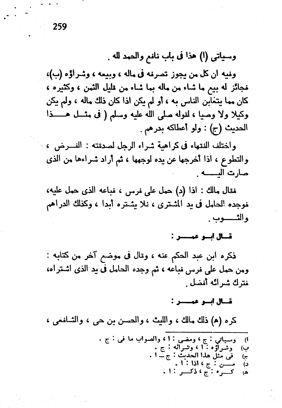 وَسَيَأْتِي هَذَا فِي بَابِ نَافِعٍ وَالْحَمْدُ لِلَّهِ وَفِيهِ أَنَّ كُلَّ مَنْ يَجُوزُ تَصَرُّفُهُ فِي ماله وبيعه وشراؤه فَجَائِزٌ لَهُ بَيْعُ مَا شَاءَ مِنْ مَالِهِ بِمَا شَاءَ مِنْ قَلِيلِ الثَّمَنِ وَكَثِيرِهِ كَانَ مِمَّا يَتَغَابَنُ النَّاسُ بِهِ أَوْ لَمْ يَكُنْ إِذَا كَانَ ذَلِكَ مَالَهُ وَلَمْ يَكُنْ وَكِيلًا وَلَا وَصِيًّا لِقَوْلِهِ صَلَّى اللَّهُ عَلَيْهِ وَسَلَّمَ (فِي مِثْلِ هَذَا الحديث (ج) وَلَوْ أَعْطَاكَهُ بِدِرْهَمٍ وَاخْتَلَفَ الْفُقَهَاءُ فِي كَرَاهِيَةِ شِرَاءِ الرَّجُلِ لِصَدَقَتِهِ الْفَرْضِ وَالتَّطَوُّعِ إِذَا أَخْرَجَهَا عَنْ يَدِهِ لِوَجْهِهَا ثُمَّ أَرَادَ شِرَاءَهَا مِنَ الَّذِي صَارَتْ إِلَيْهِ فَقَالَ مَالِكٌ إِذَا حَمَلَ عَلَى فَرَسٍ فَبَاعَهُ الَّذِي حَمَلَ عَلَيْهِ فَوَجَدَهُ الْحَامِلُ فِي يَدِ الْمُشْتَرِي فَلَا يَشْتَرِهِ أَبَدًا وَكَذَلِكَ الدَّرَاهِمُ وَالثَّوْبُ قَالَ أَبُو عُمَرَ ذَكَرَهُ ابْنُ عَبْدِ الْحَكَمِ عَنْهُ وَقَالَ فِي مَوْضِعٍ آخَرَ مِنْ كِتَابِهِ وَمَنْ حَمَلَ عَلَى فَرَسٍ فَبَاعَهُ ثُمَّ وَجَدَهُ الْحَامِلُ فِي يَدِ الَّذِي اشتراه فترك شرائه أفضل قال ابو عمر كره (هـ) ذَلِكَ مَالِكٌ وَاللَّيْثُ وَالْحَسَنُ بْنُ حَيٍّ وَالشَّافِعِيِّ
