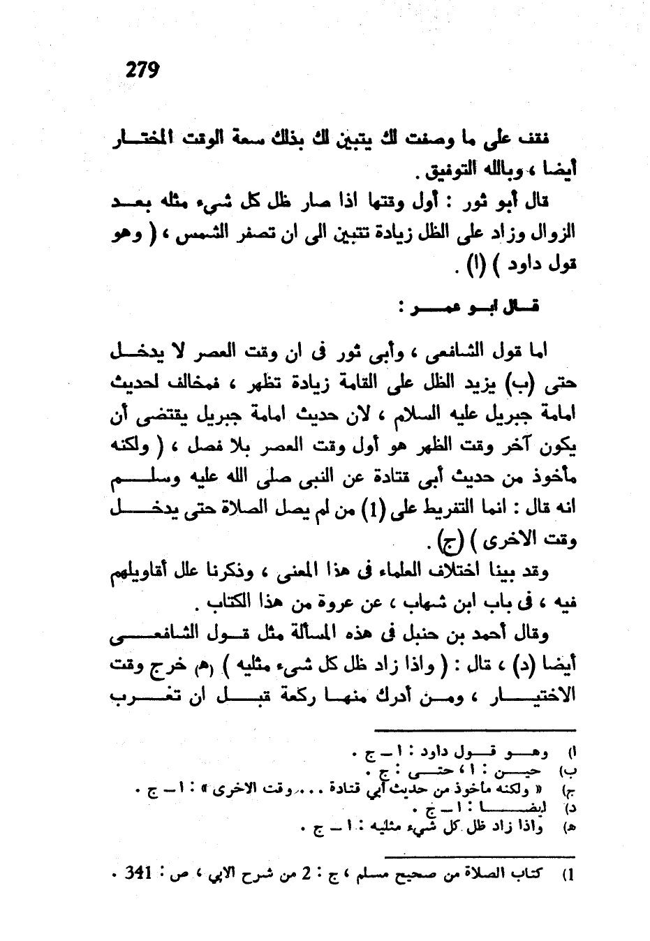 فَقِفْ عَلَى مَا وَصَفْتُ لَكَ يَتَبَيَّنْ لَكَ بذك سِعَةُ الْوَقْتِ الْمُخْتَارِ أَيْضًا وَبِاللَّهِ التَّوْفِيقُ قَالَ أَبُو ثَوْرٍ أَوَّلُ وَقْتِهَا إِذَا صَارَ ظِلُّ كُلِّ شَيْءٍ مِثْلَهُ بَعْدَ الزَّوَالِ وَزَادَ عَلَى الظِّلِّ زِيَادَةً تَتَبَيَّنُ إِلَى أَنْ تَصْفَرَّ الشَّمْسُ (وهو قول داود) (أ) قَالَ أَبُو عُمَرَ أَمَّا قَوْلُ الشَّافِعِيِّ وَأَبِي ثَوْرٍ فِي أَنَّ وَقْتَ الْعَصْرِ لَا يَدْخُلُ حَتَّى يَزِيدَ الظِّلُّ عَلَى الْقَامَةِ زِيَادَةً تَظْهَرُ فَمُخَالِفٌ لِحَدِيثِ إِمَامَةِ جِبْرِيلَ عَلَيْهِ السَّلَامُ لِأَنَّ حَدِيثَ إِمَامَةِ جِبْرِيلَ يَقْتَضِي أَنْ يَكُونَ آخِرُ وَقْتِ الظُّهْرِ هُوَ أَوَّلُ وَقْتِ الْعَصْرِ بِلَا فَصْلٍ (وَلَكِنَّهُ مَأْخُوذٌ مِنْ حَدِيثِ أَبِي قَتَادَةَ عَنِ النَّبِيِّ صَلَّى اللَّهُ عَلَيْهِ وَسَلَّمَ أَنَّهُ قَالَ إِنَّمَا التَّفْرِيطُ عَلَى (1) مَنْ لَمْ يُصَلِّ الصَّلَاةَ حَتَّى يَدْخُلَ وَقْتُ الْأُخْرَى) وَقَدْ بَيَّنَّا اخْتِلَافَ الْعُلَمَاءِ فِي هَذَا الْمَعْنَى وَذَكَرْنَا عِلَلَ أَقَاوِيلِهِمْ فِيهِ فِي بَابِ ابْنِ شِهَابٍ عَنْ عُرْوَةَ مِنْ هَذَا الْكِتَابِ وَقَالَ أَحْمَدُ بْنُ حَنْبَلٍ فِي هَذِهِ الْمَسْأَلَةِ مِثْلَ قَوْلِ الشَّافِعِيِّ أَيْضًا قَالَ (وَإِذَا زَادَ ظِلُّ كُلِّ شَيْءٍ مثليه) (هـ) خَرَجَ وَقْتُ الِاخْتِيَارِ وَمَنْ أَدْرَكَ مِنْهَا رَكْعَةً قَبْلَ أَنْ تَغْرُبَ