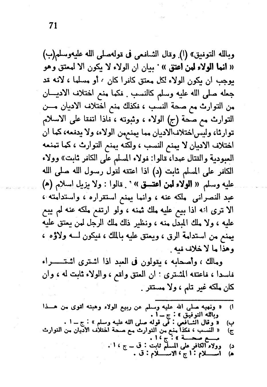 وَبِاللَّهِ التَّوْفِيقُ وَقَالَ الشَّافِعِيُّ فِي قَوْلِهِ صَلَّى اللَّهُ عَلَيْهِ وَسَلَّمَ إِنَّمَا الْوَلَاءُ لِمَنْ أَعْتَقَ بَيَانُ أَنَّ الْوَلَاءَ لَا يَكُونُ إِلَّا لِمُعْتِقٍ وَهُوَ يُوجِبُ أَنْ يَكُونَ الْوَلَاءُ لِكُلِّ مُعْتِقٍ كفارا كَانَ أَوْ مُسْلِمًا لِأَنَّهُ قَدْ جَعَلَهُ صَلَّى اللَّهُ عَلَيْهِ وَسَلَّمَ كَالنَّسَبِ فَكَمَا مَنَعَ اخْتِلَافُ الْأَدْيَانِ مِنَ التَّوَارُثِ مَعَ صِحَّةِ النَّسَبِ فَكَذَلِكَ مَنَعَ اخْتِلَافُ الْأَدْيَانِ مِنَ التَّوَارُثِ مَعَ صِحَّةِ الْوَلَاءِ وَثُبُوتِهِ فَإِذَا اتَّفَقَا عَلَى الْإِسْلَامِ تَوَارَثَا وَلَيْسَ اخْتِلَافُ الْأَدْيَانِ مِمَّا يَمْنَعُ مِنَ الْوَلَاءِ وَلَا يَدْفَعُهُ كَمَا أَنَّ اخْتِلَافَ الْأَدْيَانِ لَا يَمْنَعُ النَّسَبَ وَلَكِنَّهُ يَمْنَعُ التَّوَارُثَ كَمَا تَمْنَعُهُ الْعُبُودِيَّةُ وَالْقِتَالُ عَمْدًا قَالُوا فَوَلَاءُ الْمُسْلِمِ عَلَى الْكَافِرِ ثَابِتٌ وَوَلَاءُ الْكَافِرِ عَلَى الْمُسْلِمِ ثَابِتٌ إِذَا أَعْتَقَهُ لِقَوْلِ رَسُولِ اللَّهِ صَلَّى اللَّهُ عَلَيْهِ وَسَلَّمَ الْوَلَاءُ لِمَنْ أَعْتَقَ قَالُوا وَلَا يزيل اسلام (هـ) عَبْدِ النَّصْرَانِيِّ مِلْكَهُ عَنْهُ وَإِنَّمَا يَمْنَعُ اسْتِقْرَارَهُ وَاسْتِدَامَتَهُ أَلَا تَرَى أَنَّهُ إِذَا بِيعَ عَلَيْهِ مَلَكَ ثَمَنَهُ وَلَوِ ارْتَفَعَ مِلْكُهُ عَنْهُ لَمْ يُبَعْ عَلَيْهِ وَلَا مَلَكَ الْمُبْدَلَ مِنْهُ وَنَظِيرُ ذَلِكَ مِلْكُ الرَّجُلِ لِمَنْ يُعْتَقُ عَلَيْهِ يَمْنَعُ مِنِ اسْتِدَامَةِ الرِّقِّ وَيُعْتَقُ عَلَيْهِ بِالْمِلْكِ فَيَكُونُ لَهُ وَلَاؤُهُ وَهَذَا مَا لَا خِلَافَ فِيهِ وَمَالِكٌ وَأَصْحَابُهُ يَقُولُونَ فِي الْعَبْدِ إِذَا اشْتُرِيَ اشْتِرَاءً فَاسِدًا فَأَعْتَقَهُ الْمُشْتَرِي إِنَّ الْعِتْقَ وَاقِعٌ وَالْوَلَاءَ ثَابِتٌ لَهُ وَإِنْ كَانَ مِلْكُهُ غَيْرَ تَامٍّ وَلَا مُسْتَقِرٍّ