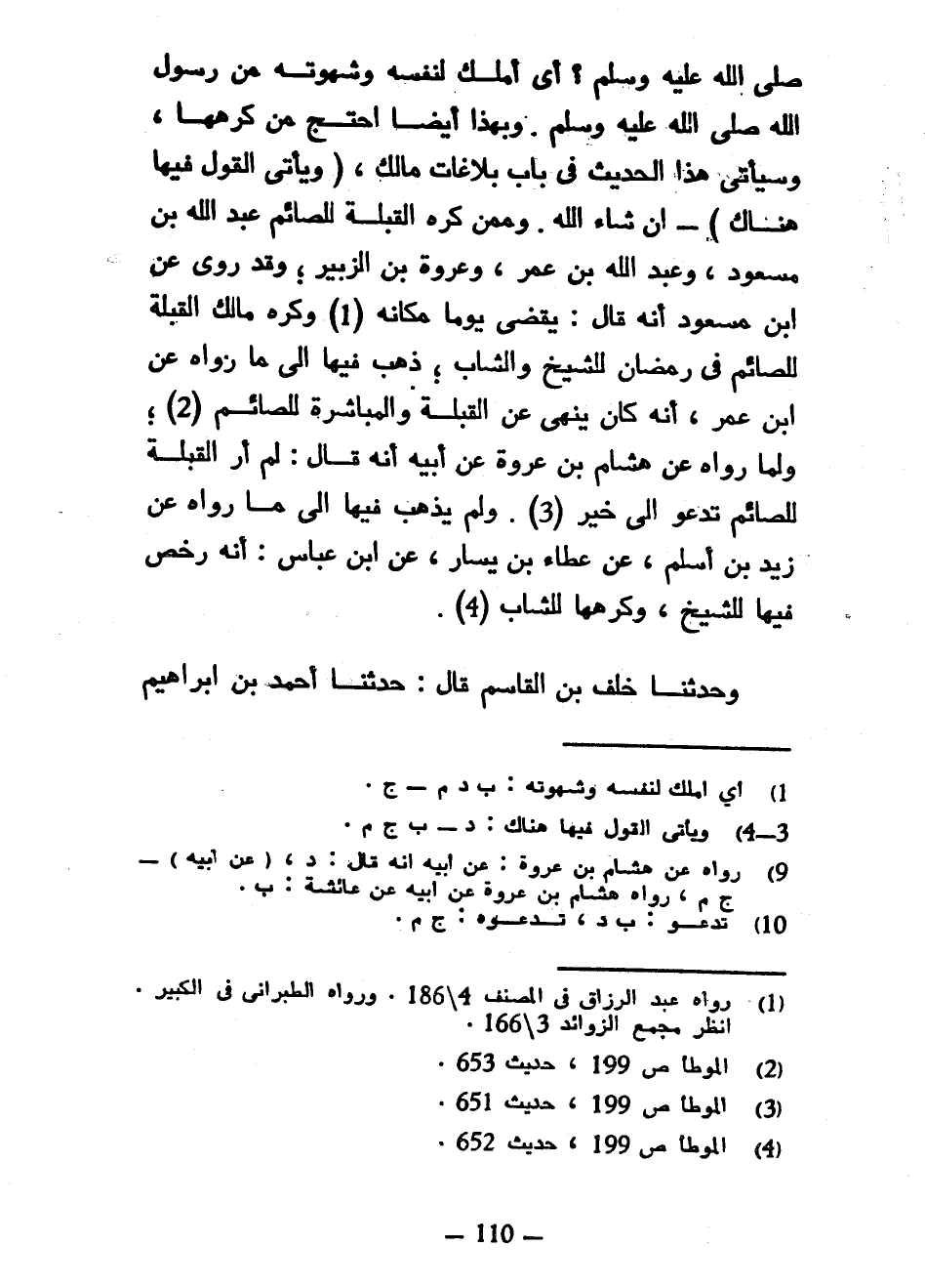 صَلَّى اللَّهُ عَلَيْهِ وَسَلَّمَ أَيْ أَمْلَكُ لِنَفْسِهِ وَشَهْوَتِهِ مِنْ رَسُولِ اللَّهِ صَلَّى اللَّهُ عَلَيْهِ وَسَلَّمَ وَبِهَذَا أَيْضًا احْتَجَّ مَنْ كَرِهَهَا وَسَيَأْتِي هَذَا الْحَدِيثُ فِي بَابِ بَلَاغَاتِ مَالِكٍ (وَيَأْتِي الْقَوْلُ فِيهَا هُنَاكَ) إِنْ شَاءَ اللَّهُ وَمِمَّنْ كَرِهَ الْقُبْلَةَ لِلصَّائِمِ عَبْدُ اللَّهِ بْنِ مَسْعُودٍ وَعَبْدِ اللَّهِ بْنِ عُمَرَ وَعُرْوَةُ بْنُ الزُّبَيْرِ وَقَدْ رُوِيَ عَنِ ابْنِ مَسْعُودٍ أَنَّهُ قَالَ يَقْضِي يَوْمًا مَكَانَهُ وَكَرِهَ مَالِكٌ الْقُبْلَةَ لِلصَّائِمِ فِي رَمَضَانَ لِلشَّيْخِ وَالشَّابِّ ذَهَبَ فِيهَا إِلَى مَا رَوَاهُ عَنِ ابْنِ عُمَرَ أَنَّهُ كَانَ يَنْهَى عَنِ الْقُبْلَةِ وَالْمُبَاشَرَةِ لِلصَّائِمِ وَلِمَا رَوَاهُ عَنْ هِشَامِ بْنِ عُرْوَةَ عَنْ أَبِيهِ أَنَّهُ قَالَ لَمْ أَرَ الْقُبْلَةَ لِلصَّائِمِ تَدْعُو إِلَى خَيْرٍ وَلَمْ يَذْهَبْ فِيهَا إِلَى مَا رَوَاهُ عَنْ زَيْدِ بْنِ أَسْلَمَ عَنْ عَطَاءِ بْنِ يَسَارٍ عَنِ ابْنِ عَبَّاسٍ أَنَّهُ رَخَّصَ فِيهَا لِلشَّيْخِ وَكَرِهَهَا لِلشَّابِّ وَحَدَّثَنَا خَلَفُ بْنُ الْقَاسِمِ قَالَ حَدَّثَنَا أَحْمَدُ بْنُ إبراهيم