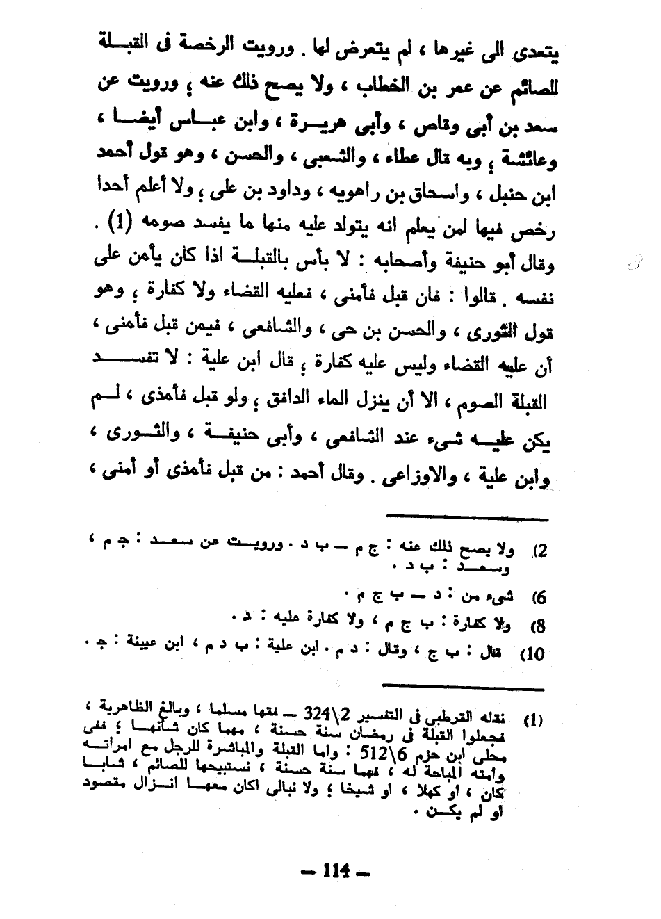 يَتَعَدَّى إِلَى غَيْرِهَا لَمْ يَتَعَرَّضْ لَهَا وَرُوِيَتِ الرُّخْصَةُ فِي الْقُبْلَةِ لِلصَّائِمِ عَنْ عُمَرَ بْنِ الْخَطَّابِ وَلَا يَصِحُّ ذَلِكَ عَنْهُ وَرُوِيَتْ عَنْ سَعْدِ بْنِ أَبِي وَقَّاصٍ وَأَبِي هُرَيْرَةَ وَابْنِ عَبَّاسٍ أَيْضًا وَعَائِشَةَ وَبِهِ قَالَ عَطَاءٌ وَالشَّعْبِيُّ وَالْحَسَنُ وَهُوَ قَوْلُ أَحْمَدَ بْنِ حَنْبَلٍ وَإِسْحَاقَ بْنِ رَاهَوَيْهِ وَدَاوُدَ بْنِ عَلِيٍّ وَلَا أَعْلَمُ أَحَدًا رَخَّصَ فِيهَا لِمَنْ يَعْلَمُ أَنَّهُ يَتَوَلَّدُ عَلَيْهِ مِنْهَا مَا يُفْسِدُ صَوْمَهُ وَقَالَ أَبُو حَنِيفَةَ وَأَصْحَابُهُ لَا بَأْسَ بِالْقُبْلَةِ إِذَا كَانَ يَأْمَنُ عَلَى نَفْسِهِ قَالُوا فَإِنْ قَبَّلَ فَأَمْنَى فَعَلَيْهِ الْقَضَاءُ وَلَا كَفَّارَةَ وَهُوَ قَوْلُ الثَّوْرِيِّ وَالْحَسَنِ بْنِ حَيٍّ وَالشَّافِعِيِّ فِيمَنْ قَبَّلَ فَأَمْنَى أَنَّ عَلَيْهِ الْقَضَاءَ وَلَيْسَ عَلَيْهِ كَفَّارَةٌ قَالَ ابْنُ عُلَيَّةَ لَا تُفْسِدُ الْقُبْلَةُ الصَّوْمَ إِلَّا أَنْ يَنْزِلَ الْمَاءُ الدَّافِقُ وَلَوْ قَبَّلَ فَأَمْذَى لَمْ يَكُنْ عَلَيْهِ شَيْءٌ عِنْدَ الشَّافِعِيِّ وَأَبِي حَنِيفَةَ وَالثَّوْرِيِّ وَابْنِ عُلَيَّةَ وَالْأَوْزَاعِيِّ وَقَالَ أَحْمَدُ مَنْ قَبَّلَ فَأَمْذَى أَوْ أَمْنَى
