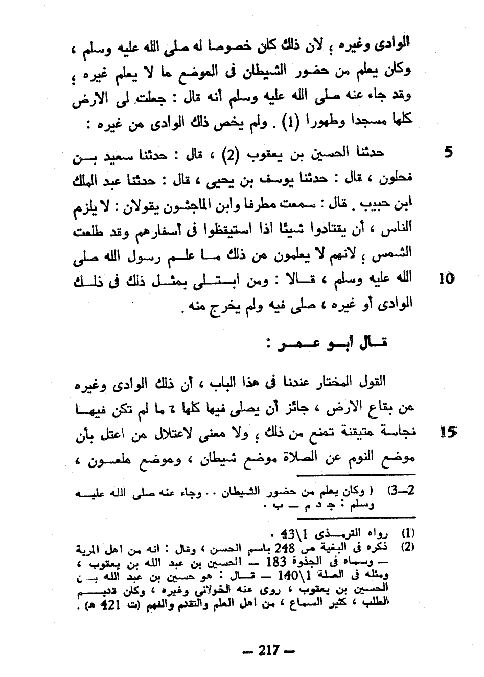 الْوَادِي وَغَيْرُهُ لِأَنَّ ذَلِكَ كَانَ خُصُوصًا لَهُ صَلَّى اللَّهُ عَلَيْهِ وَسَلَّمَ وَكَانَ يَعْلَمُ مِنْ حُضُورِ الشَّيْطَانِ فِي الْمَوْضِعِ مَا لَا يَعْلَمُ غَيْرُهُ وَقَدْ جَاءَ عَنْهُ صَلَّى اللَّهُ عَلَيْهِ وَسَلَّمَ أَنَّهُ قَالَ جُعِلَتْ لِيَ الْأَرْضُ كُلُّهَا مَسْجِدًا وَطَهُورًا وَلَمْ يَخُصَّ ذَلِكَ الْوَادِيَ مِنْ غَيْرِهِ حَدَّثَنَا الْحُسَيْنُ بْنُ يَعْقُوبَ قَالَ حَدَّثَنَا سَعِيدُ بْنُ فَحْلُونَ قَالَ حَدَّثَنَا يُوسُفُ بْنُ يَحْيَى قَالَ حَدَّثَنَا عَبْدُ الْمَلِكِ بْنُ حَبِيبٍ قَالَ سَمِعْتُ مُطَرِّفًا وَابْنِ الْمَاجِشُونِ يَقُولَانِ لَا يلزم الناس أن يقتادوا شيئا إذااستيقظوا فِي أَسْفَارِهِمْ وَقَدْ طَلَعَتِ الشَّمْسُ لِأَنَّهُمْ لَا يَعْلَمُونَ مِنْ ذَلِكَ مَا عِلْمُ رَسُولِ اللَّهِ صَلَّى اللَّهُ عَلَيْهِ وَسَلَّمَ قَالَا وَمَنِ ابْتُلِيَ بِمِثْلِ ذَلِكَ فِي ذَلِكَ الْوَادِي أَوْ غَيْرِهِ صَلَّى فِيهِ وَلَمْ يَخْرُجْ مِنْهُ قَالَ أَبُو عُمَرَ الْقَوْلُ الْمُخْتَارُ عِنْدَنَا فِي هَذَا الْبَابِ أَنَّ ذَلِكَ الْوَادِيَ وَغَيْرَهُ مِنْ بِقَاعِ الْأَرْضِ جَائِزٌ أَنْ يُصَلَّى فِيهَا كُلِّهَا مَا لَمْ تَكُنْ فِيهَا نَجَاسَةٌ مُتَيَقَّنَةٌ تَمْنَعُ مِنْ ذَلِكَ وَلَا مَعْنَى لِاعْتِلَالِ مَنِ اعْتَلَ بِأَنَّ مَوْضِعَ النَّوْمِ عَنِ الصَّلَاةِ مَوْضِعُ شَيْطَانٍ وَمَوْضِعٌ مَلْعُونٌ