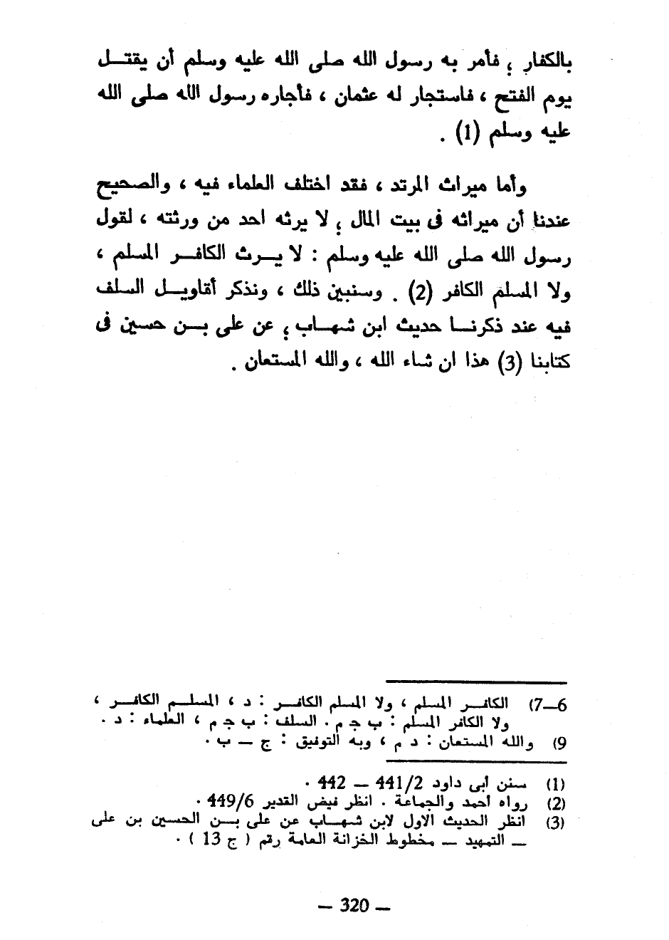 بِالْكَفَّارِ فَأَمَرَ بِهِ رَسُولُ اللَّهِ صَلَّى اللَّهُ عَلَيْهِ وَسَلَّمَ أَنْ يُقْتَلَ يَوْمَ الْفَتْحِ فَاسْتَجَارَ لَهُ عُثْمَانُ فَأَجَارَهُ رَسُولِ اللَّهِ صَلَّى اللَّهُ عَلَيْهِ وَسَلَّمَ وَأَمَّا مِيرَاثُ الْمُرْتَدِّ فَقَدِ اخْتَلَفَ الْعُلَمَاءُ فِيهِ وَالصَّحِيحُ عِنْدَنَا أَنَّ مِيرَاثَهُ فِي بَيْتِ الْمَالِ لَا يَرِثُهُ أَحَدٌ مِنْ وَرَثَتِهِ لِقَوْلِ رَسُولِ اللَّهِ صَلَّى اللَّهُ عَلَيْهِ وَسَلَّمَ لَا يَرِثُ الْكَافِرُ الْمُسْلِمَ وَلَا الْمُسْلِمُ الْكَافِرَ وَسَنُبَيِّنُ ذَلِكَ وَنَذْكُرُ أَقَاوِيلَ السَّلَفِ فِيهِ عِنْدَ ذِكْرِنَا حَدِيثَ ابْنِ شِهَابٍ عَنْ عَلِيِّ بْنِ حُسَيْنٍ فِي كِتَابِنَا هَذَا إِنْ شَاءَ اللَّهُ وَاللَّهُ الْمُسْتَعَانُ