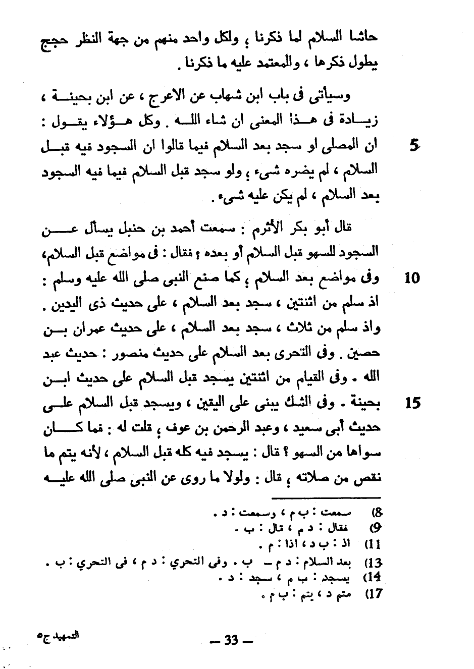 حائسا السَّلَامَ لِمَا ذَكَرْنَا وَلِكُلِّ وَاحِدٍ مِنْهُمْ مَنْ جِهَةِ النَّظَرِ حُجَجٌ يَطُولُ ذِكْرُهَا وَالْمُعْتَمَدُ عَلَيْهِ مَا ذَكَرْنَا وَسَيَأْتِي فِي بَابِ ابْنِ شِهَابٍ عَنِ الْأَعْرَجِ عَنِ ابْنِ بُحَيْنَةَ زِيَادَةٌ فِي هَذَا الْمَعْنَى إِنْ شَاءَ اللَّهُ وَكُلُّ هَؤُلَاءِ يقول إن المصلى أو سَجَدَ بَعْدَ السَّلَامِ فِيمَا قَالُوا إِنَّ السُّجُودَ فِيهِ قَبْلَ السَّلَامِ لَمْ يَضُرَّهُ شَيْءٌ وَلَوْ سَجَدَ قَبْلَ السَّلَامِ فِيمَا فِيهِ السُّجُودُ بَعْدَ السَّلَامِ لَمْ يَكُنْ عَلَيْهِ شَيْءٌ قَالَ أَبُو بَكْرٍ الْأَثْرَمُ سَمِعْتُ أَحْمَدَ بْنَ حَنْبَلٍ يُسْأَلُ عَنِ السُّجُودِ لِلسَّهْوِ قَبْلَ السَّلَامِ أَوْ بَعْدَهُ فَقَالَ فِي مَوَاضِعَ قَبْلَ السَّلَامِ وَفِي مَوَاضِعَ بَعْدَ السَّلَامِ كَمَا صَنَعَ النَّبِيُّ صَلَّى اللَّهُ عَلَيْهِ وَسَلَّمَ إِذْ سَلَّمَ مِنِ اثْنَتَيْنِ سَجَدَ بَعْدَ السَّلَامِ عَلَى حَدِيثِ ذِي الْيَدَيْنِ وَإِذْ سَلَّمَ مِنْ ثَلَاثٍ سَجَدَ بَعْدَ السَّلَامِ عَلَى حَدِيثِ عُمْرَانَ بْنِ حُصَيْنٍ وَفِيَ التَّحَرِّي بَعْدَ السَّلَامِ عَلَى حَدِيثِ مَنْصُورٍ حَدِيثُ عَبْدِ اللَّهِ وَفِي الْقِيَامِ مِنِ اثْنَتَيْنِ يَسْجُدُ قَبْلَ السَّلَامِ عَلَى حَدِيثِ ابْنِ بُحَيْنَةَ وَفِي الشَّكِّ يُبْنَى عَلَى الْيَقِينِ وَيُسْجَدُ قَبْلَ السَّلَامِ عَلَى حَدِيثِ أَبِي سَعِيدٍ وَعَبْدِ الرَّحْمَنِ بْنِ عَوْفٍ قُلْتُ لَهُ فَمَا كَانَ سِوَاهَا مِنَ السَّهْوِ قَالَ يَسْجُدُ فِيهِ كُلِّهُ قَبْلَ السَّلَامِ لِأَنَّهُ يُتِمُّ مَا نَقَصَ مِنْ صَلَاتِهِ قَالَ وَلَوْلَا مَا رُوِيَ عَنِ النَّبِيِّ صَلَّى اللَّهُ عَلَيْهِ