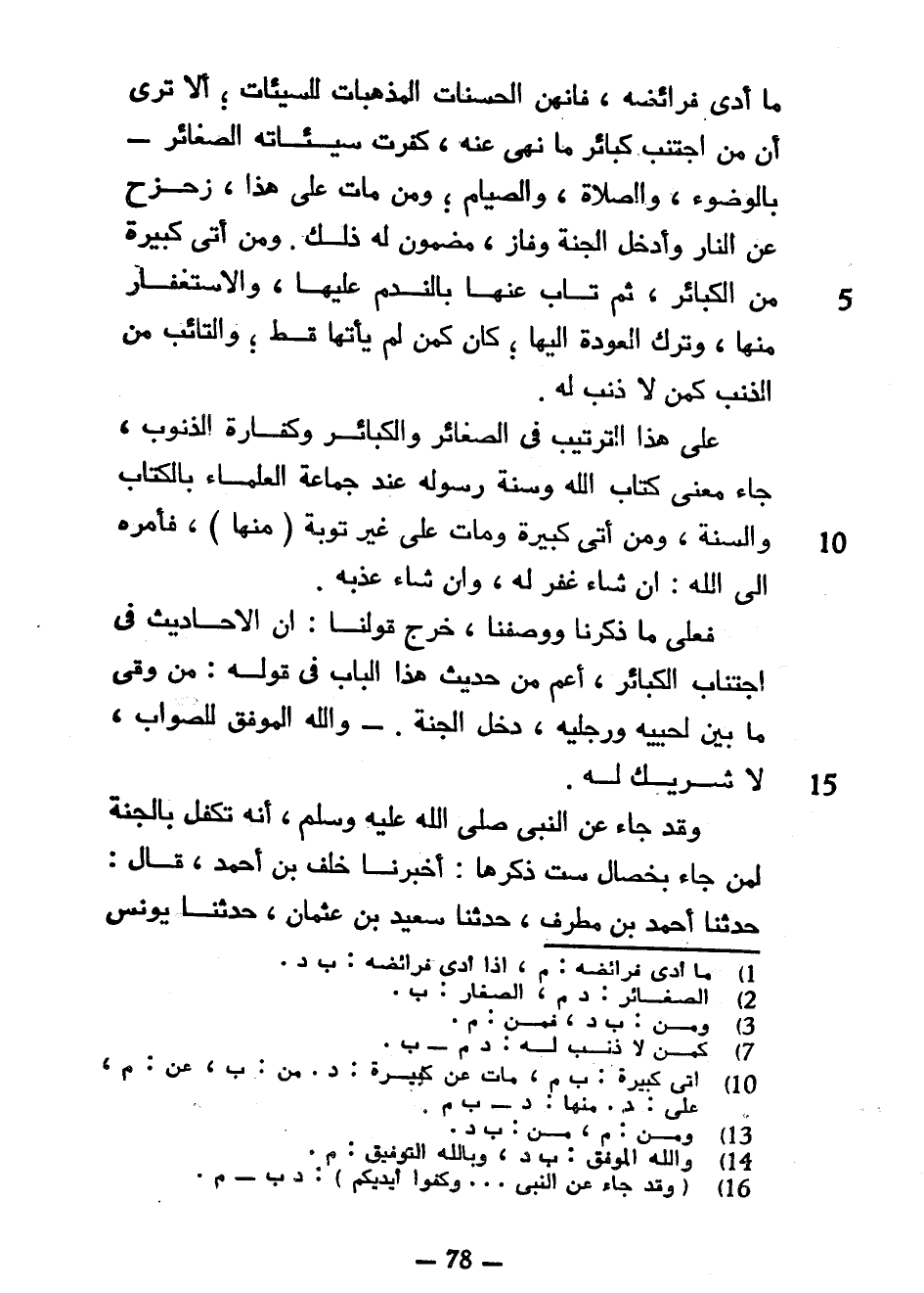 مَا أَدَّى فَرَائِضَهُ فَإِنَّهُنَّ الْحَسَنَاتُ الْمُذْهِبَاتُ لِلسَّيِّئَاتِ أَلَا تَرَى أَنَّ مَنِ اجْتَنَبَ كَبَائِرَ مَا نُهِيَ عَنْهُ كُفِّرَتْ سَيِّئَاتُهُ الصَّغَائِرُ بِالْوُضُوءِ وَالصَّلَاةِ وَالصِّيَامِ وَمَنْ مَاتَ عَلَى هَذَا زُحْزِحَ عَنِ النَّارِ وَأُدْخِلَ الْجَنَّةَ وَفَازَ مَضْمُونٌ لَهُ ذَلِكَ وَمَنْ أَتَى كَبِيرَةً مِنَ الْكَبَائِرِ ثُمَّ تَابَ عَنْهَا بِالنَّدَمِ عَلَيْهَا وَالِاسْتِغْفَارِ مِنْهَا وَتَرَكَ الْعَوْدَةَ إِلَيْهَا كَانَ كَمَنْ لَمْ يَأْتِهَا قَطُّ وَالتَّائِبُ مِنَ الذَّنْبِ كَمَنْ لَا ذَنْبَ لَهُ عَلَى هَذَا التَّرْتِيبِ فِي الصَّغَائِرِ وَالْكَبَائِرِ وَكَفَّارَةِ الذُّنُوبِ جَاءَ مَعْنَى كِتَابِ اللَّهِ وَسُنَّةِ رَسُولِهِ عِنْدَ جَمَاعَةِ الْعُلَمَاءِ بِالْكِتَابِ وَالسُّنَّةِ وَمَنْ أَتَى كَبِيرَةً وَمَاتَ عَلَى غَيْرِ تَوْبَةٍ (مِنْهَا) فَأَمْرُهُ إِلَى اللَّهِ إِنْ شَاءَ غَفَرَ لَهُ وَإِنْ شَاءَ عَذَّبَهُ فَعَلَى مَا ذَكَرْنَا وَوَصَفْنَا خَرَجَ قَوْلُنَا أَنَّ الْأَحَادِيثَ فِي اجْتِنَابِ الْكَبَائِرِ أَعَمُّ مِنْ حَدِيثِ هَذَا الْبَابِ فِي قَوْلِهِ مَنْ وُقِيَ مَا بَيْنَ لَحْيَيْهِ وَرِجْلَيْهِ دَخَلَ الْجَنَّةَ وَاللَّهُ الْمُوَفِّقُ لِلصَّوَابِ لَا شَرِيكَ لَهُ وَقَدْ جَاءَ عَنِ النَّبِيِّ صَلَّى اللَّهُ عَلَيْهِ وَسَلَّمَ أَنَّهُ تَكَفَّلَ بِالْجَنَّةِ لِمَنْ جَاءَ بِخِصَالٍ سِتٍّ ذَكَرَهَا أَخْبَرَنَا خَلَفُ بْنُ أَحْمَدَ قَالَ حَدَّثَنَا أَحْمَدُ بْنُ مُطَرِّفٍ حَدَّثَنَا سَعِيدُ بْنُ عُثْمَانَ حَدَّثَنَا يُونُسُ