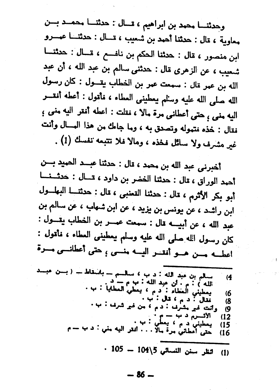 وَحَدَّثَنَا مُحَمَّدُ بْنُ إِبْرَاهِيمَ قَالَ حَدَّثَنَا مُحَمَّدُ بْنُ مُعَاوِيَةَ قَالَ حَدَّثَنَا أَحْمَدُ بْنُ شُعَيْبٍ قَالَ حَدَّثَنَا عَمْرُو بْنُ مَنْصُورٍ قَالَ حَدَّثَنَا الْحَكَمُ بْنُ نَافِعٍ قَالَ حَدَّثَنَا شُعَيْبٌ عَنِ الزُّهْرِيِّ قَالَ حَدَّثَنِي سَالِمُ بْنُ عَبْدِ اللَّهِ أَنَّ عَبْدَ اللَّهِ بْنَ عُمَرَ قَالَ سَمِعْتُ عُمَرَ بْنَ الْخَطَّابِ يَقُولُ كَانَ رَسُولُ اللَّهِ صَلَّى اللَّهُ عَلَيْهِ وَسَلَّمَ يُعْطِينِي الْعَطَاءَ فَأَقُولُ أَعْطِهِ أَفْقَرَ إِلَيْهِ مِنِّي حَتَّى أَعْطَانِي مَرَّةً مَالًا فَقُلْتُ أَعْطِهِ أَفْقَرَ إِلَيْهِ مِنِّي فَقَالَ خُذْهُ فَتَمَوَّلْهُ وَتَصَدَّقْ بِهِ وَمَا جَاءَكَ مِنْ هَذَا الْمَالِ وَأَنْتَ غَيْرُ مُشْرِفٍ وَلَا سَائِلٍ فخذه ومالا فَلَا تُتْبِعْهُ نَفْسَكَ أَخْبَرَنِي عَبْدُ اللَّهِ بْنُ مُحَمَّدٍ قَالَ حَدَّثَنَا عَبْدُ الْحَمِيدِ بْنُ أَحْمَدَ الْوَرَّاقُ قَالَ حَدَّثَنَا الْخَضِرُ بْنُ دَاوُدَ قَالَ حَدَّثَنَا أَبُو بَكْرٍ الْأَثْرَمُ قَالَ حَدَّثَنَا الْقَعْنَبِيُّ قَالَ حَدَّثَنَا الْبُهْلُولُ بْنُ رَاشِدٍ عَنْ يُونُسَ بْنِ يَزِيدَ عَنِ ابْنِ شِهَابٍ عَنْ سَالِمِ بْنِ عَبْدِ اللَّهِ عَنْ أَبِيهِ قَالَ سَمِعْتُ عُمَرَ بْنَ الْخَطَّابِ يَقُولُ كَانَ رَسُولُ اللَّهِ صَلَّى اللَّهُ عَلَيْهِ وَسَلَّمَ يُعْطِينِي الْعَطَاءَ فَأَقُولُ أَعْطِهِ مَنْ هُوَ أَفْقَرُ إِلَيْهِ مِنِّي حَتَّى أعطاني مرة