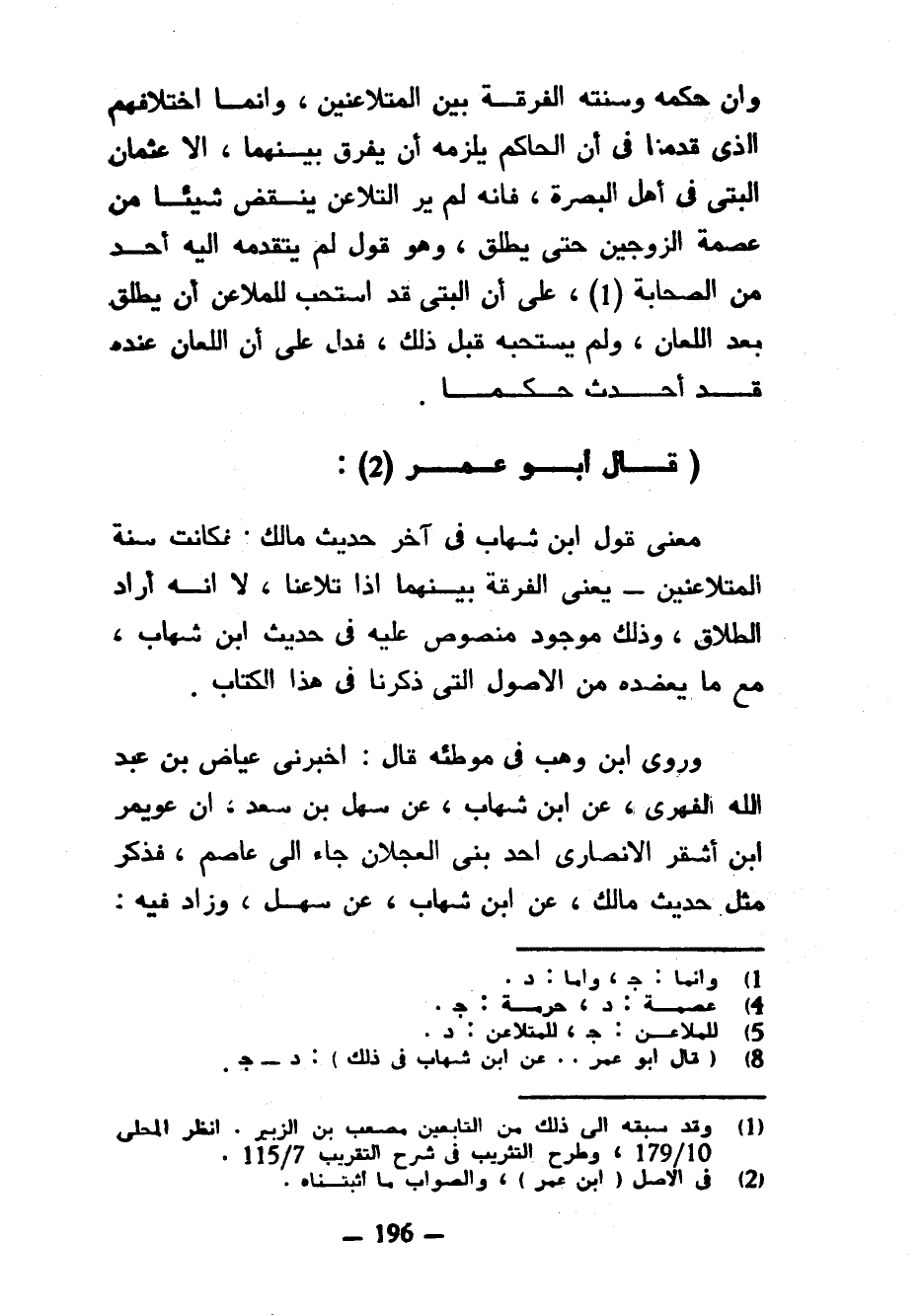 وَإِنَّ حُكْمَهُ وَسُنَّتَهُ الْفُرْقَةُ بَيْنَ الْمُتَلَاعِنَيْنِ وَإِنَّمَا اخْتِلَافُهُمُ الَّذِي قَدَّمْنَا فِي أَنَّ الْحَاكِمَ يَلْزَمُهُ أَنْ يُفَرِّقَ بَيْنَهُمَا إِلَّا عُثْمَانَ الْبَتِّيَّ فِي أهل البصرة فإنه لم ير التلاعن بنقض شَيْئًا مِنْ عِصْمَةِ الزَّوْجَيْنِ حَتَّى يُطَلِّقَ وَهُوَ قَوْلٌ لَمْ يَتَقَدَّمْهُ إِلَيْهِ أَحَدٌ مِنَ الصَّحَابَةِ عَلَى أَنَّ الْبَتِّيَّ قَدِ اسْتَحَبَّ لِلْمُلَاعِنِ أَنْ يُطَلِّقَ بَعْدَ اللِّعَانِ وَلَمْ يَسْتَحِبُّهُ قَبْلَ ذَلِكَ فَدَلَّ عَلَى أَنَّ اللِّعَانَ عِنْدَهُ قَدْ أَحْدَثَ حُكْمًا (قَالَ أَبُو عُمَرَ (2)) مَعْنَى قَوْلِ ابْنِ شِهَابٍ فِي آخِرِ حَدِيثِ مَالِكٍ فَكَانَتْ سُنَّةَ الْمُتَلَاعِنَيْنِ يَعْنِي الْفُرْقَةَ بَيْنَهُمَا إِذَا تَلَاعَنَا لَا أَنَّهُ أَرَادَ الطَّلَاقَ وَذَلِكَ مَوْجُودٌ مَنْصُوصٌ عَلَيْهِ فِي حَدِيثِ ابْنِ شِهَابٍ مَعَ مَا يُعَضِّدُهُ مِنَ الْأُصُولِ الَّتِي ذَكَرْنَا فِي هَذَا الْكِتَابِ وَرَوَى ابْنُ وَهْبٍ فِي مُوَطَّئِهِ قَالَ أَخْبَرَنِي عِيَاضُ بْنُ عَبْدِ اللَّهِ الْفِهْرَيُّ عَنِ ابْنِ شِهَابٍ عَنْ سَهْلِ بْنِ سَعْدٍ أَنَّ عُوَيْمِرَ ابن أَشْقَرَ الْأَنْصَارِيَّ أَحَدَ بَنِي الْعَجْلَانِ جَاءَ إِلَى عَاصِمٍ فَذَكَرَ مِثْلَ حَدِيثِ مَالِكٍ عَنِ ابْنِ شِهَابٍ عَنْ سَهْلٍ وَزَادَ فِيهِ