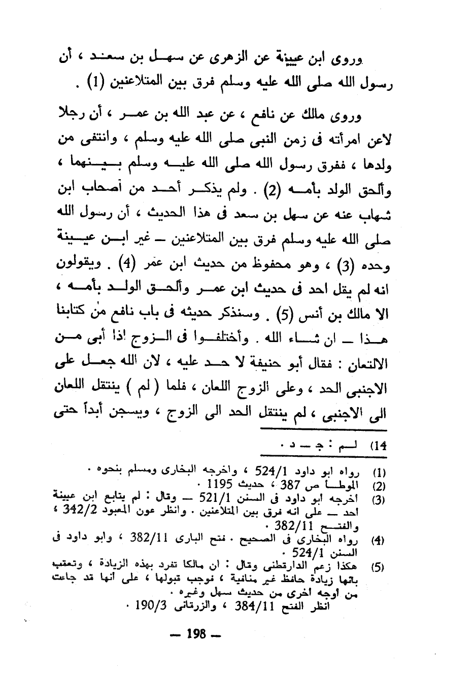 وَرَوَى ابْنُ عُيَيْنَةَ عَنِ الزُّهْرِيِّ عَنْ سَهْلِ بْنِ سَعْدٍ أَنَّ رَسُولَ اللَّهِ صَلَّى اللَّهُ عَلَيْهِ وَسَلَّمَ فَرَّقَ بَيْنَ الْمُتَلَاعِنَيْنِ وَرَوَى مَالِكٌ عَنْ نَافِعٍ عَنْ عَبْدِ اللَّهِ بْنِ عُمَرَ أَنَّ رَجُلًا لَاعَنَ امْرَأَتَهُ فِي زَمَنِ النَّبِيِّ صَلَّى اللَّهُ عَلَيْهِ وَسَلَّمَ وَانْتَفَى مِنْ وَلَدِهَا فَفَرَّقَ رَسُولُ اللَّهِ صَلَّى اللَّهُ عَلَيْهِ وَسَلَّمَ بَيْنَهُمَا وَأَلْحَقَ الْوَلَدَ بِأُمِّهِ وَلَمْ يَذْكُرْ أَحَدٌ مِنْ أَصْحَابِ ابْنِ شِهَابٍ عَنْهُ عَنْ سَهْلِ بْنِ سَعْدٍ فِي هَذَا الْحَدِيثِ أَنَّ رَسُولَ اللَّهِ صَلَّى اللَّهُ عَلَيْهِ وَسَلَّمَ فَرَّقَ بَيْنَ الْمُتَلَاعِنَيْنِ غَيْرُ ابْنِ عُيَيْنَةَ وَحْدَهُ وَهُوَ مَحْفُوظٌ مِنْ حَدِيثِ ابْنِ عُمَرَ وَيَقُولُونَ إِنَّهُ لَمْ يَقُلْ أَحَدٌ فِي حَدِيثِ ابْنِ عُمَرَ وَأَلْحَقَ الْوَلَدَ بِأُمِّهِ إِلَّا مَالِكُ بْنُ أَنَسٍ وَسَنَذْكُرُ حَدِيثَهُ فِي بَابِ نَافِعٍ مِنْ كِتَابِنَا هَذَا إِنْ شَاءَ اللَّهُ وَاخْتَلَفُوا فِي الزَّوْجِ إِذَا أَبَى مِنْ الِالْتِعَانِ فَقَالَ أَبُو حَنِيفَةَ لَا حَدَّ عَلَيْهِ لِأَنَّ اللَّهَ جَعَلَ عَلَى الْأَجْنَبِيِّ الْحَدَّ وَعَلَى الزَّوْجِ اللِّعَانَ فَلَمَّا (لَمْ) يَنْتَقِلِ اللِّعَانُ إِلَى الْأَجْنَبِيِّ لَمْ يَنْتَقِلِ الْحَدُّ إِلَى الزَّوْجِ وَيُسْجَنُ أَبَدًا حَتَّى