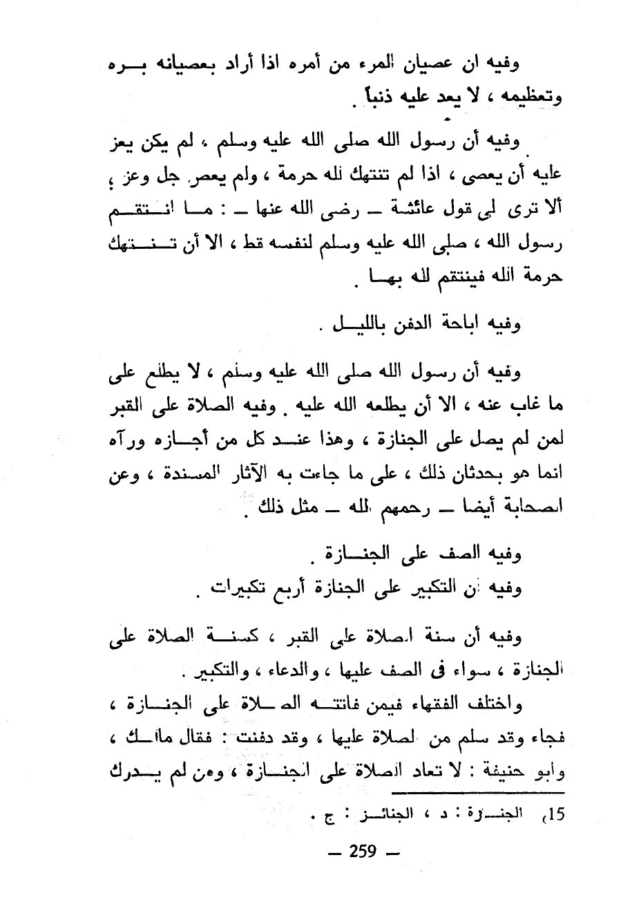 وَفِيهِ أَنَّ عِصْيَانَ الْمَرْءِ مَنْ أَمَرَهُ إِذَا أَرَادَ بِعِصْيَانِهِ بِرَّهُ وَتَعْظِيمَهُ لَا يُعَدُّ عَلَيْهِ ذَنْبًا وَفِيهِ أَنَّ رَسُولَ اللَّهِ صَلَّى اللَّهُ عَلَيْهِ وَسَلَّمَ لَمْ يَكُنْ يَعِزُّ عَلَيْهِ أَنْ يُعْصَى إِذَا لَمْ تُنْتَهَكْ لِلَّهِ حُرْمَةٌ وَلَمْ يعص عز وجل أَلَا تَرَى لِي قَوْلَ عَائِشَةَ رَضِيَ اللَّهُ عَنْهَا مَا انْتَقَمَ رَسُولُ اللَّهِ صَلَّى اللَّهُ عَلَيْهِ وَسَلَّمَ لِنَفْسِهِ قَطُّ إِلَّا أَنْ تُنْتَهَكَ حُرْمَةُ اللَّهِ فَيَنْتَقِمُ لِلَّهِ بِهَا وَفِيهِ إِبَاحَةُ الدَّفْنِ بِاللَّيْلِ وَفِيهِ أَنَّ رَسُولَ اللَّهِ صَلَّى اللَّهُ عَلَيْهِ وَسَلَّمَ لَا يَطَّلِعُ عَلَى مَا غَابَ عَنْهُ إِلَّا أَنْ يُطْلِعَهُ اللَّهُ عَلَيْهِ وَفِيهِ الصَّلَاةُ عَلَى الْقَبْرِ لِمَنْ لَمْ يُصَلِّ عَلَى الْجِنَازَةِ وَهَذَا عِنْدَ كُلِّ مَنْ أَجَازَهُ وَرَآهُ إِنَّمَا هُوَ بِحِدْثَانِ ذَلِكَ عَلَى مَا جَاءَتْ بِهِ الْآثَارُ الْمُسْنَدَةُ وَعَنِ الصَّحَابَةِ أَيْضًا رَحِمَهُمُ اللَّهُ مِثْلُ ذَلِكَ وَفِيهِ الصَّفُّ عَلَى الْجِنَازَةِ وَفِيهِ أَنَّ التَّكْبِيرَ عَلَى الْجِنَازَةِ أَرْبَعُ تَكْبِيرَاتٍ وَفِيهِ أَنَّ سُنَّةَ الصَّلَاةِ عَلَى الْقَبْرِ كَسُنَّةِ الصَّلَاةِ عَلَى الْجِنَازَةِ سَوَاءٌ فِي الصَّفِّ عَلَيْهَا وَالدُّعَاءِ وَالتَّكْبِيرِ وَاخْتَلَفَ الْفُقَهَاءُ فِيمَنْ فَاتَتْهُ الصَّلَاةُ عَلَى الْجِنَازَةِ فَجَاءَ وَقَدْ سُلِّمَ مِنَ الصَّلَاةِ عَلَيْهَا وَقَدْ دُفِنَتْ فَقَالَ مَالِكٌ وَأَبُو حَنِيفَةَ لَا تُعَادُ الصَّلَاةُ عَلَى الْجِنَازَةِ وَمَنْ لم يدرك