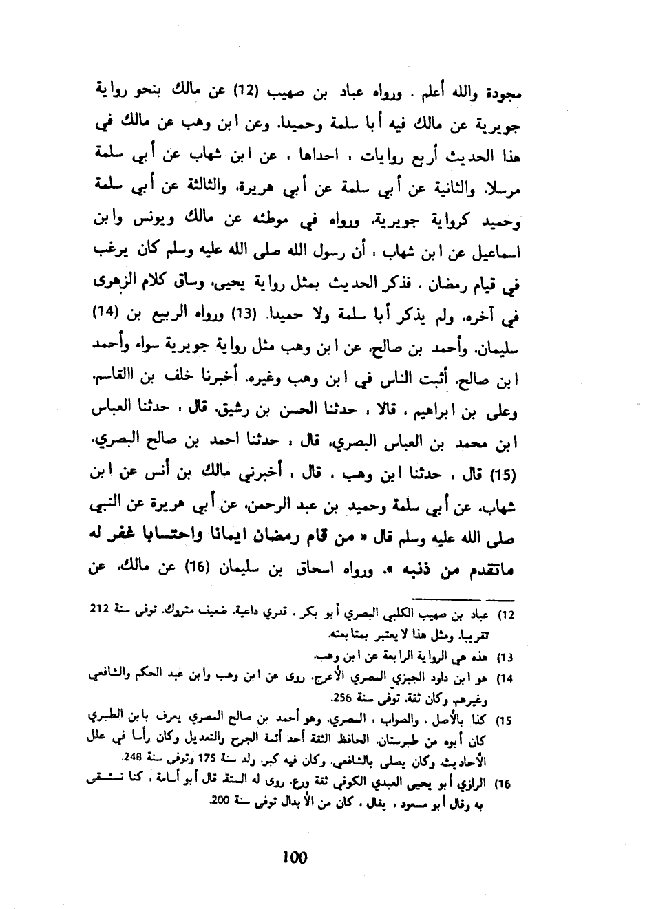 مُجَوَّدَةٌ وَاللَّهُ أَعْلَمُ وَرَوَاهُ عَبَّادُ بْنُ صُهَيْبٍ عَنْ مَالِكٍ بِنَحْوِ رِوَايَةِ جُوَيْرِيَةَ عَنْ مَالِكٍ فِيهِ أَبَا سَلَمَةَ وَحُمَيْدًا وَعَنِ ابْنِ وَهْبٍ عَنْ مَالِكٍ فِي هَذَا الْحَدِيثِ أَرْبَعُ رِوَايَاتٍ إِحْدَاهَا عَنِ ابْنِ شِهَابٍ عَنْ أَبِي سَلَمَةَ مُرْسَلًا وَالثَّانِيَةُ عَنْ أَبِي سَلَمَةَ عَنْ أَبِي هُرَيْرَةَ وَالثَّالِثَةُ عَنْ أَبِي سَلَمَةَ وَحُمَيْدٍ كَرِوَايَةِ جُوَيْرِيَةَ وَرَوَاهُ فِي مُوَطَّئِهِ عَنْ مَالِكٍ وَيُونُسَ وَابْنِ إِسْمَاعِيلَ عَنِ ابْنِ شِهَابٍ أَنَّ رَسُولَ اللَّهِ صَلَّى اللَّهُ عَلَيْهِ وَسَلَّمَ كَانَ يُرَغِّبُ فِي قِيَامِ رَمَضَانَ فَذَكَرَ الْحَدِيثَ بِمِثْلِ رِوَايَةِ يَحْيَى وَسَاقَ كَلَامَ الزُّهْرِيِّ فِي آخِرِهِ وَلَمْ يَذْكُرْ أَبَا سَلَمَةَ وَلَا حُمَيْدًا وَرَوَاهُ الرَّبِيعُ بْنُ سُلَيْمَانَ وَأَحْمَدُ بْنُ صَالِحٍ عَنِ ابْنِ وهب مثل رواية جويرية سواء وأحمد ابن صَالِحٍ أَثَبَتُ النَّاسِ فِي ابْنِ وَهْبٍ وَغَيْرِهِ أَخْبَرَنَا خَلَفُ بْنُ الْقَاسِمِ وَعَلِيُّ بْنُ إِبْرَاهِيمَ قَالَا حَدَّثَنَا الْحَسَنُ بْنُ رَشِيقٍ قَالَ حَدَّثَنَا الْعَبَّاسُ ابن مُحَمَّدِ بْنِ الْعَبَّاسِ الْبَصْرِيُّ قَالَ حَدَّثَنَا أَحْمَدُ بْنُ صَالِحٍ الْبَصْرِيُّ قَالَ حَدَّثَنَا ابْنُ وَهْبٍ قَالَ أَخْبَرَنِي مَالِكُ بْنُ أَنَسٍ عَنِ ابْنِ شِهَابٍ عَنْ أَبِي سَلَمَةَ وَحُمَيْدِ بْنِ عَبْدِ الرَّحْمَنِ عَنْ أَبِي هُرَيْرَةَ عَنِ النَّبِيِّ صَلَّى اللَّهُ عَلَيْهِ وَسَلَّمَ قَالَ مَنْ قَامَ رَمَضَانَ إِيمَانًا وَاحْتِسَابًا غُفِرَ لَهُ مَا تَقَدَّمَ مِنْ ذَنْبِهِ وَرَوَاهُ إِسْحَاقُ بْنُ سُلَيْمَانَ عَنْ مَالِكٍ عَنِ