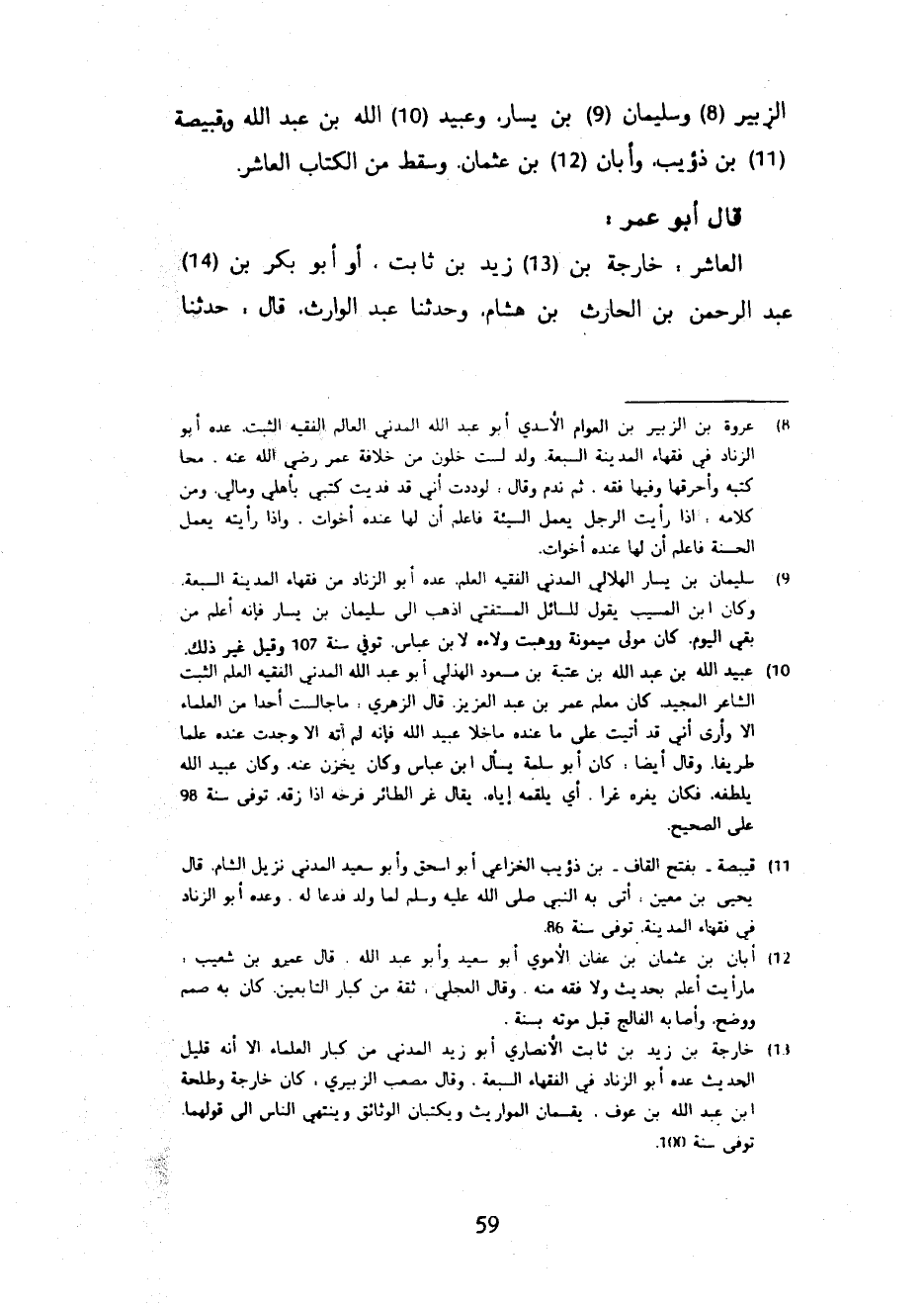 الزُّبَيْرِ وَسُلَيْمَانُ بْنُ يَسَارٍ وَعُبَيْدُ اللَّهِ بْنُ عَبْدِ اللَّهِ وَقَبِيصَةُ بْنُ ذُؤَيْبٍ وَأَبَانُ بْنُ عُثْمَانَ وَسَقَطَ مِنَ الْكِتَابِ الْعَاشِرُ - قَالَ أَبُو عُمَرَ الْعَاشِرُ خَارِجَةُ بْنُ زَيْدِ بْنِ ثَابِتٍ أَوْ أَبُو بَكْرِ بْنِ عَبْدِ الرَّحْمَنِ بْنِ الْحَارِثِ بْنِ هِشَامٍ وَحَدَّثَنَا عَبْدُ الْوَارِثِ قَالَ حَدَّثَنَا