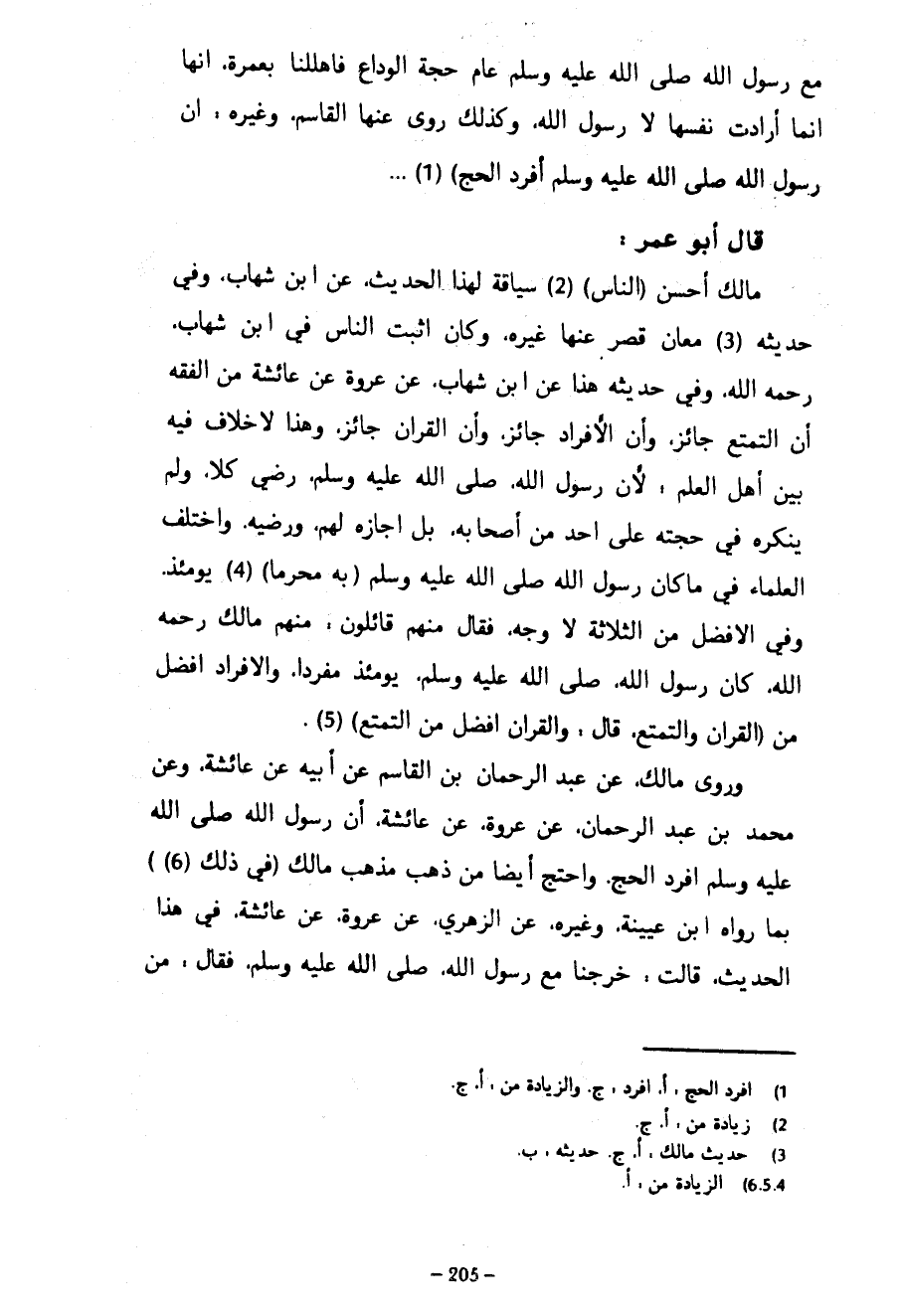 مَعَ رَسُولِ اللَّهِ صَلَّى اللَّهُ عَلَيْهِ وَسَلَّمَ عَامَ حَجَّةِ الْوَدَاعِ فَأَهْلَلْنَا بِعُمْرَةٍ أَنَّهَا إِنَّمَا أَرَادَتْ نَفْسَهَا لَا رَسُولَ اللَّهِ وَكَذَلِكَ رَوَى عَنْهَا الْقَاسِمُ وَغَيْرُهُ أَنَّ رَسُولَ اللَّهِ صَلَّى اللَّهُ عَلَيْهِ وَسَلَّمَ أَفْرَدَ الْحَجَّ) - قَالَ أَبُو عُمَرَ مَالِكٌ أَحْسَنُ (النَّاسِ) سِيَاقَةً لِهَذَا الْحَدِيثِ عَنِ ابْنِ شِهَابٍ وَفِي حَدِيثِهِ مَعَانٍ قَصُرَ عَنْهَا غَيْرُهُ وَكَانَ أَثْبَتَ النَّاسِ فِي ابْنِ شِهَابٍ رَحِمَهُ اللَّهُ وَفِي حَدِيثِهِ هَذَا عَنِ ابْنِ شِهَابٍ عَنْ عُرْوَةَ عَنْ عَائِشَةَ مِنَ الْفِقْهِ أَنَّ التَّمَتُّعَ جَائِزٌ وَأَنَّ الْإِفْرَادَ جَائِزٌ وَأَنَّ الْقِرَانَ جَائِزٌ وَهَذَا لَا خِلَافَ فِيهِ بَيْنَ أَهْلِ الْعِلْمِ لِأَنَّ رَسُولَ اللَّهِ صَلَّى اللَّهُ عَلَيْهِ وَسَلَّمَ رَضِيَ كُلًّا وَلَمْ يُنْكِرْهُ فِي حَجَّتِهِ عَلَى أَحَدٍ مِنْ أَصْحَابِهِ بَلْ أَجَازَهُ لَهُمْ وَرَضِيَهُ وَاخْتَلَفَ الْعُلَمَاءُ فِي مَا كَانَ رَسُولُ اللَّهِ صَلَّى اللَّهُ عَلَيْهِ وَسَلَّمَ (بِهِ مُحْرِمًا) يَوْمَئِذٍ وَفِي الْأَفْضَلِ مِنَ الثَّلَاثَةِ لا وجه فَقَالَ مِنْهُمْ قَائِلُونَ مِنْهُمْ مَالِكٌ رَحِمَهُ اللَّهُ كَانَ رَسُولُ اللَّهِ صَلَّى اللَّهُ عَلَيْهِ وَسَلَّمَ يَوْمَئِذٍ مُفْرِدًا وَالْإِفْرَادُ أَفْضَلُ مِنَ (الْقِرَانِ وَالتَّمَتُّعِ قَالَ وَالْقِرَانُ أَفْضَلُ مِنَ التَّمَتُّعِ) وَرَوَى مَالِكٌ عَنْ عَبْدِ الرَّحْمَنِ بْنِ الْقَاسِمِ عَنْ أَبِيهِ عَنْ عَائِشَةَ وَعَنْ مُحَمَّدِ بْنِ عَبْدِ الرَّحْمَنِ عَنْ عُرْوَةَ عَنْ عَائِشَةَ أَنَّ رَسُولَ اللَّهِ صَلَّى اللَّهُ عَلَيْهِ وَسَلَّمَ أَفْرَدَ الْحَجَّ وَاحْتَجَّ أَيْضًا مَنْ ذَهَبَ مَذْهَبَ مَالِكٍ (فِي ذَلِكَ (6)) بِمَا رَوَاهُ ابْنُ عُيَيْنَةَ وَغَيْرُهُ عَنِ الزُّهْرِيِّ عَنْ عُرْوَةَ عَنْ عَائِشَةَ فِي هَذَا الْحَدِيثِ قَالَتْ خَرَجْنَا مَعَ رَسُولِ اللَّهِ صَلَّى اللَّهُ عَلَيْهِ وَسَلَّمَ فَقَالَ مَنْ