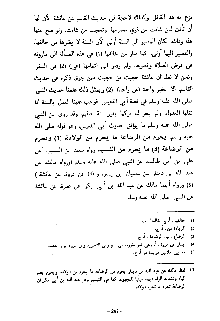 نَزَعَ بِهِ هَذَا الْقَائِلُ وَكَذَلِكَ لَا حُجَّةَ فِي حَدِيثِ الْقَاسِمِ عَنْ عَائِشَةَ لِأَنَّ لَهَا أَنَّ تَأْذَنَ لِمَنْ شَاءَتْ مِنْ ذَوِي مَحَارِمِهَا وَتَحْجُبُ مَنْ شَاءَتْ وَلَوْ صَحَّ عَنْهَا هَذَا وَذَاكَ لَكَانَ الْمَصِيرُ إِلَى السُّنَّةِ أَوْلَى لِأَنَّ السُّنَّةَ لَا يَضُرُّهَا مَنْ خَالَفَهَا وَالْمَصِيرُ إِلَيْهَا أَوْلَى كَمَا صَارَ مَنْ خَالَفَهَا فِي هَذِهِ الْمَسْأَلَةِ إِلَى مَا رَوَتْهُ فِي فَرْضِ الصَّلَاةِ وَقَصْرِهَا وَلَمْ يَصِرْ إِلَى إِتْمَامِهَا (هِيَ) فِي السَّفَرِ وَنَحْنُ لَا نَعْلَمُ أَنَّ عَائِشَةَ حَجَبَتْ مَنْ حَجَبَتْ مِمَّنْ جَرَى ذِكْرُهُ فِي حَدِيثِ الْقَاسِمِ إِلَّا بِخَبَرِ وَاحِدٍ (عَنْ وَاحِدٍ) وَبِمِثْلِ ذَلِكَ عَلِمْنَا حَدِيثَ النَّبِيِّ صَلَّى اللَّهُ عَلَيْهِ وَسَلَّمَ فِي قِصَّةِ أَبِي الْقُعَيْسِ فَوَجَبَ عَلَيْنَا الْعَمَلُ بِالسُّنَّةِ إِذَا نَقَلَهَا الْعُدُولُ وَلَمْ يَجُزْ لَنَا تَرْكُهَا بِغَيْرِ سُنَّةٍ فَافْهَمْ وَقَدْ رُوِيَ عَنِ النَّبِيِّ صَلَّى اللَّهُ عَلَيْهِ وَسَلَّمَ مَا يُوَافِقُ حَدِيثَ أَبِي الْقُعَيْسِ وَهُوَ قَوْلُهُ صَلَّى اللَّهُ عَلَيْهِ وَسَلَّمَ يَحْرُمُ مِنَ الرَّضَاعَةِ مَا يَحْرُمُ مِنَ الْوِلَادَةِ وَيَحْرُمُ مِنَ الرَّضَاعَةِ مَا يَحْرُمُ مِنَ النَّسَبِ رَوَاهُ سَعِيدُ بْنُ الْمُسَيَّبِ عَنْ عَلِيِّ بْنِ أَبِي طَالِبٍ عَنِ النَّبِيِّ صَلَّى اللَّهُ عَلَيْهِ وَسَلَّمَ (وَرَوَاهُ مَالِكٌ عَنْ عَبْدِ اللَّهِ بْنِ دِينَارٍ عَنْ سُلَيْمَانَ بْنِ يَسَارٍ (4) وَعَنْ عُرْوَةَ عَنْ عَائِشَةَ) وَرَوَاهُ أَيْضًا مَالِكٌ عَنْ عَبْدِ اللَّهِ بْنِ أَبِي بَكْرٍ عَنْ عَمْرَةَ عَنْ عَائِشَةَ عَنِ النَّبِيِّ صَلَّى اللَّهُ عَلَيْهِ وَسَلَّمَ