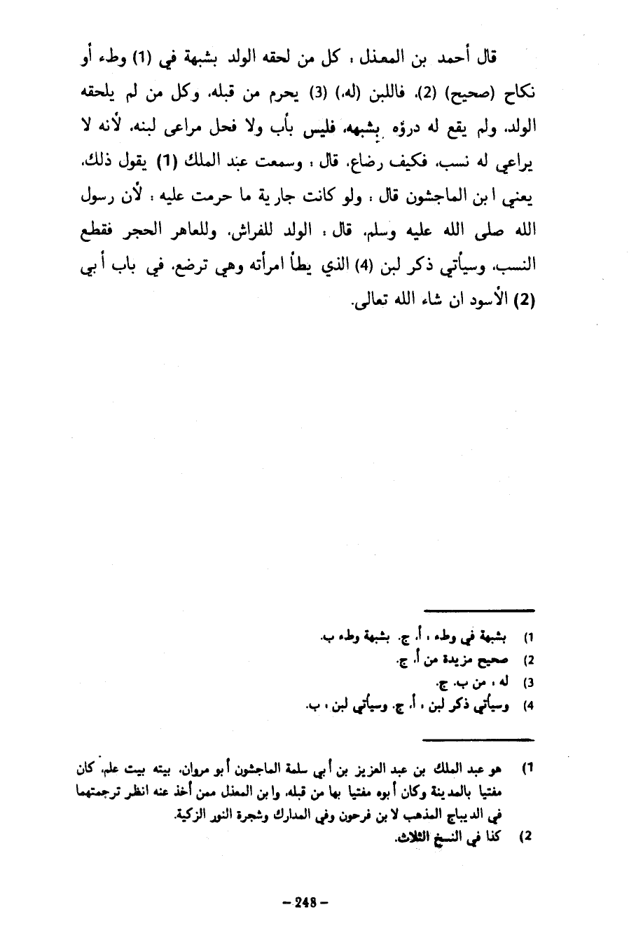 قَالَ أَحْمَدُ بْنُ الْمُعَذَّلِ كُلُّ مَنْ لَحِقَهُ الْوَلَدُ بِشُبْهَةٍ فِي وَطْءٍ أَوْ نِكَاحٍ (صَحِيحٌ) فَاللَّبَنُ (لَهُ) يُحَرَّمُ مِنْ قِبَلِهِ وَكُلُّ مَنْ لَمْ يَلْحَقْهُ الْوَلَدُ وَلَمْ يَقَعْ لَهُ دَرْؤُهُ بِشُبْهَةٍ فَلَيْسَ بِأَبٍ وَلَا فَحْلٍ مُرَاعًى لَبَنُهُ لِأَنَّهُ لَا يُرَاعَى لَهُ نَسَبٌ فَكَيْفَ رَضَاعٌ قَالَ وَسَمِعْتُ عَبْدَ الْمَلِكِ يَقُولُ ذَلِكَ يَعْنِي ابْنَ الْمَاجِشُونِ قَالَ وَلَوْ كَانَتْ جَارِيَةً مَا حُرِّمَتْ عَلَيْهِ لِأَنَّ رَسُولَ اللَّهِ صَلَّى اللَّهُ عَلَيْهِ وَسَلَّمَ قَالَ الْوَلَدُ لِلْفِرَاشِ وَلِلْعَاهِرِ الْحَجَرُ فَقَطَعَ النَّسَبَ وَسَيَأْتِي ذِكْرُ لَبَنِ الَّذِي يَطَأُ امْرَأَتَهُ وَهِيَ تُرْضِعُ فِي بَابِ أَبِي الْأَسْوَدِ إِنْ شَاءَ اللَّهُ تَعَالَى