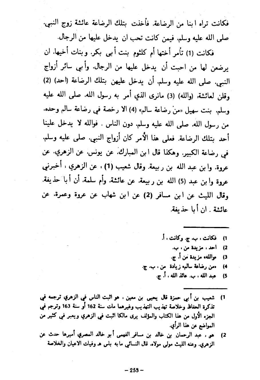 فكانت تراه ابنا من الرضاعة فأخذت بتلك الرَّضَاعَةَ عَائِشَةَ زَوْجَ النَّبِيِّ صَلَّى اللَّهُ عَلَيْهِ وَسَلَّمَ فِيمَنْ كَانَتْ تُحِبُّ أَنْ يَدْخُلَ عَلَيْهَا مِنَ الرِّجَالِ فَكَانَتْ تَأْمُرُ أُخْتَهَا أُمَّ كُلْثُومٍ بِنْتَ أَبِي بَكْرٍ وَبَنَاتَ أَخِيهَا أَنْ يُرْضِعْنَ لَهَا مَنْ أَحَبَّتْ أَنْ يَدْخُلَ عَلَيْهَا مِنَ الرِّجَالِ وَأَبَى سَائِرُ أَزْوَاجِ النَّبِيِّ صَلَّى اللَّهُ عَلَيْهِ وَسَلَّمَ إِنْ يَدْخُلَ عَلَيْهِنَّ بِتِلْكَ الرَّضَاعَةِ (أَحَدٌ) وَقُلْنَ لِعَائِشَةَ (وَاللَّهِ) مَا نَرَى الَّذِي أَمَرَ بِهِ رَسُولُ اللَّهِ صَلَّى اللَّهُ عَلَيْهِ وَسَلَّمَ بِنْتَ سُهَيْلٍ مِنْ رَضَاعَةِ سَالِمٍ إِلَّا رُخْصَةً فِي رَضَاعَةِ سَالِمٍ وَحْدَهُ مِنْ رَسُولِ اللَّهِ صَلَّى اللَّهُ عَلَيْهِ وَسَلَّمَ دُونَ النَّاسِ فَوَاللَّهِ لَا يَدْخُلُ عَلَيْنَا أَحَدٌ بِتِلْكَ الرَّضَاعَةِ فَعَلَى هَذَا الْأَمْرِ كَانَ أَزْوَاجُ النَّبِيِّ صَلَّى اللَّهُ عَلَيْهِ وَسَلَّمَ فِي رَضَاعَةِ الْكَبِيرِ وَهَكَذَا قَالَ ابْنُ الْمُبَارَكِ عَنْ يُونُسَ عَنِ الزُّهْرِيِّ عَنْ عُرْوَةَ وَابْنِ عَبْدِ اللَّهِ بْنِ رَبِيعَةَ وَقَالَ شُعَيْبٌ عَنِ الزُّهْرِيِّ أَخْبَرَنِي عُرْوَةُ وَابْنُ عبد الله بن ربيعة عن عائشة وأم سَلَمَةَ أَنَّ أَبَا حُذَيْفَةَ وَقَالَ اللَّيْثُ عَنِ ابْنِ مُسَافِرٍ عَنِ ابْنِ شِهَابٍ عَنْ عُرْوَةَ وَعَمْرَةَ عَنْ عَائِشَةَ أَنَّ أَبَا حُذَيْفَةَ