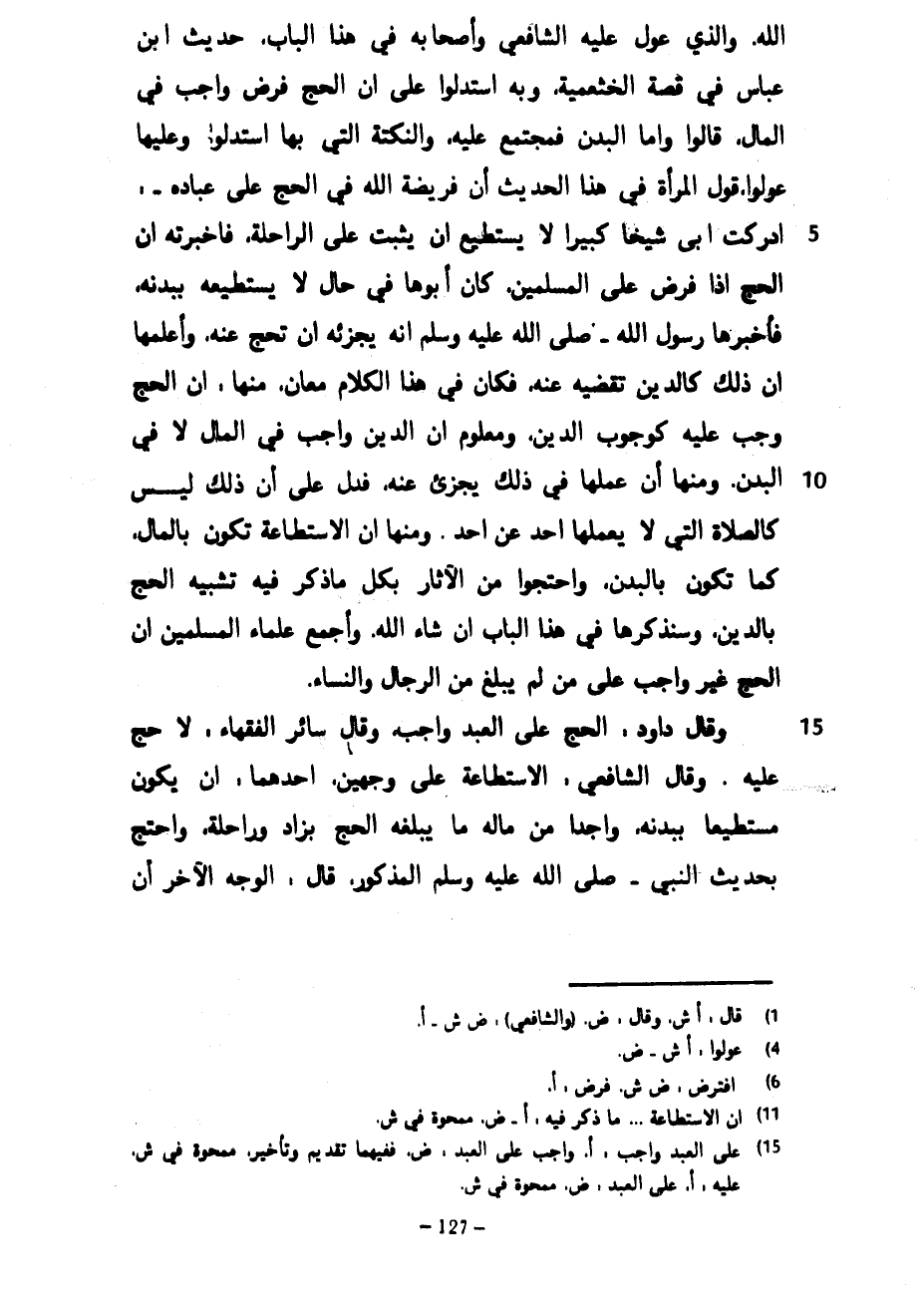 اللَّهُ وَالَّذِي عَوَّلَ عَلَيْهِ الشَّافِعِيُّ وَأَصْحَابُهُ فِي هَذَا الْبَابِ حَدِيثُ ابْنِ عَبَّاسٍ فِي قِصَّةِ الْخَثْعَمِيَّةِ وَبِهِ اسْتَدَلُّوا عَلَى أَنَّ الْحَجَّ فَرْضٌ وَاجِبٌ فِي الْمَالِ قَالُوا وَأَمَّا الْبَدَنُ فَمُجْتَمَعٌ عَلَيْهِ وَالنُّكْتَةُ الَّتِي بِهَا اسْتَدَلُّوا وَعَلَيْهَا عَوَّلُوا قَوْلُ الْمَرْأَةِ فِي هَذَا الْحَدِيثِ إِنَّ فَرِيضَةَ اللَّهِ فِي الْحَجِّ عَلَى عِبَادِهِ أَدْرَكَتْ أَبِي شَيْخًا كَبِيرًا لَا يَسْتَطِيعُ أَنْ يَثْبُتَ عَلَى الراحلة فأخبرته أن الحج إذا فُرِضَ عَلَى الْمُسْلِمِينَ كَانَ أَبُوهَا فِي حَالٍ لَا يَسْتَطِيعُهُ بِبَدَنِهِ فَأَخْبَرَهَا رَسُولُ اللَّهِ صَلَّى اللَّهُ عَلَيْهِ وَسَلَّمَ أَنَّهُ يُجْزِئُهُ أَنْ تَحُجَّ عَنْهُ وَأَعْلَمَهَا أَنَّ ذَلِكَ كَالدَّيْنِ تَقْضِيهِ عَنْهُ فَكَانَ فِي هَذَا الْكَلَامِ مَعَانٍ مِنْهَا أَنَّ الْحَجَّ وَجَبَ عَلَيْهِ كَوُجُوبِ الدَّيْنِ وَمَعْلُومٌ أَنَّ الدَّيْنَ وَاجِبٌ فِي الْمَالِ لَا فِي الْبَدَنِ وَمِنْهَا أَنَّ عَمَلَهَا فِي ذَلِكَ يُجْزِئُ عَنْهُ فَدَلَّ عَلَى أَنَّ ذَلِكَ لَيْسَ كَالصَّلَاةِ الَّتِي لَا يَعْمَلُهَا أَحَدٌ عَنْ أَحَدٍ وَمِنْهَا أَنَّ الِاسْتِطَاعَةَ تَكُونُ بِالْمَالِ كَمَا تَكُونُ بِالْبَدَنِ وَاحْتَجُّوا مِنَ الْآثَارِ بِكُلِّ مَا ذُكِرَ فِيهِ تَشْبِيهُ الْحَجِّ بِالدَّيْنِ وَسَنَذْكُرُهَا فِي هَذَا الْبَابِ إِنْ شَاءَ اللَّهُ وَأَجْمَعَ عُلَمَاءُ الْمُسْلِمِينَ أَنَّ الْحَجَّ غَيْرُ وَاجِبٍ عَلَى مَنْ لَمْ يَبْلُغْ مِنَ الرِّجَالِ وَالنِّسَاءِ وَقَالَ دَاوُدُ الْحَجُّ عَلَى الْعَبْدِ وَاجِبٌ وَقَالَ سَائِرُ الْفُقَهَاءِ لَا حَجَّ عَلَيْهِ وَقَالَ الشَّافِعِيُّ الِاسْتِطَاعَةُ عَلَى وَجْهَيْنِ أَحَدُهُمَا أَنْ يَكُونَ مُسْتَطِيعًا بِبَدَنِهِ وَاجِدًا مِنْ مَالِهِ مَا يُبَلِّغُهُ الْحَجَّ بِزَادٍ وَرَاحِلَةٍ وَاحْتَجَّ بِحَدِيثِ النَّبِيِّ صَلَّى اللَّهُ عَلَيْهِ وَسَلَّمَ الْمَذْكُورِ قَالَ الْوَجْهُ الآخر أن