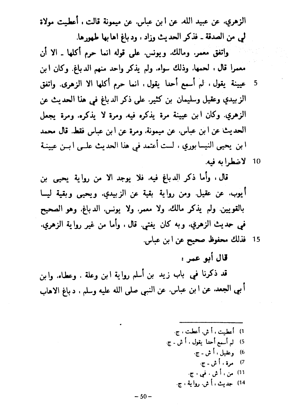 الزُّهْرِيِّ عَنْ عُبَيْدِ اللَّهِ عَنِ ابْنِ عَبَّاسٍ عَنْ مَيْمُونَةَ قَالَتْ أَعْطَيْتُ مَوْلَاةً لِي مِنَ الصَّدَقَةِ فَذَكَرَ الْحَدِيثَ وَزَادَ وَدِبَاغُ إِهَابِهَا طَهُورُهَا وَاتَّفَقَ مَعْمَرٌ وَمَالِكٌ وَيُونُسُ عَلَى قَوْلِهِ إِنَّمَا حُرِّمَ أَكْلُهَا إِلَّا أَنَّ مَعْمَرًا قَالَ لَحْمُهَا وَذَلِكَ سَوَاءٌ وَلَمْ يَذْكُرْ وَاحِدٌ مِنْهُمُ الدِّبَاغَ وَكَانَ ابْنُ عُيَيْنَةَ يَقُولُ لَمْ أَسْمَعْ أَحَدًا يَقُولُ إِنَّمَا حُرِّمَ أَكْلُهَا إِلَّا الزُّهْرِيَّ وَاتَّفَقَ الزُّبَيْدِيُّ وَعُقَيْلٌ وَسُلَيْمَانُ بْنُ كَثِيرٍ عَلَى ذِكْرِ الدِّبَاغِ فِي هَذَا الْحَدِيثِ عَنِ الزُّهْرِيِّ وَكَانَ ابْنُ عُيَيْنَةَ مَرَّةً يَذْكُرُهُ فِيهِ وَمَرَّةً لَا يَذْكُرُهُ وَمَرَّةً يَجْعَلُ الْحَدِيثَ عَنِ ابْنِ عَبَّاسٍ عَنْ مَيْمُونَةَ وَمَرَّةً عَنِ ابْنِ عَبَّاسٍ فَقَطْ قال محمد ابن يَحْيَى النَّيْسَابُورِيُّ لَسْتُ أَعْتَمِدُ فِي هَذَا الْحَدِيثِ عَلَى ابْنِ عُيَيْنَةَ لِاضْطِرَابِهِ فِيهِ قَالَ وَأَمَّا ذِكْرُ الدِّبَاغِ فِيهِ فَلَا يُوجَدُ إِلَّا مِنْ رِوَايَةِ يَحْيَى بْنِ أَيُّوبَ عَنْ عُقَيْلٍ وَمِنْ رِوَايَةِ بَقِيَّةَ عَنِ الزُّبَيْدِيِّ وَيَحْيَى وَبَقِيَّةُ لَيْسَا بِالْقَوِيَّيْنِ وَلَمْ يَذْكُرْ مَالِكٌ وَلَا مَعْمَرٌ وَلَا يُونُسُ الدِّبَاغَ وَهُوَ الصَّحِيحُ فِي حَدِيثِ الزُّهْرِيِّ وبه كان يفتي قال وأما من غير رواية الزُّهْرِيِّ فَذَلِكَ مَحْفُوظٌ صَحِيحٌ عَنِ ابْنِ عَبَّاسٍ قَالَ أَبُو عُمَرَ قَدْ ذَكَرْنَا فِي بَابِ زَيْدِ بْنِ أَسْلَمَ رِوَايَةَ ابْنِ وَعْلَةَ وَعَطَاءٍ وَابْنِ أَبِي الْجَعْدِ عَنِ ابْنِ عَبَّاسٍ عَنِ النَّبِيِّ صَلَّى اللَّهُ عَلَيْهِ وَسَلَّمَ دِبَاغُ الْإِهَابِ