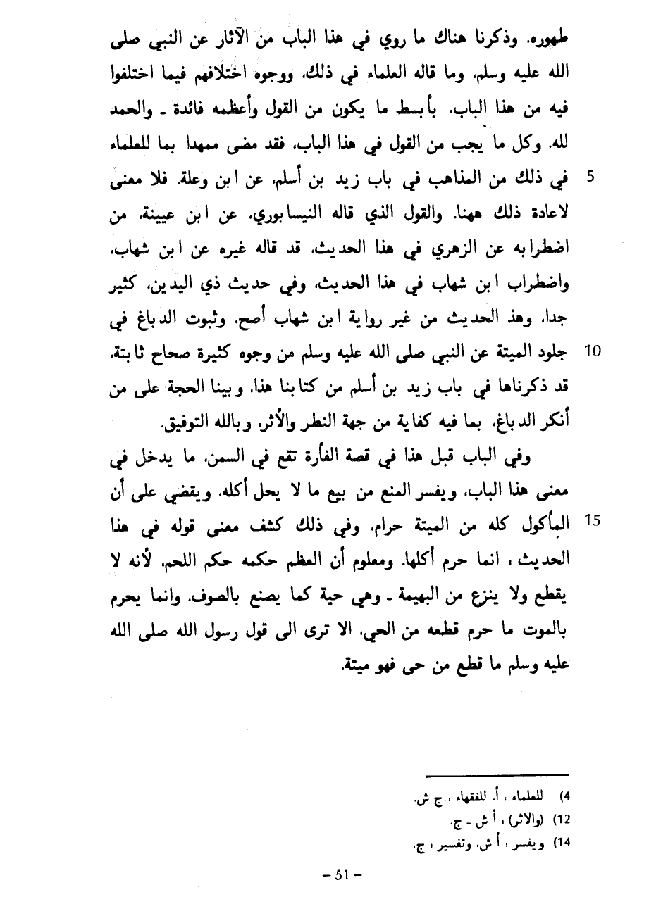 طَهُورُهُ وَذَكَرْنَا هُنَاكَ فِي هَذَا الْبَابِ مِنَ الْآثَارِ عَنِ النَّبِيِّ صَلَّى اللَّهُ عَلَيْهِ وَسَلَّمَ وَمَا قَالَهُ الْعُلَمَاءُ فِي ذَلِكَ وَوُجُوهِ اخْتِلَافِهِمْ فِيمَا اخْتَلَفُوا فِيهِ مِنْ هَذَا الْبَابِ بِأَبْسَطِ مَا يَكُونُ مِنَ الْقَوْلِ وَأَعْظَمِهِ فَائِدَةً وَالْحَمْدُ لِلَّهِ وَكُلُّ مَا يَجِبُ مِنَ الْقَوْلِ فِي هَذَا الْبَابِ فَقَدْ مَضَى مُمَهَّدًا بِمَا لِلْعُلَمَاءِ فِي ذَلِكَ مِنَ الْمَذَاهِبِ فِي بَابِ زَيْدِ بن اسلم عن ابن وعلة فلا معنى لإعادة ذلك ههنا وَالْقَوْلُ الَّذِي قَالَهُ النَّيْسَابُورِيُّ عَنِ ابْنِ عُيَيْنَةَ مِنِ اضْطِرَابِهِ عَنِ الزُّهْرِيِّ فِي هَذَا الْحَدِيثِ قَدْ قَالَهُ غَيْرُهُ عَنِ ابْنِ شِهَابٍ وَاضْطِرَابُ ابْنِ شِهَابٍ فِي هَذَا الْحَدِيثِ وَفِي حَدِيثِ ذي اليدين كثير جادا وَهَذَا الْحَدِيثُ مِنْ غَيْرِ رِوَايَةِ ابْنِ شِهَابٍ أَصَحُّ وَثُبُوتُ الدِّبَاغِ فِي جُلُودِ الْمَيْتَةِ عَنِ النَّبِيِّ صَلَّى اللَّهُ عَلَيْهِ وَسَلَّمَ مِنْ وُجُوهٍ كَثِيرَةٍ صِحَاحٍ ثَابِتَةٍ قَدْ ذَكَرْنَاهَا فِي بَابِ زَيْدِ بْنِ أَسْلَمَ مِنْ كِتَابِنَا هَذَا وَبَيَّنَا الْحُجَّةَ عَلَى مَنْ أَنْكَرَ الدِّبَاغَ بِمَا فِيهِ كِفَايَةٌ مِنْ جِهَةِ النَّظَرِ وَالْأَثَرِ وَبِاللَّهِ التَّوْفِيقُ وَفِي الْبَابِ قَبْلَ هَذَا فِي قِصَّةِ الْفَأْرَةِ تَقَعُ فِي السَّمْنِ مَا يَدْخُلُ فِي مَعْنَى هذا الباب ويفسر المنع من بيع مالا يَحِلُّ أَكْلُهُ وَيَقْضِي عَلَى أَنَّ الْمَأْكُولَ كُلَّهُ مِنَ الْمَيْتَةِ حَرَامٌ وَفِي ذَلِكَ كَشْفُ مَعْنَى قَوْلِهِ فِي هَذَا الْحَدِيثِ إِنَّمَا حُرِّمَ أَكْلُهَا وَمَعْلُومٌ أَنَّ الْعَظْمَ حُكْمُهُ حُكْمُ اللَّحْمِ لِأَنَّهُ لَا يُقْطَعُ وَلَا يُنْزَعُ مِنَ الْبَهِيمَةِ وَهِيَ حَيَّةٌ كَمَا يُصْنَعُ بِالصُّوفِ وَإِنَّمَا يَحْرُمُ بِالْمَوْتِ مَا حَرُمَ قَطْعُهُ مِنَ الْحَيِّ أَلَا تَرَى إِلَى قَوْلِ رَسُولِ اللَّهِ صَلَّى اللَّهُ عَلَيْهِ وَسَلَّمَ مَا قُطِعَ مِنْ حَيٍّ فَهُوَ مَيْتَةٌ