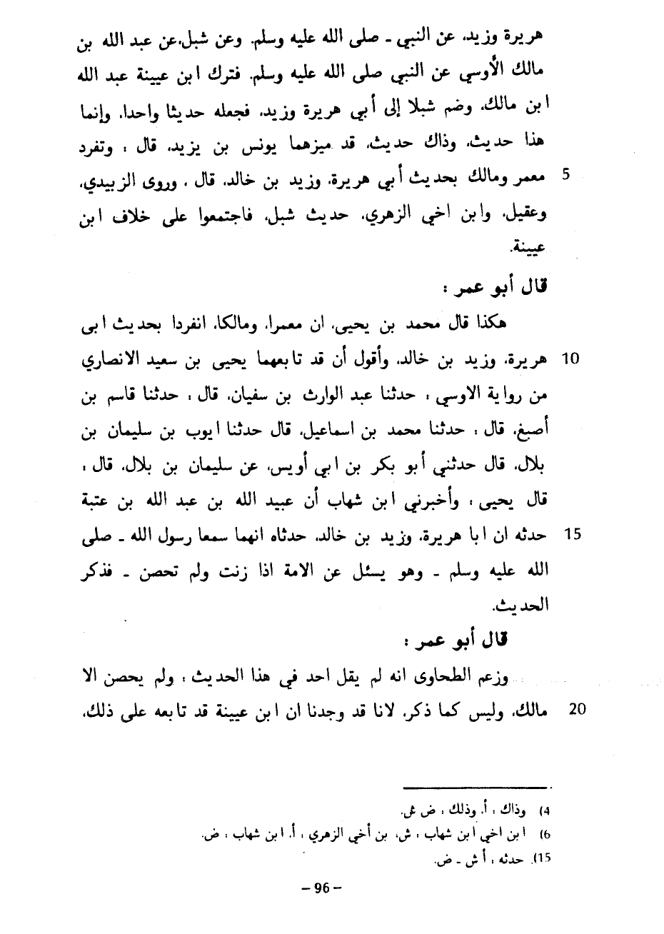 هُرَيْرَةَ وَزَيْدٍ عَنِ النَّبِيِّ صَلَّى اللَّهُ عَلَيْهِ وَسَلَّمَ وَعَنْ شِبْلٍ عَنْ عَبْدِ اللَّهِ بْنِ مَالِكٍ الْأَوْسِيِّ عَنِ النَّبِيِّ صَلَّى اللَّهُ عَلَيْهِ وسلم فترك ابن عيينة عبد الله ابن مَالِكٍ وَضَمَّ شِبْلًا إِلَى أَبِي هُرَيْرَةَ وَزَيْدٍ فَجَعَلَهُ حَدِيثًا وَاحِدًا وَإِنَّمَا هَذَا حَدِيثٌ وَذَاكَ حَدِيثٌ قَدْ مَيَّزَهُمَا يُونُسُ بْنُ يَزِيدَ قَالَ وَتَفَرَّدَ مَعْمَرٌ وَمَالِكٌ بِحَدِيثِ أَبِي هُرَيْرَةَ وَزَيْدِ بْنِ خَالِدٍ قَالَ وَرَوَى الزُّبَيْدِيُّ وَعُقَيْلٌ وَابْنُ أَخِي الزُّهْرِيِّ حَدِيثَ شِبْلٍ فَاجْتَمَعُوا عَلَى خِلَافِ ابْنِ عُيَيْنَةَ قَالَ أَبُو عُمَرَ هَكَذَا قَالَ مُحَمَّدُ بْنُ يَحْيَى أَنَّ مَعْمَرًا وَمَالِكًا انْفَرَدَا بِحَدِيثِ أَبِي هُرَيْرَةَ وَزَيْدِ بْنِ خَالِدٍ وَأَقُولُ أَنْ قَدْ تَابَعَهُمَا يَحْيَى بْنُ سَعِيدٍ الْأَنْصَارِيُّ مِنْ رِوَايَةِ الْأَوْسِيِّ حَدَّثَنَا عَبْدُ الْوَارِثِ بْنُ سُفْيَانَ قَالَ حَدَّثَنَا قَاسِمُ بْنُ أَصْبَغَ قَالَ حَدَّثَنَا مُحَمَّدُ بْنُ إِسْمَاعِيلَ قَالَ حَدَّثَنَا أَيُّوبُ بْنُ سُلَيْمَانَ بْنِ بِلَالٍ قَالَ حَدَّثَنِي أَبُو بَكْرِ بْنُ أَبِي أُوَيْسٍ عَنْ سُلَيْمَانَ بْنِ بِلَالٍ قَالَ قَالَ يَحْيَى وَأَخْبَرَنِي ابْنُ شِهَابٍ أَنَّ عُبَيْدِ اللَّهِ بْنِ عَبْدِ اللَّهِ بْنِ عُتْبَةَ حَدَّثَهُ أَنَّ أَبَا هُرَيْرَةَ وَزَيْدَ بْنَ خَالِدٍ حَدَّثَاهُ أَنَّهُمَا سَمِعَا رَسُولَ اللَّهِ صَلَّى اللَّهُ عَلَيْهِ وسلم وهو يسئل عَنِ الْأَمَةِ إِذَا زَنَتْ وَلَمْ تُحْصَنْ فَذَكَرَ الْحَدِيثَ قَالَ أَبُو عُمَرَ وَزَعَمَ الطَّحَاوِيُّ أَنَّهُ لَمْ يَقُلْ أَحَدٌ فِي هَذَا الْحَدِيثِ وَلَمْ يحصن إِلَّا مَالِكٌ وَلَيْسَ كَمَا ذَكَرَ لِأَنَّا قَدْ وَجَدْنَا أَنَّ ابْنَ عُيَيْنَةَ قَدْ تَابَعَهُ عَلَى ذلك