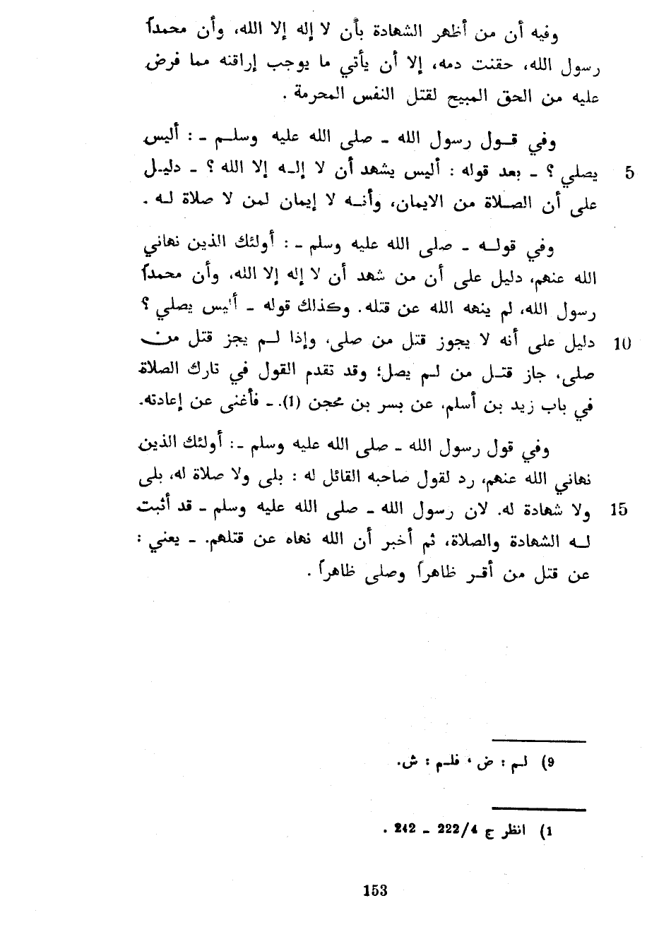 وَفِيهِ أَنَّ مَنْ أَظْهَرَ الشَّهَادَةَ بِأَنْ لَا إِلَهَ إِلَّا اللَّهُ وَأَنَّ مُحَمَّدًا رَسُولُ اللَّهِ حقنت دَمُهُ إِلَّا أَنْ يَأْتِيَ مَا يُوجِبُ إِرَاقَتَهُ مِمَّا فُرِضَ عَلَيْهِ مِنَ الْحَقِّ الْمُبِيحِ لِقَتْلِ النَّفْسِ الْمُحَرَّمَةِ وَفِي قَوْلِ رَسُولِ اللَّهِ صَلَّى اللَّهُ عَلَيْهِ وَسَلَّمَ أَلَيْسَ يُصَلِّي بَعْدَ قَوْلِهِ أَلَيْسَ يَشْهَدُ أَنْ لَا إِلَهَ إِلَّا اللَّهُ دَلِيلٌ عَلَى أَنَّ الصَّلَاةَ مِنَ الْإِيمَانِ وَأَنَّهُ لَا إِيمَانَ لِمَنْ لَا صَلَاةَ لَهُ وَفِي قَوْلِهِ صَلَّى اللَّهُ عَلَيْهِ وَسَلَّمَ أُولَئِكَ الَّذِينَ نَهَانِي اللَّهُ عَنْهُمْ دَلِيلٌ عَلَى أَنَّ مَنْ شَهِدَ أَنْ لَا إِلَهَ إِلَّا اللَّهُ وَأَنَّ مُحَمَّدًا رَسُولُ اللَّهِ لَمْ يَنْهَهُ اللَّهُ عَنْ قَتْلِهِ وَكَذَلِكَ قَوْلُهُ أَلَيْسَ يُصَلِّي دَلِيلٌ عَلَى أَنَّهُ لَا يَجُوزُ قَتْلُ مَنْ صَلَّى وَإِذَا لَمْ يَجُزْ قَتْلُ مَنْ صَلَّى جَازَ قَتْلُ مَنْ لَمْ يُصَلِّ وَقَدْ تَقَدَّمَ الْقَوْلُ فِي تَارِكِ الصَّلَاةِ فِي بَابِ زَيْدِ بْنِ أَسْلَمَ عَنْ بُسْرِ بْنِ مِحْجَنٍ فَأَغْنَى عَنْ إِعَادَتِهِ وَفِي قَوْلِ رَسُولِ اللَّهِ صَلَّى اللَّهُ عَلَيْهِ وَسَلَّمَ أُولَئِكَ الَّذِينَ نَهَانِي اللَّهُ عَنْهُمْ رَدٌّ لِقَوْلِ صَاحِبِهِ الْقَائِلِ لَهُ بَلَى وَلَا صَلَاةَ لَهُ بَلَى وَلَا شَهَادَةَ لَهُ لِأَنَّ رَسُولَ اللَّهِ صَلَّى اللَّهُ عَلَيْهِ وَسَلَّمَ قَدْ أَثْبَتَ لَهُ الشَّهَادَةَ وَالصَّلَاةَ ثُمَّ أَخْبَرَ أَنَّ اللَّهَ نَهَاهُ عَنْ قَتْلِهِمْ يَعْنِي عَنْ قَتْلِ مَنْ أَقَرَّ ظَاهَرًا وَصَلَّى ظَاهِرًا