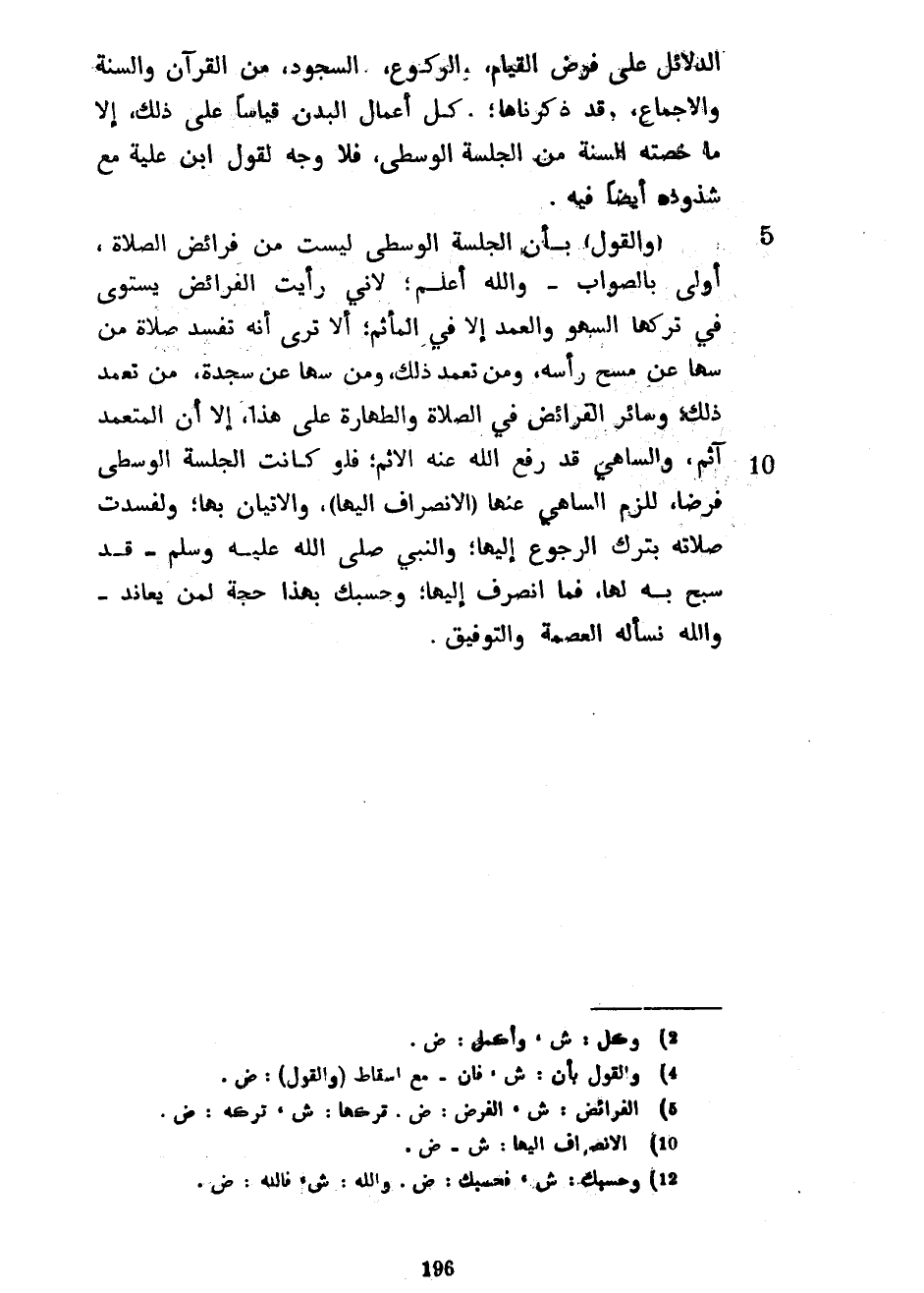 الدَّلَائِلُ عَلَى فَرْضِ الْقِيَامِ وَالرُّكُوعِ وَالسُّجُودِ مِنَ القرآن والسنة والإجماع وقد ذكرناها كل أَعْمَالِ الْبَدَنِ قِيَاسًا عَلَى ذَلِكَ إِلَّا مَا خَصَّتْهُ السُّنَّةُ مِنَ الْجَلْسَةِ الْوُسْطَى فَلَا وَجْهَ لِقَوْلِ ابْنِ عُلَيَّةَ مَعَ شُذُوذِهِ أَيْضًا فِيهِ (وَالْقَوْلُ) بِأَنَّ الْجَلْسَةَ الْوُسْطَى لَيْسَتْ مِنْ فَرَائِضِ الصَّلَاةِ أَوْلَى بِالصَّوَابِ وَاللَّهُ أَعْلَمُ لِأَنِّي رَأَيْتُ الْفَرَائِضَ يَسْتَوِي فِي تَرْكِهَا السَّهْوُ وَالْعَمْدُ إِلَّا فِي الْمَأْثَمِ أَلَا تَرَى أَنَّهُ تَفْسُدُ صَلَاةُ مَنْ سَهَا عَنْ مَسْحِ رَأْسِهِ وَمَنْ تَعَمَّدَ ذلك ومن سها عن سجدة من تَعَمَّدَ ذَلِكَ وَسَائِرُ الْفَرَائِضِ فِي الصَّلَاةِ وَالطَّهَارَةِ عَلَى هَذَا إِلَّا أَنَّ الْمُتَعَمِّدَ آثِمٌ وَالسَّاهِيَ قَدْ رَفَعَ اللَّهُ عَنْهُ الْإِثْمَ فَلَوْ كَانَتِ الجلسة الوسطى فرضا للزم الساعي عَنْهَا (الِانْصِرَافُ إِلَيْهَا) وَالْإِتْيَانُ بِهَا وَلَفَسَدَتْ صَلَاتُهُ بِتَرْكِ الرُّجُوعِ إِلَيْهَا وَالنَّبِيُّ صَلَّى اللَّهُ عَلَيْهِ وَسَلَّمَ قَدْ سُبِّحَ بِهِ لَهَا فَمَا انْصَرَفَ إِلَيْهَا وَحَسْبُكَ بِهَذَا حُجَّةً لِمَنْ يُعَانِدُ وَاللَّهُ نَسْأَلُهُ الْعِصْمَةَ وَالتَّوْفِيقَ