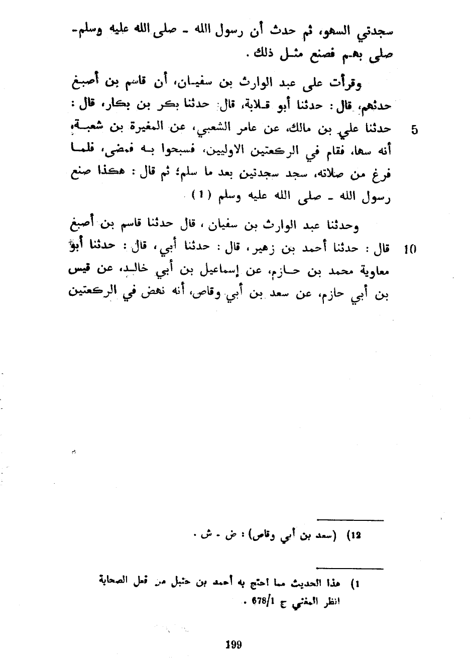 سَجْدَتَيِ السَّهْوِ ثُمَّ حَدَّثَ أَنَّ رَسُولَ اللَّهِ صَلَّى اللَّهُ عَلَيْهِ وَسَلَّمَ صَلَّى بِهِمْ فَصَنَعَ مِثْلَ ذَلِكَ وَقَرَأْتُ عَلَى عَبْدِ الْوَارِثِ بْنِ سُفْيَانَ أَنَّ قَاسِمَ بْنَ أَصْبَغَ حَدَّثَهُمْ قَالَ حَدَّثَنَا أَبُو قِلَابَةَ قَالَ حَدَّثَنَا بَكْرُ بْنُ بَكَّارٍ قَالَ حَدَّثَنَا عَلِيُّ بْنُ مَالِكٍ عَنْ عَامِرٍ الشَّعْبِيِّ عَنِ الْمُغِيرَةِ بْنِ شُعْبَةَ أَنَّهُ سَهَا فَقَامَ فِي الرَّكْعَتَيْنِ الْأُولَيَيْنِ فَسَبَّحُوا بِهِ فَمَضَى فَلَمَّا فَرَغَ مِنْ صَلَاتِهِ سَجَدَ سَجْدَتَيْنِ بَعْدَ مَا سَلَّمَ ثُمَّ قَالَ هَكَذَا صَنَعَ رَسُولُ اللَّهِ صَلَّى اللَّهُ عَلَيْهِ وَسَلَّمَ وَحَدَّثَنَا عَبْدُ الْوَارِثِ بْنُ سُفْيَانَ قَالَ حَدَّثَنَا قَاسِمُ بْنُ أَصْبَغَ قَالَ حَدَّثَنَا أَحْمَدُ بْنُ زُهَيْرٍ قَالَ حَدَّثَنَا أَبِي قَالَ حَدَّثَنَا أَبُو مُعَاوِيَةَ مُحَمَّدُ بْنُ حَازِمٍ عَنْ إِسْمَاعِيلَ بْنِ أَبِي خَالِدٍ عَنْ قَيْسِ بْنِ أَبِي حَازِمٍ عَنْ سَعْدِ بْنِ أَبِي وَقَّاصٍ أَنَّهُ نَهَضَ فِي الركعتين