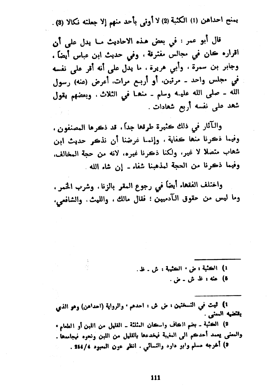 يَمْنَحُ إِحْدَاهُنَّ الْكُثْبَةَ لَا أُوتَى بِأَحَدٍ مِنْهُمْ إِلَّا جَعَلْتُهُ نَكَالًا قَالَ أَبُو عُمَرَ فِي بَعْضِ هَذِهِ الْأَحَادِيثِ مَا يَدُلُّ عَلَى أَنَّ إِقْرَارَهُ كَانَ فِي مَجَالِسَ مُفْتَرِقَةٍ وَفِي حَدِيثِ ابْنِ عَبَّاسٍ أَيْضًا وَجَابِرِ بْنِ سَمُرَةَ وَأَبِي هُرَيْرَةَ مَا يَدُلُّ عَلَى أَنَّهُ أَقَرَّ عَلَى نَفْسِهِ فِي مَجْلِسٍ وَاحِدٍ مَرَّتَيْنِ أَوْ أَرْبَعَ مَرَّاتٍ أَعْرَضَ (عَنْهُ) رَسُولُ اللَّهِ صَلَّى اللَّهُ عَلَيْهِ وَسَلَّمَ مِنْهَا فِي الثَّلَاثِ وَبَعْضُهُمْ يَقُولُ شَهِدَ عَلَى نَفْسِهِ أَرْبَعَ شَهَادَاتٍ وَالْآثَارُ فِي ذَلِكَ كَثِيرَةٌ طُرُقُهَا جِدًّا قَدْ ذَكَرَهَا الْمُصَنِّفُونَ وَفِيمَا ذَكَرْنَا مِنْهَا كِفَايَةٌ وَإِنَّمَا غَرَضُنَا أَنْ نَذْكُرَ حَدِيثَ ابْنِ شِهَابٍ مُتَّصِلًا لَا غَيْرَ وَلَكِنَّا ذَكَرْنَا غَيْرَهُ لِأَنَّهُ مِنْ حُجَّةِ الْمُخَالِفِ وَفِيمَا ذَكَرْنَا مِنَ الْحُجَّةِ لِمَذْهَبِنَا شِفَاءٌ إِنْ شَاءَ اللَّهُ وَاخْتَلَفَ الْفُقَهَاءُ أَيْضًا فِي رُجُوعِ الْمُقِرِّ بِالزِّنَا وَشُرْبِ الْخَمْرِ وَمَا لَيْسَ مِنْ حُقُوقِ الْآدَمِيِّينَ فَقَالَ مَالِكٌ وَاللَّيْثُ وَالشَّافِعِيُّ