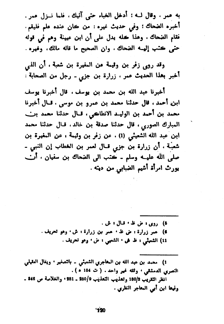 بِهِ عُمَرَ وَقَالَ لَهُ ادْخُلِ الْخِبَاءَ حَتَّى آتِيَكَ فَلَمَّا نَزَلَ عُمَرُ أَخْبَرَهُ الضَّحَّاكُ وَفِي حَدِيثِ غَيْرِهِ مَنْ كَانَ عِنْدَهُ عِلْمٌ فَلْيَقُمْ فَقَامَ الضَّحَّاكُ وَهَذَا كُلُّهُ يَدُلُّ عَلَى أَنَّ ابْنَ عُيَيْنَةَ وَهِمَ فِي قَوْلِهِ حَتَّى كَتَبَ إِلَيْهِ الضَّحَّاكُ وَأَنَّ الصَّحِيحَ مَا قَالَهُ مَالِكٌ وغيره وقد روى زفر بن وئيمة عَنِ الْمُغِيرَةِ بْنِ شُعْبَةَ أَنَّ الَّذِي أَخْبَرَ بِهَذَا الْحَدِيثِ عُمَرَ زُرَارَةُ بْنُ جَزِيٍّ رَجُلٌ مِنَ الصَّحَابَةِ أَخْبَرَنَا عَبْدُ اللَّهِ بْنُ مُحَمَّدِ بْنِ يُوسُفَ قَالَ أَخْبَرَنَا يُوسُفُ بْنُ أَحْمَدَ قَالَ حَدَّثَنَا مُحَمَّدُ بْنُ عَمْرِو بْنِ مُوسَى قَالَ أَخْبَرَنَا مُحَمَّدُ بْنُ أَحْمَدَ بْنِ الْوَلِيدِ الْأَنْطَاكِيُّ قَالَ حَدَّثَنَا مُحَمَّدُ بْنُ الْمُبَارَكِ الصُّورِيُّ قَالَ حَدَّثَنَا صَدَقَةُ بْنُ خَالِدٍ قَالَ حَدَّثَنَا مُحَمَّدُ بْنُ عَبْدِ اللَّهِ الشُّعَيْثِيُّ عَنْ زُفَرَ بن وئيمة عَنِ الْمُغِيرَةِ بْنِ شُعْبَةَ أَنَّ زُرَارَةَ بْنَ جَزِيٍّ قَالَ لِعُمَرَ بْنِ الْخَطَّابِ أَنَّ النَّبِيَّ صَلَّى اللَّهُ عَلَيْهِ وَسَلَّمَ كَتَبَ إِلَى الضَّحَّاكِ بْنِ سُفْيَانَ أَنْ يُوَرِّثَ امْرَأَةَ أَشْيَمَ الضِّبَابِيِّ من ديته