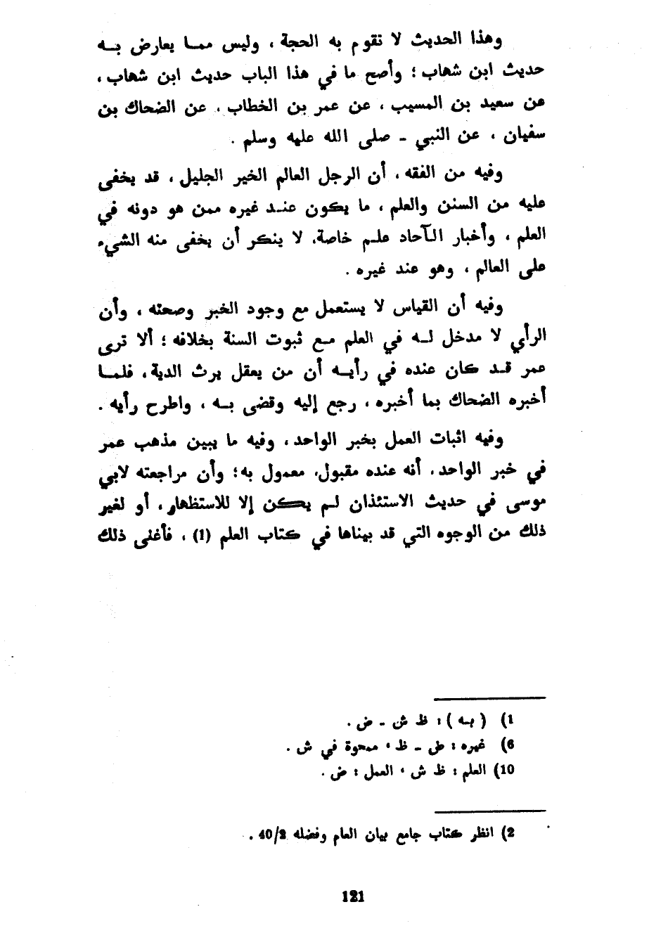 وَهَذَا الْحَدِيثُ لَا تَقُومُ بِهِ الْحُجَّةُ وَلَيْسَ مِمَّا يُعَارَضُ بِهِ حَدِيثُ ابْنِ شِهَابٍ وَأَصَحُّ مَا فِي هَذَا الْبَابِ حَدِيثِ ابْنِ شِهَابٍ عَنْ سَعِيدِ بْنِ الْمُسَيَّبِ عَنْ عُمَرَ بْنِ الْخَطَّابِ عَنِ الضَّحَّاكِ بْنِ سُفْيَانَ عَنِ النَّبِيِّ صَلَّى اللَّهُ عَلَيْهِ وَسَلَّمَ وَفِيهِ مِنَ الْفِقْهِ أَنَّ الرَّجُلَ الْعَالِمَ الْخَيِّرَ الْجَلِيلَ قَدْ يَخْفَى عَلَيْهِ مِنَ السُّنَنِ وَالْعِلْمِ مَا يَكُونُ عِنْدَ غَيْرِهِ مِمَّنْ هُوَ دُونَهُ فِي الْعِلْمِ وَأَخْبَارُ الْآحَادِ عِلْمُ خَاصَّةٍ لَا يُنْكَرُ أَنْ يَخْفَى مِنْهُ الشَّيْءُ عَلَى الْعَالِمِ وَهُوَ عِنْدَ غَيْرِهِ وَفِيهِ أَنَّ الْقِيَاسَ لَا يُسْتَعْمَلُ مَعَ وُجُودِ الْخَبَرِ وَصِحَّتِهِ وَأَنَّ الرَّأْيَ لَا مَدْخَلَ لَهُ فِي الْعِلْمِ مَعَ ثُبُوتِ السُّنَّةِ بِخِلَافِهِ أَلَا تَرَى عُمَرَ قَدْ كَانَ عِنْدَهُ فِي رَأْيِهِ أَنَّ مَنْ يَعْقِلُ يَرِثُ الدِّيَةَ فَلَمَّا أَخْبَرَهُ الضَّحَّاكُ بِمَا أَخْبَرَهُ رَجَعَ إِلَيْهِ وَقَضَى بِهِ وَاطَّرَحَ رَأْيَهُ وَفِيهِ إِثْبَاتُ الْعَمَلِ بِخَبَرِ الْوَاحِدِ وَفِيهِ مَا يُبَيِّنُ مَذْهَبَ عُمَرَ فِي خَبَرِ الْوَاحِدِ أَنَّهُ عِنْدَهُ مَقْبُولٌ مَعْمُولٌ بِهِ وَأَنَّ مُرَاجَعَتَهُ لِأَبِي مُوسَى فِي حَدِيثِ الِاسْتِئْذَانِ لَمْ يَكُنْ إِلَّا لِلِاسْتِظْهَارِ أَوْ لِغَيْرِ ذَلِكَ مِنَ الْوُجُوهِ الَّتِي قَدْ بَيَّنَّاهَا فِي كِتَابِ الْعِلْمِ فأغنى ذلك