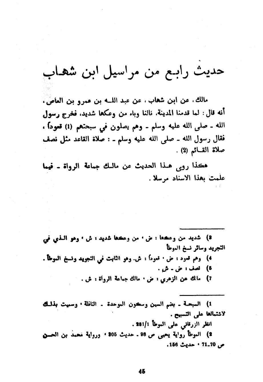 (حَدِيثٌ رَابِعٌ مِنْ مَرَاسِيلِ ابْنِ شِهَابٍ مَالِكٌ عَنِ ابْنِ شِهَابٍ عَنْ عَبْدِ اللَّهِ بْنِ عَمْرِو بْنِ الْعَاصِ)