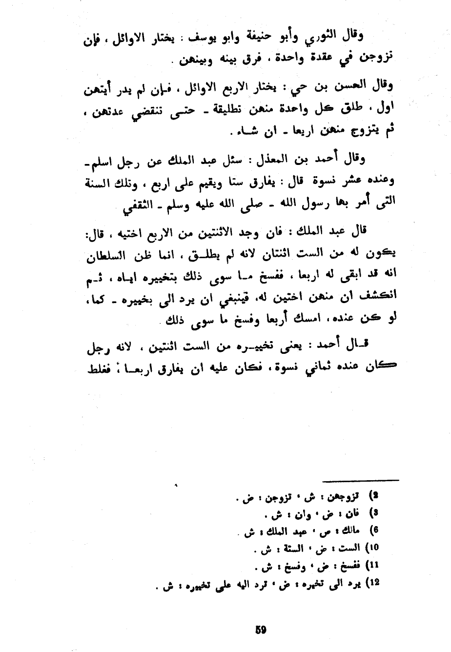 وَقَالَ الثَّوْرِيُّ وَأَبُو حَنِيفَةَ وَأَبُو يُوسُفَ يَخْتَارُ الْأَوَائِلَ فَإِنْ تَزَوَّجْنَ فِي عُقْدَةٍ وَاحِدَةٍ فُرِّقَ بَيْنَهُ وَبَيْنَهُنَّ وَقَالَ الْحَسَنُ بْنُ حَيٍّ يَخْتَارُ الْأَرْبَعَ الْأَوَائِلَ فَإِنْ لَمْ يَدْرِ أَيَّتَهُنَّ أَوَّلَ طَلَّقَ كُلَّ وَاحِدَةٍ مِنْهُنَّ تَطْلِيقَةً حَتَّى تَنْقَضِيَ عِدَّتُهُنَّ ثُمَّ يَتَزَوَّجُ مِنْهُنَّ أَرْبَعًا إِنْ شَاءَ وَقَالَ أَحْمَدُ بْنُ الْمُعَذَّلِ سُئِلَ عَبْدُ الْمَلِكِ عَنْ رَجُلٍ أَسْلَمَ وَعِنْدَهُ عَشْرُ نِسْوَةٍ قَالَ يُفَارِقُ سِتًّا وَيُقِيمُ عَلَى أَرْبَعٍ وَتِلْكَ السُّنَّةُ الَّتِي أَمَرَ بِهَا رَسُولُ اللَّهِ صَلَّى اللَّهُ عَلَيْهِ وَسَلَّمَ الثَّقَفِيَّ قَالَ عَبْدُ الْمَلِكِ فَإِنْ وَجَدَ الِاثْنَتَيْنِ مِنَ الْأَرْبَعِ أُخْتَيْهِ قَالَ يَكُونُ لَهُ مِنَ السِّتِّ اثْنَتَانِ لِأَنَّهُ لَمْ يُطَلِّقْ إِنَّمَا ظَنَّ السُّلْطَانُ أَنَّهُ قَدْ أَبْقَى لَهُ أَرْبَعًا فَفَسَخَ مَا سِوَى ذَلِكَ بِتَخْيِيرِهِ إِيَّاهُ ثُمَّ انْكَشَفَ أَنَّ مِنْهُنَّ أُخْتَيْنِ لَهُ فَيَنْبَغِي أن يرد إلي بخييره كَمَا لَوْ كُنَّ عِنْدَهُ أَمْسَكَ أَرْبَعًا وَفَسَخَ مَا سِوَى ذَلِكَ قَالَ أَحْمَدُ يَعْنِي تَخْيِيرَهُ مِنَ السِّتِّ اثْنَتَيْنِ لِأَنَّهُ رَجُلٌ كَانَ عِنْدَهُ ثَمَانِي نِسْوَةٍ فَكَانَ عَلَيْهِ أَنْ يُفَارِقَ أَرْبَعًا فغلط