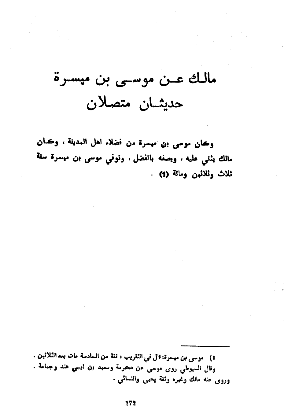 حَدِيثَانِ مُتَّصِلَانِ وَكَانَ مُوسَى بْنُ مَيْسَرَةَ مِنْ فُضَلَاءِ أَهْلِ الْمَدِينَةِ وَكَانَ مَالِكٌ يُثْنِي عَلَيْهِ وَيَصِفُهُ بِالْفَضْلِ وَتُوُفِّيَ مُوسَى بْنُ مَيْسَرَةَ سَنَةَ ثَلَاثٍ وَثَلَاثِينَ ومائة