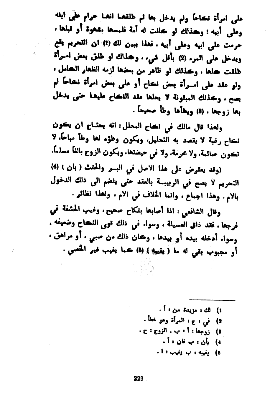 عَلَى امْرَأَةٍ نِكَاحًا وَلَمْ يَدْخُلْ بِهَا ثُمَّ طَلَّقَهَا أَنَّهَا حَرَامٌ عَلَى ابْنِهِ وَعَلَى أَبِيهِ وَكَذَلِكَ لَوْ كَانَتْ لَهُ أَمَةٌ فَلَمَسَهَا بِشَهْوَةٍ أَوْ قَبَّلَهَا حَرُمَتْ عَلَى ابْنِهِ وَعَلَى أَبِيهِ فهذا يبين لك أن التحريم يقع ويدخل عَلَى الْمَرْءِ بِأَقَلِّ شَيْءٍ وَكَذَلِكَ لَوْ طَلَّقَ بَعْضَ امْرَأَةٍ طُلِّقَتْ كُلُّهَا وَكَذَلِكَ لَوْ ظَاهَرَ مِنْ بَعْضِهَا لَزِمَهُ الظِّهَارُ الْكَامِلُ وَلَوْ عَقَدَ عَلَى امْرَأَةٍ بَعْضَ نِكَاحٍ أَوْ عَلَى بَعْضِ امْرَأَةٍ نِكَاحًا لَمْ يَصِحَّ وَكَذَلِكَ الْمَبْتُوتَةُ لَا يُحِلُّهَا عَقْدُ النِّكَاحِ عَلَيْهَا حَتَّى يَدْخُلَ بِهَا زَوْجُهَا وَيَطَأَهَا وَطْأً صَحِيحًا وَلِهَذَا قَالَ مَالِكٌ فِي نِكَاحِ الْمُحَلِّلِ إِنَّهُ يَحْتَاجُ أَنْ يَكُونَ نِكَاحَ رَغْبَةٍ لَا يُقْصَدُ بِهِ التَّحْلِيلُ وَيَكُونُ وَطْؤُهُ لَهَا وَطْأً مُبَاحًا لَا تَكُونُ صَائِمَةً ولا محرمة وَلَا فِي حَيْضَتِهَا وَيَكُونُ الزَّوْجُ بَالِغًا مُسْلِمًا (وَقَدْ يُعْتَرَضُ عَلَى هَذَا الْأَصْلِ فِي الْبِرِّ وَالْحِنْثِ (بِأَنَّ) التَّحْرِيمَ لَا يَصِحُّ فِي الرَّبِيبَةِ بِالْعَقْدِ حَتَّى يَنْضَمَّ إِلَى ذَلِكَ الدُّخُولُ بِالْأُمِّ وَهَذَا إِجْمَاعٌ وَإِنَّمَا الْخِلَافُ فِي الْأُمِّ وَلِهَذَا نَظَائِرٌ وَقَالَ الشَّافِعِيُّ إِذَا أَصَابَهَا بِنِكَاحٍ صَحِيحٍ وَغَيَّبَ الْحَشَفَةَ فِي فَرْجِهَا فَقَدْ ذَاقَ الْعُسَيْلَةَ وَسَوَاءٌ فِي ذَلِكَ قَوِيُّ النِّكَاحِ وَضَعِيفُهُ وَسَوَاءٌ أَدْخَلَهُ بِيَدِهِ أَوْ بِيَدِهَا وَكَانَ ذَلِكَ مِنْ صَبِيٍّ أَوْ مُرَاهِقٍ أَوْ مَجْبُوبٍ بَقِيَ لَهُ ما (يغيبه) كما يغيب غير الخصي