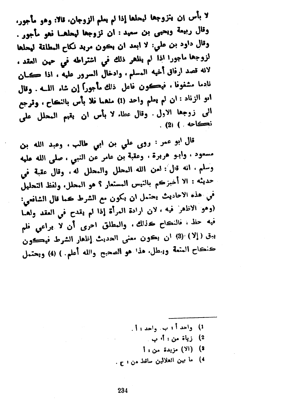 لَا بَأْسَ أَنْ يَتَزَوَّجَهَا لِيُحِلَّهَا إِذَا لَمْ يَعْلَمِ الزَّوْجَانِ قَالَا وَهُوَ مَأْجُورٌ وَقَالَ رَبِيعَةُ وَيَحْيَى بْنُ سَعِيدٍ إِنْ تَزَوَّجَهَا لِيُحِلَّهَا فَهُوَ مَأْجُورٌ وَقَالَ دَاوُدُ بْنُ عَلِيٍّ لَا أُبْعِدُ أَنْ يَكُونَ مُرِيدُ نِكَاحِ الْمُطَلَّقَةِ لِيُحِلَّهَا لِزَوْجِهَا مَأْجُورًا إِذَا لَمْ يُظْهِرْ ذَلِكَ فِي اشْتِرَاطِهِ فِي حِينِ الْعَقْدِ لِأَنَّهُ قَصَدَ إِرْفَاقَ أَخِيهِ الْمُسْلِمِ وَإِدْخَالِ السُّرُورِ عَلَيْهِ إِذَا كَانَ نَادِمًا مَشْغُوفًا فَيَكُونُ فَاعِلُ ذَلِكَ مَأْجُورًا إِنْ شَاءَ اللَّهُ وَقَالَ أَبُو الزِّنَادِ إِنْ لَمْ يَعْلَمْ وَاحِدٌ مِنْهُمَا فَلَا بَأْسَ بِالنِّكَاحِ وَتَرْجِعُ إِلَى زَوْجِهَا الْأَوَّلِ وَقَالَ عَطَاءٌ لَا بَأْسَ أَنْ يُقِيمَ الْمُحَلِّلُ عَلَى نِكَاحِهِ) قَالَ أَبُو عُمَرَ رَوَى عَلِيِّ بْنِ أَبِي طَالِبٍ وَعَبْدِ اللَّهِ بْنِ مَسْعُودٍ وَأَبُو هُرَيْرَةَ وَعُقْبَةُ بْنِ عَامِرٍ عَنِ النَّبِيِّ صَلَّى اللَّهُ عَلَيْهِ وَسَلَّمَ أَنَّهُ قَالَ لَعَنَ اللَّهُ الْمُحَلِّلَ وَالْمُحَلَّلَ لَهُ وَقَالَ عُقْبَةُ فِي حَدِيثِهِ أَلَا أُخْبِرُكُمْ بِالتَّيْسِ الْمُسْتَعَارِ هُوَ الْمُحَلِّلُ وَلَفْظُ التَّحْلِيلِ فِي هَذِهِ الْأَحَادِيثِ يُحْتَمَلُ أَنْ يَكُونَ مَعَ الشَّرْطِ كَمَا قَالَ الشَّافِعِيُّ (وَهُوَ الْأَظْهَرُ فِيهِ لِأَنَّ إِرَادَةَ الْمَرْأَةِ إِذَا لَمْ يَقْدَحْ فِي الْعَقْدِ وَلَهَا فِيهِ حَظٌّ فَالنِّكَاحُ كَذَلِكَ وَالْمُطَلِّقُ أَحْرَى أَنْ لَا يُرَاعِي فَلَمْ يَبْقَ (إِلَّا) أَنْ يَكُونَ مَعْنَى الْحَدِيثِ إِظْهَارُ الشَّرْطِ فَيَكُونُ كَنِكَاحِ الْمُتْعَةِ وَيُبْطَلُ هَذَا هُوَ الصَّحِيحُ وَاللَّهُ أَعْلَمُ) وَيُحْتَمَلُ