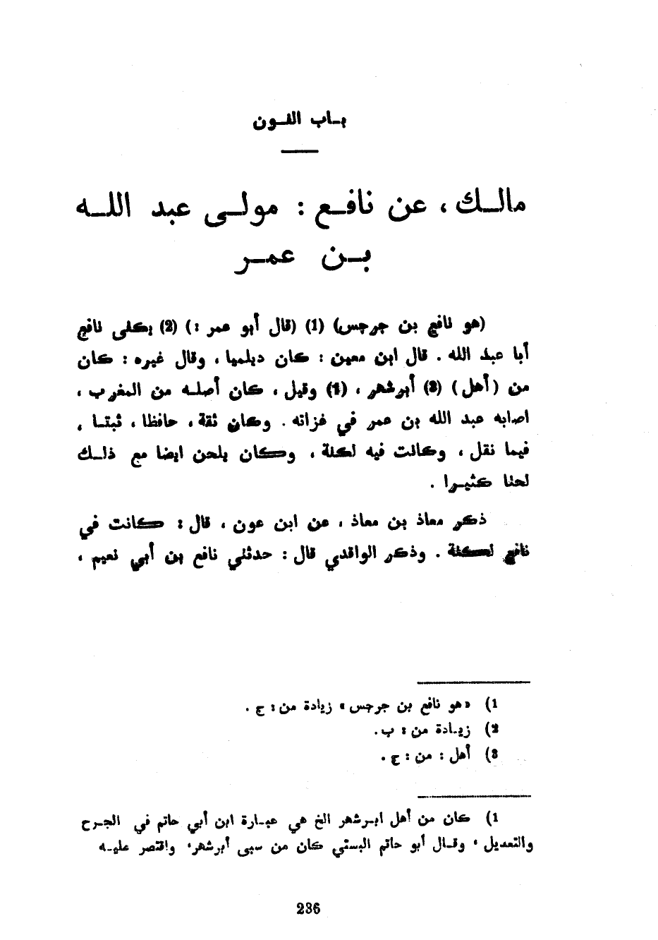 (مَالِكٌ عَنْ نَافِعٍ مَوْلَى عَبْدِ اللَّهِ بْنِ عُمَرَ)