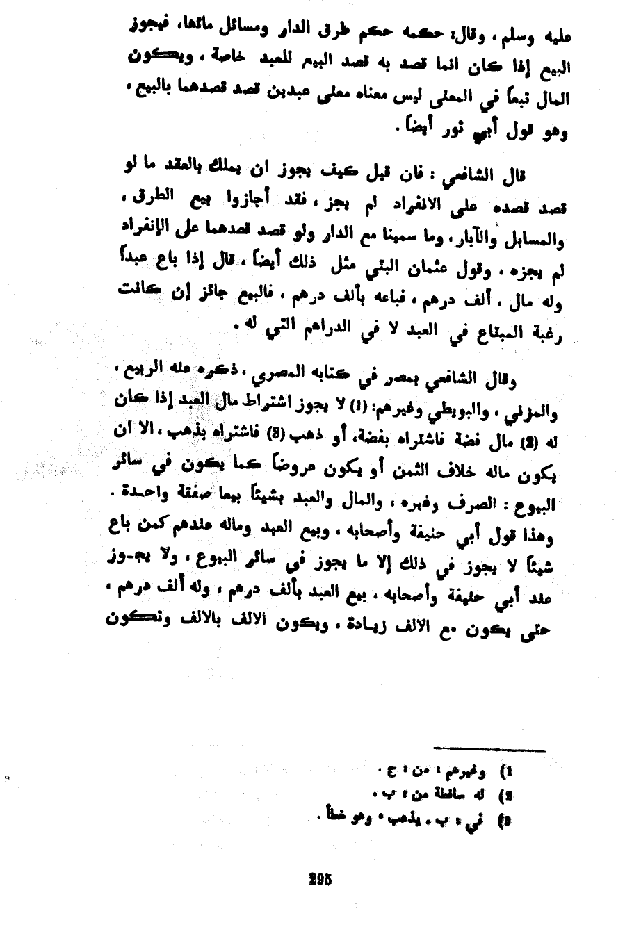 صَلَّى اللَّهُ عَلَيْهِ وَسَلَّمَ وَقَالَ حُكْمُهُ حُكْمُ طُرُقِ الدَّارِ وَمَسَائِلِ مَائِهَا فَيَجُوزُ الْبَيْعُ إِذَا كَانَ إِنَّمَا قُصِدَ بِهِ قَصْدُ الْبَيْعِ لِلْعَبْدِ خَاصَّةً وَيَكُونُ الْمَالُ تَبَعًا فِي الْمَعْنَى لَيْسَ مَعْنَاهُ مَعْنَى عَبْدَيْنِ قُصِدَ قَصْدُهُمَا بِالْبَيْعِ وَهُوَ قَوْلُ أَبِي ثَوْرٍ أَيْضًا قَالَ الشَّافِعِيُّ فَإِنْ قِيلَ كَيْفَ يَجُوزُ أَنْ يَمْلِكَ بِالْعَقْدِ مَا لو قصد قصده عَلَى الِانْفِرَادِ لَمْ يَجُزْ فَقَدْ أَجَازُوا بَيْعَ الطُّرُقِ وَالْمَسَابِلِ وَالْآبَارِ وَمَا سَمَّيْنَا مَعَ الدَّارِ ولو قصد قصدهما على الإنفراد لم يجزه وَقَوْلُ عُثْمَانَ الْبَتِّيِّ مِثْلُ ذَلِكَ أَيْضًا قَالَ إِذَا بَاعَ عَبْدًا وَلَهُ مَالٌ أَلْفُ دِرْهَمٍ فَبَاعَهُ بِأَلْفِ دِرْهَمٍ فَالْبَيْعُ جَائِزٌ إِنْ كَانَتْ رَغْبَةُ الْمُبْتَاعِ فِي الْعَبْدِ لَا فِي الدَّرَاهِمِ التي له وقال الشافعي بمصر فِي كِتَابِهِ الْمِصْرِيِّ ذَكَرَهُ عَنْهُ الرَّبِيعُ وَالْمُزَنِيُّ وَالْبُوَيْطِيُّ وَغَيْرُهُمْ لَا يَجُوزُ اشْتِرَاطُ مَالِ الْعَبْدِ إِذَا كَانَ لَهُ مَالٌ فِضَّةٌ فَاشْتَرَاهُ بِفِضَّةٍ أَوْ ذَهَبٍ فَاشْتَرَاهُ بِذَهَبٍ إِلَّا أَنْ يَكُونَ مَالُهُ خِلَافَ الثَّمَنِ أَوْ يَكُونَ عَرُوضًا كَمَا يَكُونُ فِي سَائِرِ الْبُيُوعِ الصَّرْفِ وَغَيْرِهِ وَالْمَالِ والعبد بشيئا بِيعَا صَفْقَةً وَاحِدَةً وَهَذَا قَوْلُ أَبِي حَنِيفَةَ وَأَصْحَابِهِ وَبَيْعُ الْعَبْدِ وَمَالِهِ كَمَنْ بَاعَ شَيْئًا لَا يَجُوزُ فِي ذَلِكَ إِلَّا مَا يَجُوزُ فِي سَائِرِ الْبُيُوعِ وَلَا يَجُوزُ عِنْدَ أَبِي حَنِيفَةَ وَأَصْحَابِهِ بِيعَ الْعَبْدُ بِأَلْفِ دِرْهَمٍ وَلَهُ أَلْفُ دِرْهَمٍ حَتَّى يَكُونَ مَعَ الْأَلْفِ زِيَادَةٌ وَيَكُونُ الْأَلْفُ بِالْأَلْفِ وَتَكُونُ