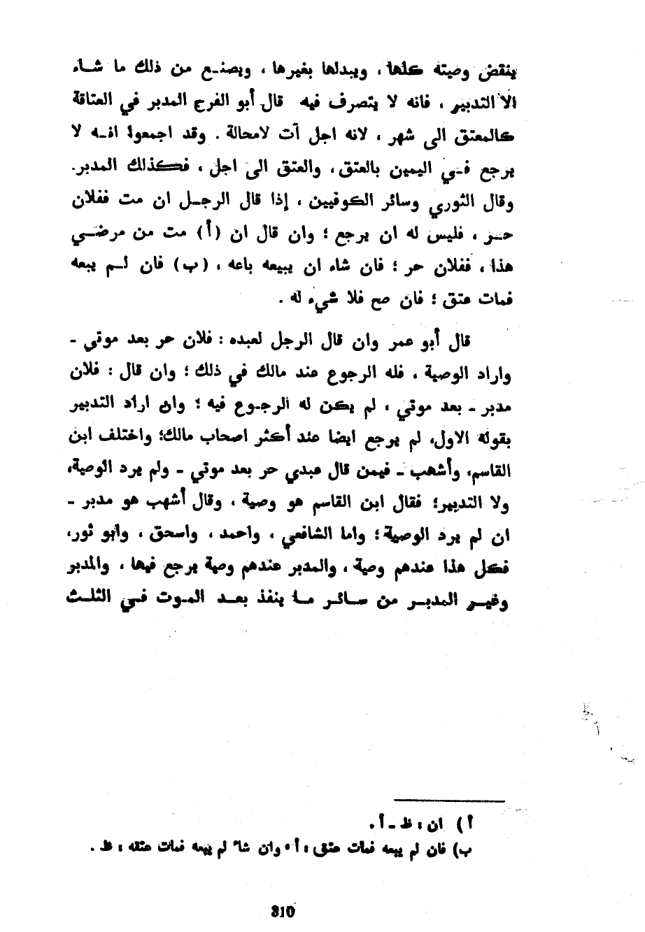 يَنْقُضَ وَصِيَّتَهُ كُلَّهَا وَيُبَدِّلَهَا بِغَيْرِهَا وَيَصْنَعَ مِنْ ذَلِكَ مَا شَاءَ إِلَّا التَّدْبِيرَ فَإِنَّهُ لَا يَتَصَرَّفُ فِيهِ قَالَ أَبُو الْفَرَجِ الْمُدَبَّرُ فِي الْعَتَاقَةِ كَالْمُعْتَقِ إِلَى شَهْرٍ لِأَنَّهُ أَجْلٌ آتٍ لَا مَحَالَةَ وَقَدْ أَجْمَعُوا أَنَّهُ لَا يَرْجِعُ فِي الْيَمِينِ بِالْعِتْقِ وَالْعِتْقُ إِلَى أَجَلٍ فَكَذَلِكَ الْمُدَبَّرُ وَقَالَ الثَّوْرِيُّ وَسَائِرُ الْكُوفِيِّينَ إِذَا قَالَ الرَّجُلَ إِنْ مُتُّ فَفُلَانٌ حُرٌّ فَلَيْسَ لَهُ أَنْ يَرْجِعَ وَإِنْ قَالَ إِنْ مُتُّ مِنْ مَرَضِي هَذَا فَفُلَانٌ حُرٌّ فَإِنْ شَاءَ أَنْ يَبِيعَهُ بَاعَهُ فَإِنْ لَمْ يَبِعْهُ فَمَاتَ عَتَقَ فَإِنْ صَحَّ فَلَا شَيْءَ لَهُ قَالَ أَبُو عُمَرَ وَإِنْ قَالَ الرَّجُلُ لِعَبْدِهِ فُلَانٌ حُرٌّ بَعْدَ مَوْتِي وَأَرَادَ الْوَصِيَّةَ فَلَهُ الرُّجُوعُ عِنْدَ مَالِكٍ فِي ذَلِكَ وَإِنْ قَالَ فُلَانٌ مُدَبَّرٌ بَعْدَ مَوْتِي لَمْ يَكُنْ لَهُ الرُّجُوعُ فِيهِ وَإِنْ أَرَادَ التَّدْبِيرَ بِقَوْلِهِ الْأَوَّلِ لَمْ يَرْجِعْ أَيْضًا عِنْدَ أَكْثَرِ أَصْحَابِ مَالِكٍ وَاخْتَلَفَ ابْنُ الْقَاسِمِ وَأَشْهَبُ فِيمَنْ قَالَ عَبْدِي حُرٌّ بَعْدَ مَوْتِي وَلَمْ يُرِدِ الْوَصِيَّةَ وَلَا التَّدْبِيرَ فَقَالَ ابْنُ الْقَاسِمِ هُوَ وَصِيَّةٌ وَقَالَ أَشْهَبُ هُوَ مُدَبَّرٌ إِنْ لَمْ يُرِدِ الْوَصِيَّةَ وَأَمَّا الشَّافِعِيُّ وأحمد وإسحق وَأَبُو ثَوْرٍ فَكُلُّ هَذَا عِنْدَهُمْ وَصِيَّةٌ وَالْمُدَبَّرُ عِنْدَهُمْ وَصِيَّةٌ يَرْجِعُ فِيهَا وَالْمُدَبَّرُ وَغَيْرُ الْمُدَبَّرِ مِنْ سَائِرِ مَا يَنْفُذُ بَعْدَ الْمَوْتِ فِي الثلث
