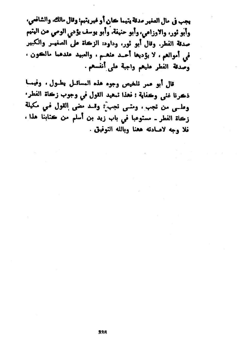 يَجِبُ فِي مَالِ الصَّغِيرِ صَدَقَةٌ يَتِيمًا كَانَ أَوْ غَيْرَ يَتِيمٍ وَقَالَ مَالِكٌ وَالشَّافِعِيُّ وَأَبُو ثَوْرٍ وَالْأَوْزَاعِيُّ وَأَبُو حَنِيفَةَ وَأَبُو يُوسُفَ يُؤَدِّي الْوَصِيُّ عَنِ الْيَتِيمِ صَدَقَةَ الْفِطْرِ وَقَالَ أَبُو ثَوْرٍ وَدَاوُدُ الزَّكَاةُ عَلَى الصَّغِيرِ وَالْكَبِيرِ فِي أَمْوَالِهِمْ لَا يُؤَدِّيهَا أَحَدٌ عَنْهُمْ وَالْعَبِيدُ عِنْدَهُمَا مَالِكُونَ وَصَدَقَةُ الْفِطْرِ عَلَيْهِمْ وَاجِبَةٌ عَلَى أَنْفُسِهِمْ قَالَ أَبُو عُمَرَ تَلْخِيصُ وُجُوهِ هَذِهِ الْمَسَائِلِ يَطُولُ وَفِيمَا ذَكَرْنَا غِنًى وَكِفَايَةٌ فَهَذَا تَمْهِيدُ الْقَوْلِ فِي وُجُوبِ زَكَاةِ الْفِطْرِ وَعَلَى مَنْ تَجِبُ وَمَتَى تَجِبُ وَقَدْ مَضَى الْقَوْلُ فِي مِكْيَلَةِ زَكَاةِ الْفِطْرِ مُسْتَوْعَبًا فِي بَابِ زَيْدِ بْنِ أَسْلَمَ مِنْ كِتَابِنَا هَذَا فَلَا وَجْهَ لإعادته ههنا وبالله التوفيق