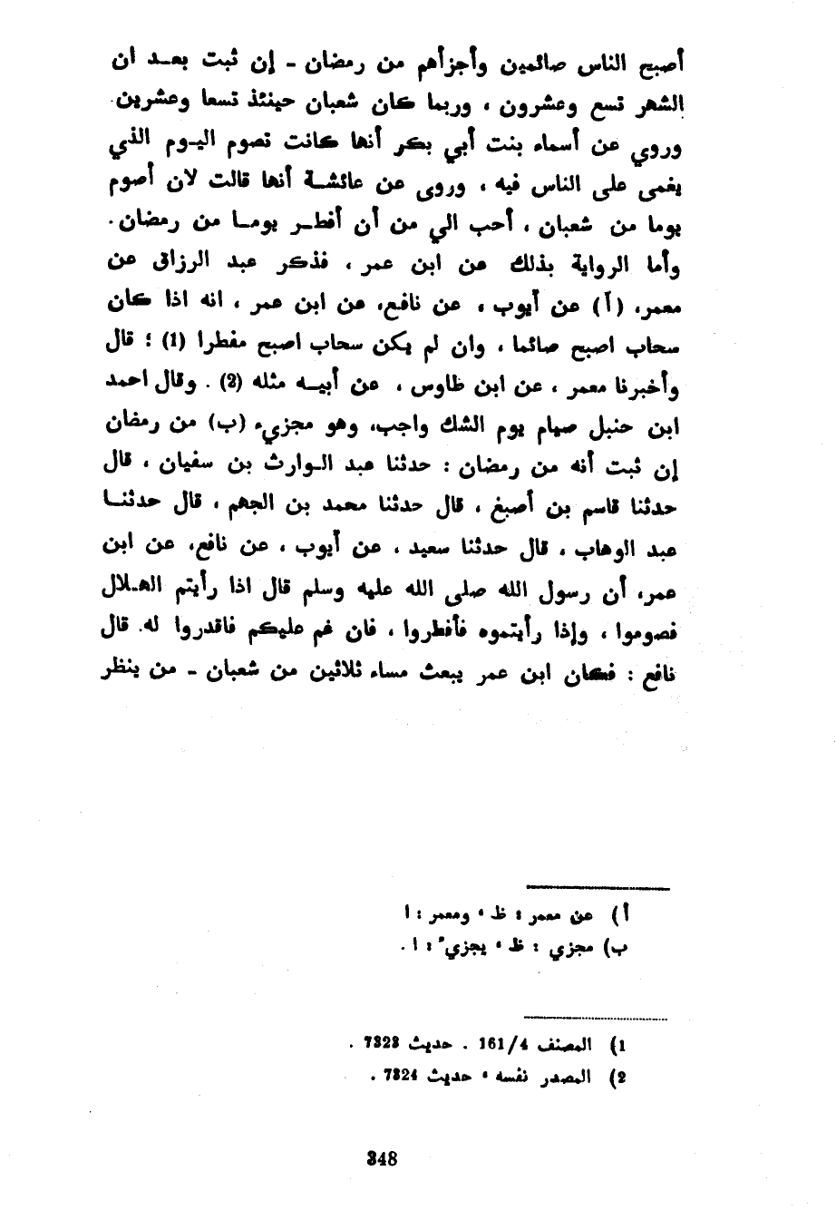 أَصْبَحَ النَّاسُ صَائِمِينَ وَأَجْزَأَهُمْ مِنْ رَمَضَانَ إِنْ ثَبَتَ بَعْدُ أَنَّ الشَّهْرَ تِسْعٌ وَعِشْرُونَ وَرُبَّمَا كَانَ شَعْبَانُ حِينَئِذٍ تِسْعًا وَعِشْرِينَ وَرُوِيَ عَنْ أَسْمَاءَ بِنْتِ أَبِي بَكْرٍ أَنَّهَا كَانَتْ تَصُومُ الْيَوْمَ الَّذِي يُغْمَى عَلَى النَّاسِ فِيهِ وَرُوِيَ عَنْ عَائِشَةَ أَنَّهَا قَالَتْ لَأَنْ أَصُومَ يَوْمًا مِنْ شَعْبَانَ أَحَبُّ إِلَيَّ مِنْ أَنْ أُفْطِرَ يَوْمًا مِنْ رَمَضَانَ وَأَمَّا الرِّوَايَةُ بِذَلِكَ عَنِ ابْنِ عُمَرَ فَذَكَرَ عَبْدُ الرَّزَّاقِ عَنْ مَعْمَرٍ عَنْ أَيُّوبَ عَنْ نَافِعٍ عَنِ ابْنِ عُمَرَ أَنَّهُ إِذَا كَانَ سَحَابٌ أَصْبَحَ صَائِمًا وَإِنْ لَمْ يَكُنْ سَحَابٌ أَصْبَحَ مُفْطِرًا قَالَ وَأَخْبَرَنَا مَعْمَرٍ عَنِ ابْنِ طَاوُسٍ عَنْ أَبِيهِ مِثْلَهُ وَقَالَ أَحْمَدُ بْنُ حَنْبَلٍ صِيَامُ يَوْمِ الشَّكِّ وَاجِبٌ وَهُوَ مُجْزِئٌ مِنْ رَمَضَانَ إِنْ ثَبَتَ أَنَّهُ مِنْ رَمَضَانَ حَدَّثَنَا عَبْدُ الْوَارِثِ بْنُ سُفْيَانَ قَالَ حَدَّثَنَا قَاسِمُ بْنُ أَصْبَغَ قَالَ حَدَّثَنَا مُحَمَّدُ بْنُ الْجَهْمِ قَالَ حَدَّثَنَا عَبْدُ الْوَهَّابِ قَالَ حَدَّثَنَا سَعِيدٌ عَنْ أَيُّوبَ عَنْ نَافِعٍ عَنِ ابْنِ عُمَرَ أن رسول الله صَلَّى اللَّهُ عَلَيْهِ وَسَلَّمَ قَالَ إِذَا رَأَيْتُمُ الْهِلَالَ فَصُومُوا وَإِذَا رَأَيْتُمُوهُ فَأَفْطِرُوا فَإِنْ غُمَّ عَلَيْكُمْ فَاقْدِرُوا لَهُ قَالَ نَافِعٌ فَكَانَ ابْنُ عُمَرَ يَبْعَثُ مَسَاءَ ثَلَاثِينَ مِنْ شَعْبَانَ مَنْ ينظر
