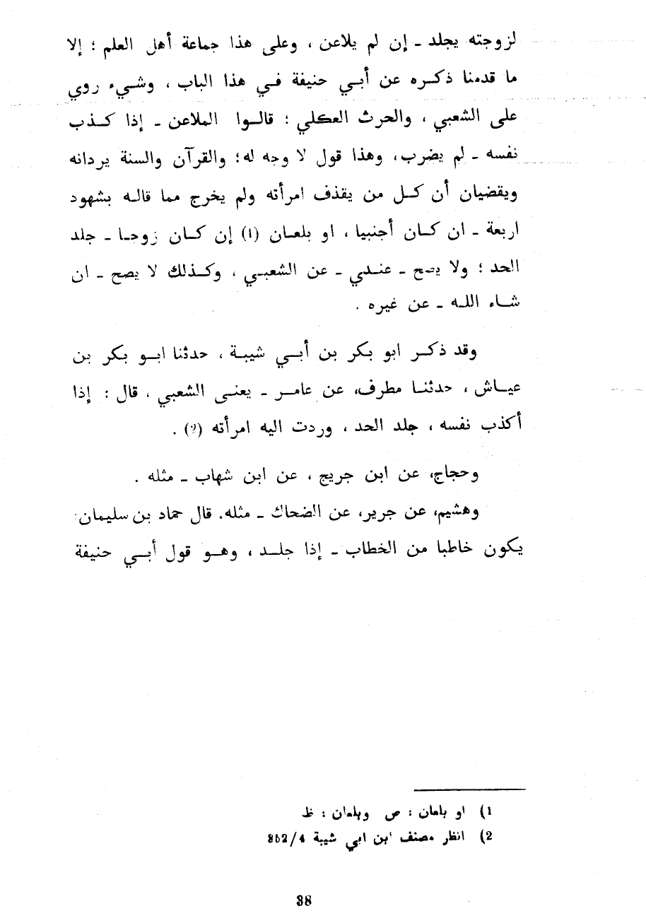 لِزَوْجَتِهِ يُجْلَدُ إِنْ لَمْ يُلَاعِنْ وَعَلَى هَذَا جَمَاعَةُ أَهْلِ الْعِلْمِ إِلَّا مَا قَدَّمْنَا ذِكْرَهُ عن أبي حنيفة في هذا الباب وشئ روي على الشعبي والحرث الْعُكْلِيِّ قَالُوا الْمُلَاعِنُ إِذَا كَذَّبَ نَفْسَهُ لَمْ يُضْرَبْ وَهَذَا قَوْلٌ لَا وَجْهَ لَهُ وَالْقُرْآنُ وَالسُّنَّةُ يَرُدَّانِهِ وَيَقْضِيَانِ أَنَّ كُلَّ مَنْ يَقْذِفُ امْرَأَتَهُ وَلَمْ يَخْرُجْ مِمَّا قَالَهُ بِشُهُودٍ أَرْبَعَةٍ إِنْ كَانَ أَجْنَبِيًّا أَوْ بِلِعَانٍ إِنْ كَانَ زَوْجًا جُلِدَ الْحَدَّ وَلَا يَصِحُّ عِنْدِي عَنِ الشَّعْبِيِّ وَكَذَلِكَ لَا يَصِحُّ إِنْ شَاءَ اللَّهُ عَنْ غَيْرِهِ وَقَدْ ذَكَرَ أَبُو بَكْرِ بْنُ أَبِي شَيْبَةَ حَدَّثَنَا أَبُو بَكْرِ بْنُ عَيَّاشٍ حَدَّثَنَا مُطَرِّفٌ عَنْ عَامِرٍ يَعْنِي الشَّعْبِيَّ قَالَ إِذَا أَكْذَبَ نَفْسَهُ جُلِدَ الْحَدَّ وَرُدَّتْ إِلَيْهِ امْرَأَتُهُ وَحَجَّاجٌ عَنِ ابْنِ جُرَيْجٍ عَنِ ابْنِ شِهَابٍ مِثْلَهُ وَهُشَيْمٌ عَنْ جَرِيرٍ عَنِ الضَّحَّاكِ مِثْلَهُ قَالَ حَمَّادُ بْنُ سُلَيْمَانَ يَكُونُ خَاطِبًا مِنَ الْخُطَّابِ إِذَا جُلِدَ وَهُوَ قَوْلُ أَبِي حنيفة