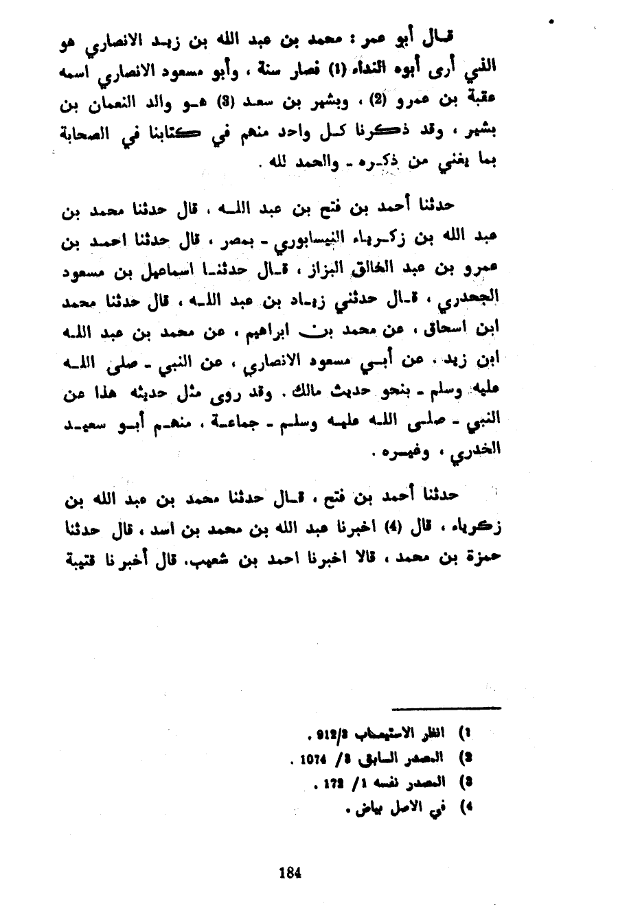 قَالَ أَبُو عُمَرَ مُحَمَّدُ بْنُ عَبْدِ اللَّهِ بْنِ زَيْدٍ الْأَنْصَارِيُّ هُوَ الَّذِي أُرِيَ أَبُوهُ النِّدَاءَ فَصَارَ سُنَّةً وَأَبُو مَسْعُودٍ الْأَنْصَارِيُّ اسْمُهُ عُقْبَةُ بْنُ عَمْرٍو وَبَشِيرُ بْنُ سَعْدٍ هُوَ وَالِدُ النُّعْمَانِ بْنِ بَشِيرٍ وَقَدْ ذَكَرْنَا كُلَّ وَاحِدٍ مِنْهُمْ فِي كِتَابِنَا فِي الصَّحَابَةِ بِمَا يُغْنِي مِنْ ذِكْرِهِ وَالْحَمْدُ لِلَّهِ حَدَّثَنَا أَحْمَدُ بْنُ فَتْحِ بْنِ عَبْدِ اللَّهِ قَالَ حَدَّثَنَا مُحَمَّدُ بْنُ عَبْدِ اللَّهِ بْنِ زَكَرِيَّاءَ النَّيْسَابُورِيُّ بمصر قَالَ حَدَّثَنَا أَحْمَدُ بْنُ عَمْرِو بْنِ عَبْدِ الْخَالِقِ الْبَزَّازُ قَالَ حَدَّثَنَا إِسْمَاعِيلُ بْنُ مَسْعُودٍ الْجَحْدَرَيُّ قَالَ حَدَّثَنِي زِيَادُ بْنُ عَبْدِ اللَّهِ قَالَ حَدَّثَنَا مُحَمَّدُ بْنُ إِسْحَاقَ عَنْ مُحَمَّدِ بْنِ إِبْرَاهِيمَ عَنْ مُحَمَّدِ بْنِ عَبْدِ اللَّهِ بْنِ زَيْدٍ عَنْ أَبِي مَسْعُودٍ الْأَنْصَارِيُّ عَنِ النَّبِيِّ صَلَّى اللَّهُ عَلَيْهِ وَسَلَّمَ بِنَحْوِ حَدِيثِ مَالِكٍ وَقَدْ رَوَى مِثْلَ حَدِيثِهِ هَذَا عَنِ النَّبِيِّ صَلَّى اللَّهُ عَلَيْهِ وَسَلَّمَ جَمَاعَةٌ مِنْهُمْ أَبُو سَعِيدٍ الْخُدْرِيُّ وَغَيْرُهُ حَدَّثَنَا أَحْمَدُ بْنُ فَتْحٍ قَالَ حَدَّثَنَا مُحَمَّدُ بْنُ عَبْدِ اللَّهِ بْنِ زَكَرِيَّاءَ قَالَ أَخْبَرَنَا عَبْدُ اللَّهِ بْنُ مُحَمَّدِ بْنِ أَسَدٍ قَالَ حَدَّثَنَا حَمْزَةُ بْنُ مُحَمَّدٍ قَالَا أَخْبَرَنَا أَحْمَدُ بْنُ شُعَيْبٍ قَالَ أَخْبَرَنَا قُتَيْبَةُ