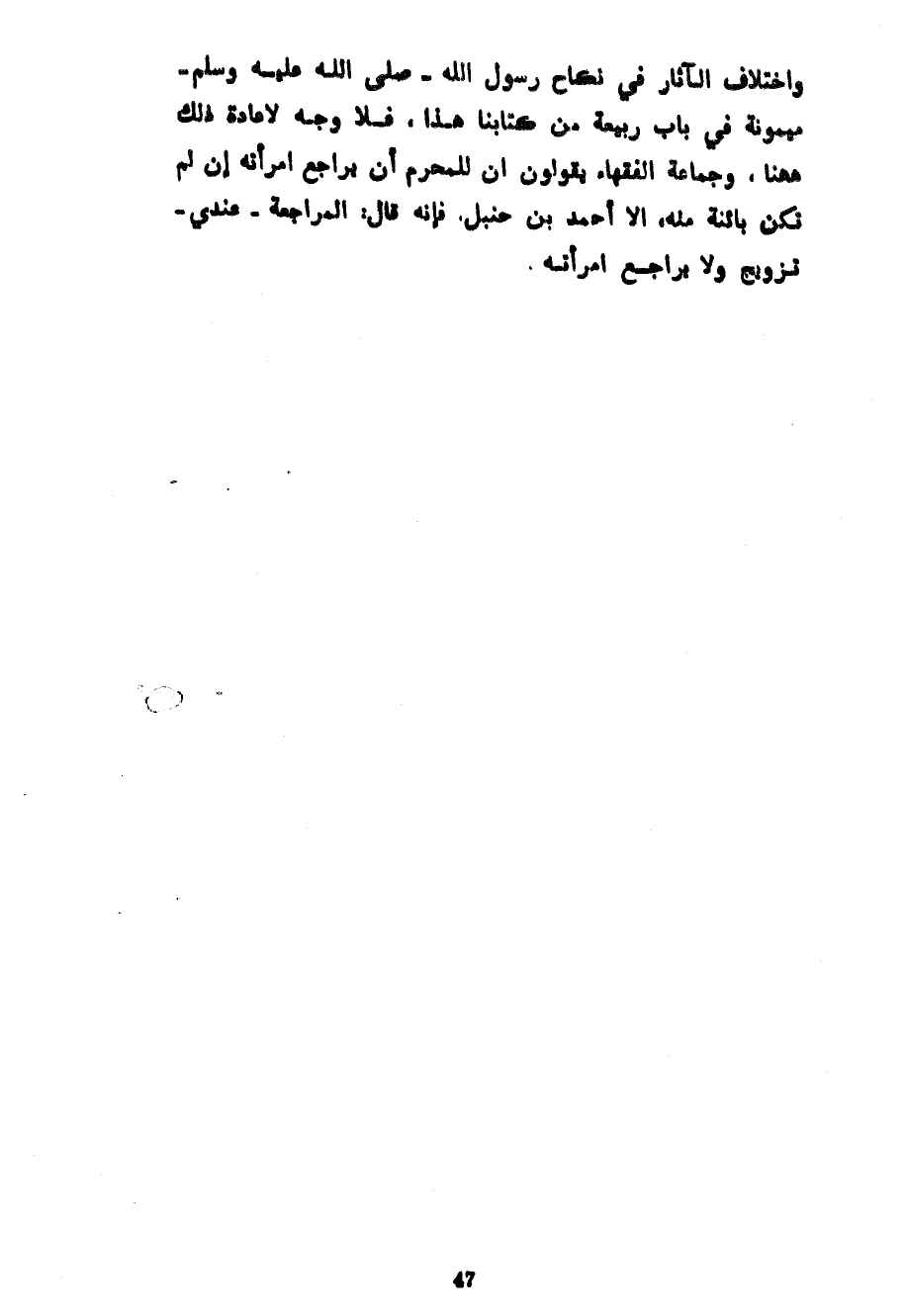 وَاخْتِلَافُ الْآثَارِ فِي نِكَاحِ رَسُولِ اللَّهِ صَلَّى اللَّهُ عَلَيْهِ وَسَلَّمَ مَيْمُونَةَ فِي بَابِ رَبِيعَةَ مِنْ كِتَابِنَا هَذَا فَلَا وَجْهَ لِإِعَادَةِ ذَلِكَ ههنا وَجَمَاعَةُ الْفُقَهَاءِ يَقُولُونَ إِنَّ لِلْمُحْرِمِ أَنْ يُرَاجِعَ امْرَأَتَهُ إِنْ لَمْ تَكُنْ بَائِنَةً مِنْهُ إِلَّا أَحْمَدَ بْنَ حَنْبَلٍ فَإِنَّهُ قَالَ الْمُرَاجَعَةُ عِنْدِي تزويج ولا يراجع امرأته