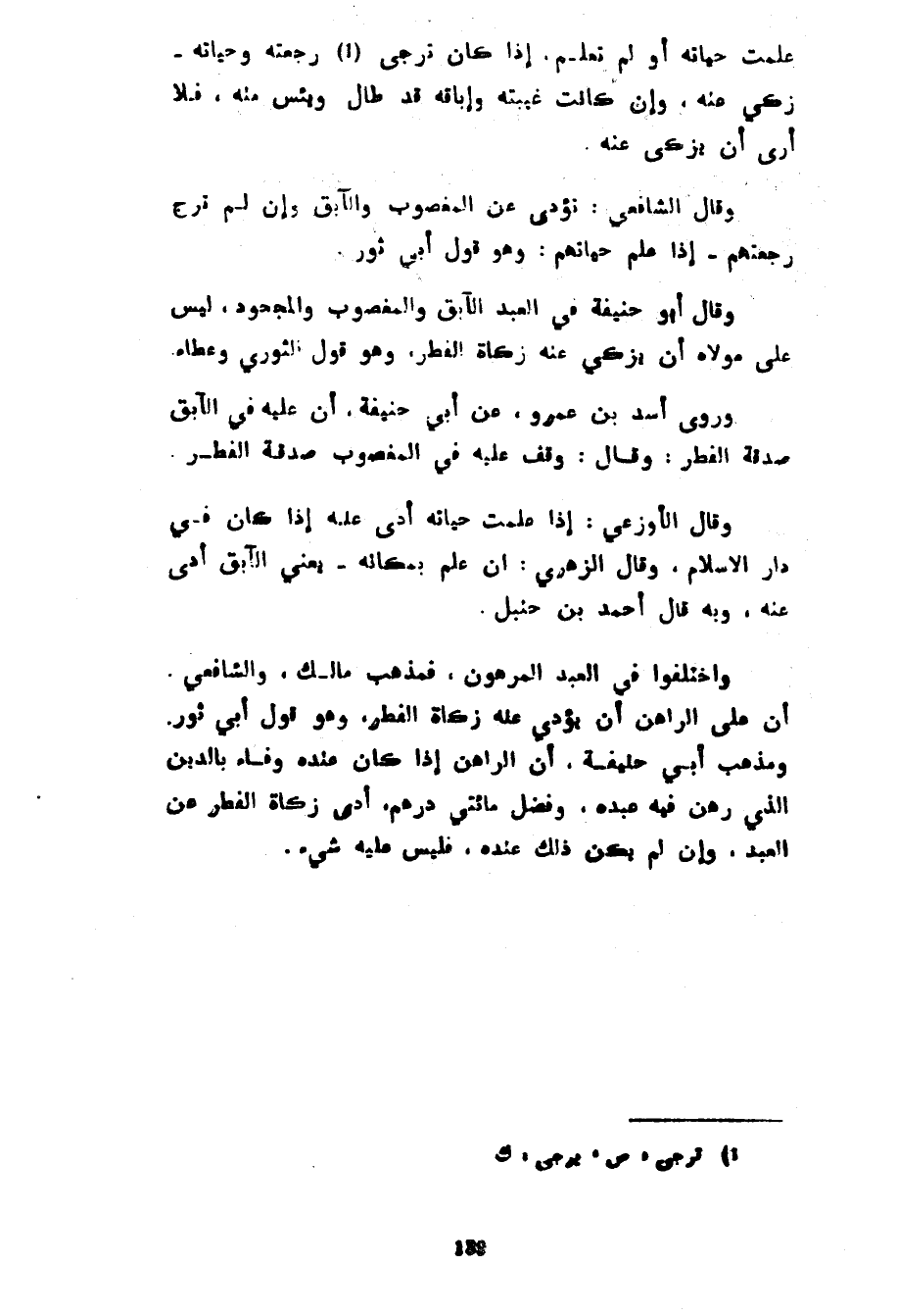 عُلِمَتْ حَيَاتُهُ أَوْ لَمْ تُعْلَمْ إِذَا كَانَ تُرْجَى رَجْعَتُهُ وَحَيَاتُهُ زَكَّى عَنْهُ وَإِنْ كَانَتْ غَيْبَتُهُ وَإِبَاقُهُ قَدْ طَالَ وَيُئِسَ مِنْهُ فَلَا أَرَى أَنْ يَزَّكَّى عَنْهُ وَقَالَ الشَّافِعِيُّ تُؤَدَّى عَنِ الْمَغْصُوبِ وَالْآبِقِ وَإِنْ لَمْ تَرُجْ رَجْعَتُهُمْ إِذَا عُلِمَ حَيَاتُهُمْ وَهُوَ قَوْلُ أَبِي ثَوْرٍ وَقَالَ أَبُو حَنِيفَةَ فِي الْعَبْدِ الْآبِقِ وَالْمَغْصُوبِ وَالْمَجْحُودِ لَيْسَ عَلَى مَوْلَاهُ أَنْ يُزَكِّيَ عَنْهُ زَكَاةَ الْفِطْرِ وَهُوَ قَوْلُ الثَّوْرِيِّ وَعَطَاءٍ وَرَوَى أَسَدُ بْنُ عَمْرٍو عَنْ أَبِي حَنِيفَةَ أَنَّ عَلَيْهِ فِي الْآبِقِ صَدَقَةَ الْفِطْرِ وَقَالَ وُقِفَ عَلَيْهِ فِي الْمَغْصُوبِ صَدَقَةُ الْفِطْرِ وَقَالَ الْأَوْزَاعِيُّ إِذَا عُلِمَتْ حَيَاتُهُ أَدَّى عَنْهُ إِذَا كَانَ فِي دَارِ الْإِسْلَامِ وَقَالَ الزُّهْرِيُّ إِنْ عَلِمَ بِمَكَانِهِ يَعْنِي الْآبِقَ أَدَّى عَنْهُ وَبِهِ قَالَ أَحْمَدُ بْنُ حَنْبَلٍ وَاخْتَلَفُوا فِي الْعَبْدِ الْمَرْهُونِ فَمَذْهَبُ مَالِكٍ وَالشَّافِعِيِّ أَنَّ عَلَى الرَّاهِنِ أَنْ يُؤَدِّيَ عَنْهُ زَكَاةَ الْفِطْرِ وَهُوَ قَوْلُ أَبِي ثَوْرٍ وَمَذْهَبُ أَبِي حَنِيفَةَ أَنَّ الرَّاهِنَ إِذَا كَانَ عِنْدَهُ وَفَاءٌ بِالدَّيْنِ الَّذِي رَهَنَ فِيهِ عَبَدَهُ وَفَضَلَ مِائَتَيْ دِرْهَمٍ أَدَّى زَكَاةَ الْفِطْرِ عَنِ الْعَبْدِ وَإِنْ لَمْ يَكُنْ ذَلِكَ عِنْدَهُ فَلَيْسَ عَلَيْهِ شَيْءٌ