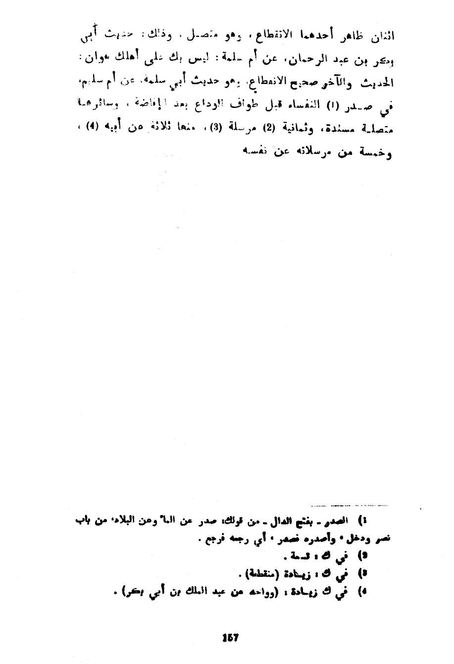 اثْنَانِ ظَاهِرُ أَحَدِهِمَا الِانْقِطَاعُ وَهُوَ مُتَّصِلٌ وَذَلِكَ حديث أبي بكر بن عبد الرحمان عَنْ أُمِّ سَلَمَةَ لَيْسَ بِكَ عَلَى أَهْلِكَ هَوَانٌ الْحَدِيثَ وَالْآخَرُ صَحِيحُ الِانْقِطَاعِ وَهُوَ حَدِيثُ أَبِي سَلَمَةَ عَنْ أُمِّ سُلَيْمٍ فِي صَدْرِ النُّفَسَاءِ قَبْلَ طَوَافِ الْوَدَاعِ بَعْدَ الْإِفَاضَةِ وَسَائِرُهَا مُتَّصِلَةٌ مُسْنَدَةٌ وَثَمَانِيَةٌ مُرْسَلَةٌ مِنْهَا ثَلَاثَةٌ عَنْ أبيه وخمسة من مرسلاته عن نفسه