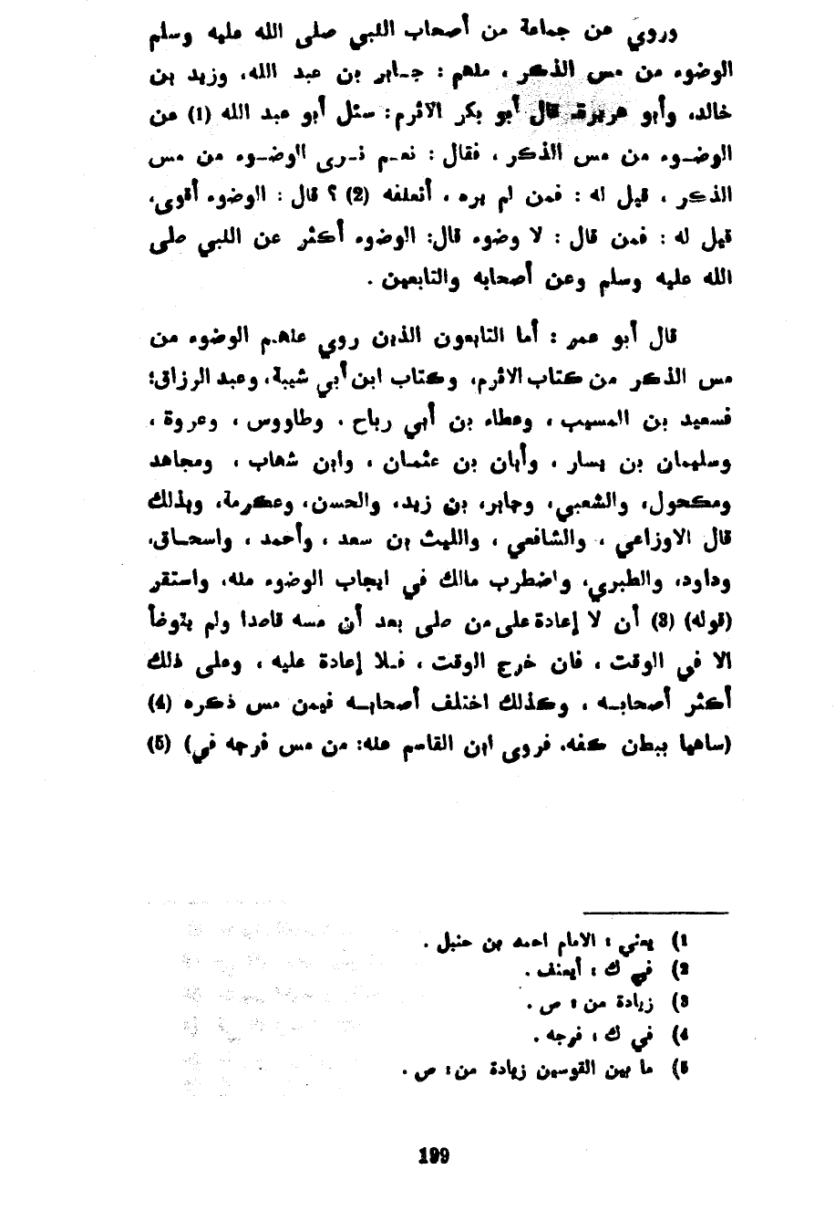 وَرُوِيَ عَنْ جَمَاعَةٍ مِنْ أَصْحَابِ النَّبِيِّ صَلَّى اللَّهُ عَلَيْهِ وَسَلَّمَ الْوُضُوءُ مِنْ مَسِّ الذَّكَرِ مِنْهُمْ جَابِرُ بْنُ عَبْدِ اللَّهِ وَزَيْدُ بْنُ خالد وأبوهريرة قَالَ أَبُو بَكْرٍ الْأَثْرَمُ سُئِلَ أَبُو عَبْدِ اللَّهِ عَنِ الْوُضُوءِ مِنْ مَسِّ الذَّكَرِ فَقَالَ نَعَمْ نَرَى الْوُضُوءَ مِنْ مَسِّ الذَّكَرِ قِيلَ لَهُ فَمَنْ لَمْ يَرَهُ أَتُعَنِّفُهُ قَالَ الْوُضُوءُ أَقْوَى قِيلَ لَهُ فَمَنْ قَالَ لَا وُضُوءَ قَالَ الْوُضُوءُ أَكْثَرُ عَنِ النَّبِيِّ صَلَّى اللَّهُ عَلَيْهِ وَسَلَّمَ وَعَنْ أَصْحَابِهِ وَالتَّابِعِينَ قَالَ أَبُو عُمَرَ أَمَّا التَّابِعُونَ الَّذِينَ رُوِيَ عَنْهُمُ الْوُضُوءُ مِنْ مَسِّ الذَّكَرِ مِنْ كِتَابِ الْأَثْرَمِ وَكِتَابِ ابْنِ أَبِي شَيْبَةَ وَعَبْدِ الرَّزَّاقِ فَسَعِيدُ بْنُ المسيب وعطاء بن أبي رباح وطاووس وَعُرْوَةُ وَسُلَيْمَانُ بْنُ يَسَارٍ وَأَبَانُ بْنُ عُثْمَانَ وَابْنُ شِهَابٍ وَمُجَاهِدٌ وَمَكْحُولٌ وَالشَّعْبِيُّ وَجَابِرُ بْنُ زَيْدٍ وَالْحَسَنُ وَعِكْرِمَةُ وَبِذَلِكَ قَالَ الْأَوْزَاعِيُّ وَالشَّافِعِيُّ وَاللَّيْثُ بْنُ سَعْدٍ وَأَحْمَدُ وَإِسْحَاقُ وَدَاوُدُ وَالطَّبَرِيُّ وَاضْطَرَبَ مَالِكٌ فِي إِيجَابِ الْوُضُوءِ مِنْهُ وَاسْتَقَرَّ (قَوْلُهُ) أَنْ لَا إِعَادَةَ عَلَى مَنْ صَلَّى بَعْدَ أَنْ مَسَّهُ قَاصِدًا وَلَمْ يَتَوَضَّأْ إِلَّا فِي الْوَقْتِ فَإِنْ خَرَجَ الْوَقْتُ فَلَا إِعَادَةَ عَلَيْهِ وَعَلَى ذَلِكَ أَكْثَرُ أَصْحَابِهِ وَكَذَلِكَ اخْتَلَفَ أَصْحَابُهُ فِيمَنْ مَسَّ ذَكَرَهُ (سَاهِيًا بِبَطْنِ كَفِّهِ فَرَوَى ابْنُ الْقَاسِمِ عَنْهُ مَنْ مَسَّ فَرْجَهُ في)