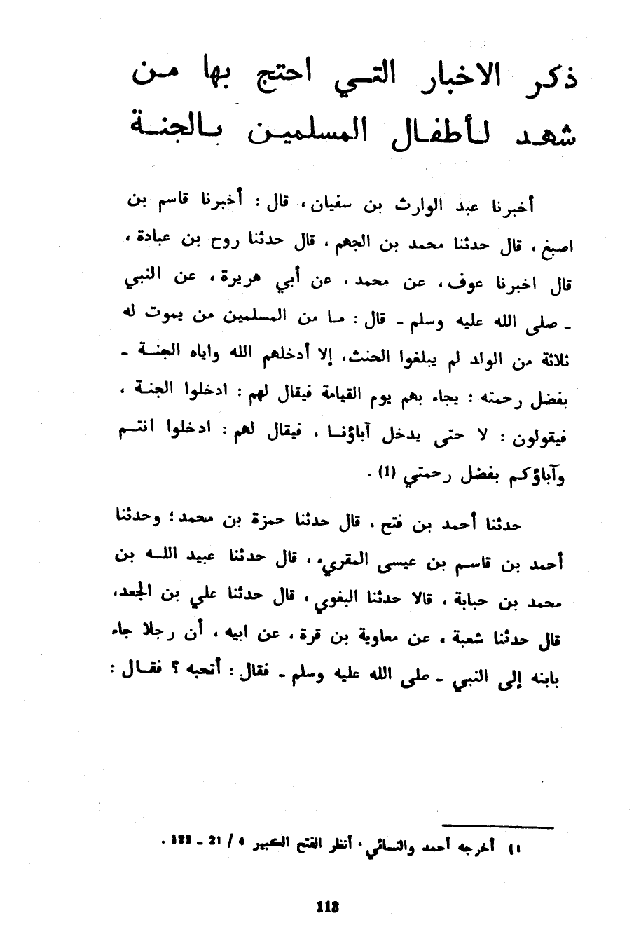 (ذكر الأخبار التي احتج بها من شهد لِأَطْفَالِ الْمُسْلِمِينَ بِالْجَنَّةِ)