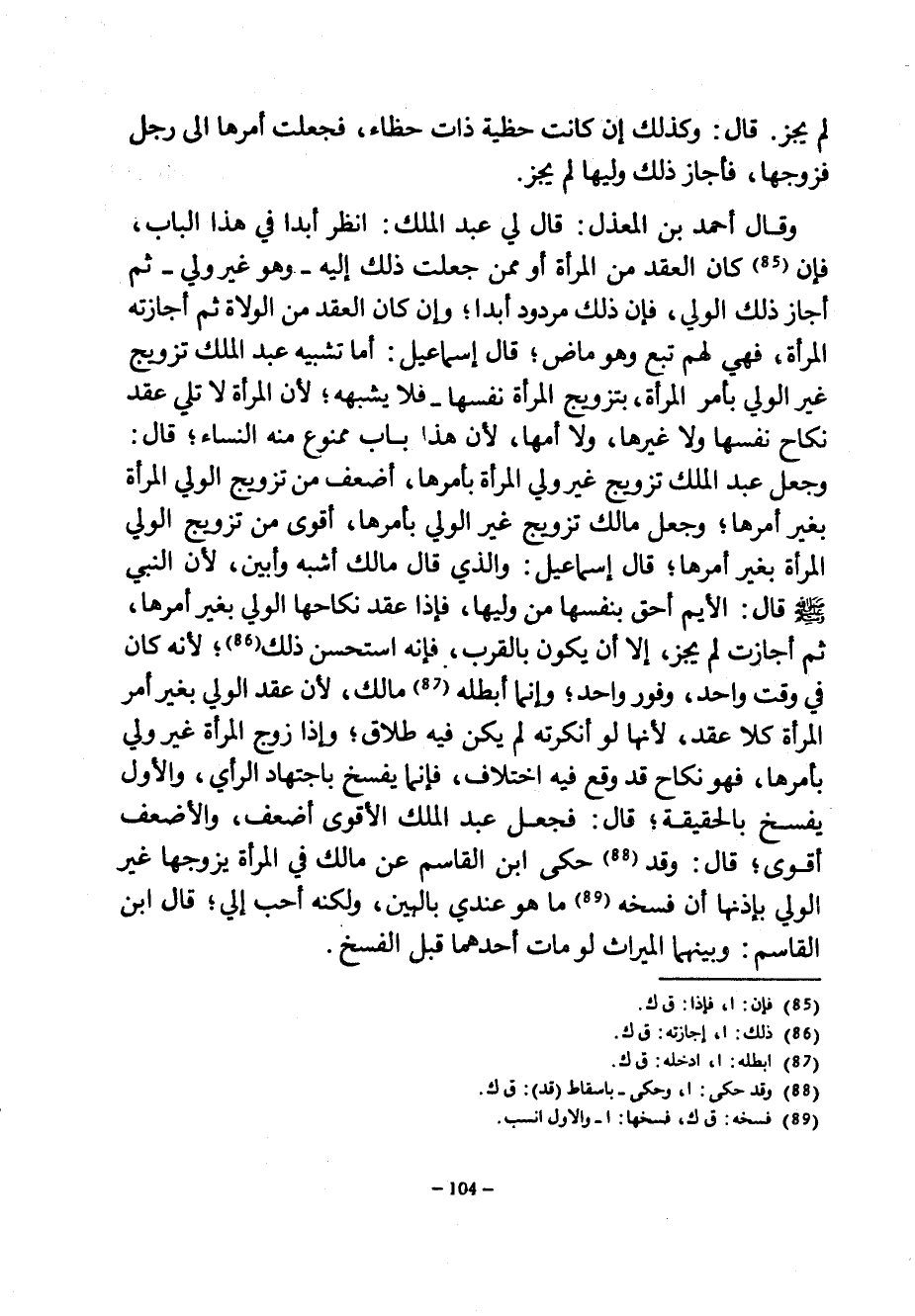لَمْ يَجُزْ قَالَ وَكَذَلِكَ إِنْ كَانَتْ حَظِيَّةً ذَاتَ حِظَاءٍ فَجَعَلَتْ أَمْرَهَا إِلَى رَجُلٍ فَزَوَّجَهَا فَأَجَازَ ذَلِكَ وَلِيُّهَا لَمْ يَجُزْ وَقَالَ أَحْمَدُ بْنُ الْمُعَذَّلِ قَالَ لِي عَبْدُ الْمَلِكِ انْظُرْ أَبَدًا فِي هَذَا الْبَابِ فَإِنْ كَانَ الْعَقْدُ مِنَ الْمَرْأَةِ أَوْ مِمَّنْ جَعَلَتْ ذَلِكَ إِلَيْهِ وهو غَيْرِ وَلِيٍّ ثُمَّ أَجَازَ ذَلِكَ الْوَلِيُّ فَإِنَّ ذَلِكَ مَرْدُودٌ أَبَدًا وَإِنْ كَانَ الْعَقْدُ مِنَ الْوُلَاةِ ثُمَّ أَجَازَتْهُ الْمَرْأَةُ فَهِيَ لَهُمْ تَبَعٌ وَهُوَ مَاضٍ قَالَ إِسْمَاعِيلُ أَمَّا تَشْبِيهُ عَبْدِ الْمَلِكِ تَزْوِيجَ غَيْرِ الْوَلِيِّ بِأَمْرِ الْمَرْأَةِ بِتَزْوِيجِ الْمَرْأَةِ نَفْسَهَا فَلَا يُشْبِهُهُ لِأَنَّ الْمَرْأَةَ لَا تَلِي عَقْدَ نِكَاحِ نَفْسِهَا وَلَا غَيْرِهَا وَلَا أُمِّهَا لِأَنَّ هَذَا بَابٌ مَمْنُوعٌ مِنْهُ النِّسَاءُ قَالَ وَجَعَلَ عَبْدُ الْمَلِكِ تَزْوِيجَ غَيْرِ وَلِيِّ الْمَرْأَةِ بِأَمْرِهَا أَضْعَفَ مِنْ تَزْوِيجِ الْوَلِيِّ الْمَرْأَةَ بغير أمرها وجعل مالك تزويج غير الولي بأمرها أقوى من تزويج الولي لامراة بِغَيْرِ أَمْرِهَا قَالَ إِسْمَاعِيلُ وَالَّذِي قَالَ مَالِكٌ أَشْبَهُ وَأَبْيَنُ لِأَنَّ النَّبِيَّ صَلَّى اللَّهُ عَلَيْهِ وَسَلَّمَ قَالَ الأيم أحق بنفسها من وليها فَإِذَا عَقَدَ نِكَاحَهَا الْوَلِيُّ بِغَيْرِ أَمْرِهَا ثُمَّ أَجَازَتْ لَمْ يَجُزْ إِلَّا أَنْ يَكُونَ بِالْقُرْبِ فَإِنَّهُ اسْتَحْسَنَ ذَلِكَ لِأَنَّهُ كَانَ فِي وَقْتٍ وَاحِدٍ وَفَوْرٍ وَاحِدٍ وَإِنَّمَا أَبْطَلَهُ مَالِكٌ لِأَنَّ عَقْدَ الْوَلِيِّ بِغَيْرِ أَمْرِ الْمَرْأَةِ كَلَا عَقْدٍ لِأَنَّهَا لَوْ أَنْكَرَتْهُ لَمْ يَكُنْ فِيهِ طَلَاقٌ وَإِذَا زَوَّجَ الْمَرْأَةَ غَيْرُ وَلِيٍّ بِأَمْرِهَا فَهُوَ نِكَاحٌ قَدْ وَقَعَ فِيهِ اخْتِلَافٌ فَإِنَّمَا يُفْسَخُ بِاجْتِهَادِ الرَّأْيِ وَالْأَوَّلُ يُفْسَخُ بِالْحَقِيقَةِ قَالَ فَجَعَلَ عَبْدُ الْمَلِكِ الْأَقْوَى أَضْعَفَ وَالْأَضْعَفَ أَقْوَى قَالَ وَقَدْ حَكَى ابْنُ الْقَاسِمِ عَنْ مَالِكٍ فِي الْمَرْأَةِ يُزَوِّجُهَا غَيْرُ الْوَلِيِّ بِإِذْنِهَا أَنَّ فَسْخَهُ مَا هُوَ عِنْدِي بِالْبَيِّنِ وَلَكِنَّهُ أَحَبُّ إِلَيَّ قَالَ ابْنُ الْقَاسِمِ وَبَيْنَهُمَا الْمِيرَاثُ لَوْ مَاتَ أَحَدُهُمَا قَبْلَ الْفَسْخِ