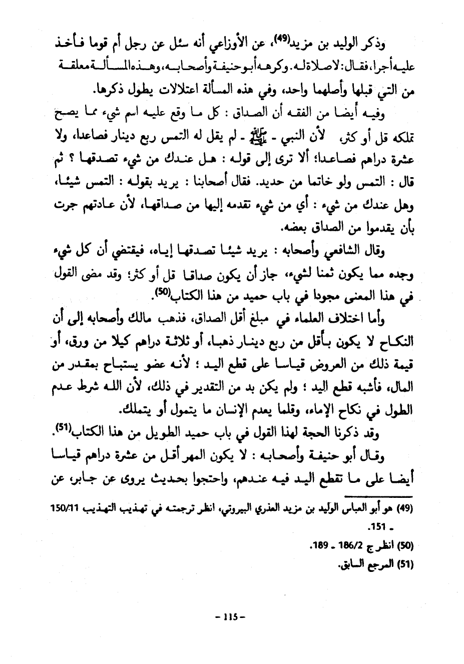 وَذَكَرَ الْوَلِيدُ بْنُ مَزِيدٍ عَنِ الْأَوْزَاعِيِّ أَنَّهُ سُئِلَ عَنْ رَجُلٍ أَمَّ قَوْمًا فَأَخَذَ عَلَيْهِ أَجْرًا فَقَالَ لَا صَلَاةَ لَهُ وَكَرِهَهُ أَبُو حَنِيفَةَ وَأَصْحَابُهُ وَهَذِهِ الْمَسْأَلَةُ مُعَلَّقَةٌ مِنَ الَّتِي قَبْلَهَا وَأَصْلُهُمَا وَاحِدٌ وَفِي هَذِهِ الْمَسْأَلَةِ اعْتِلَالَاتٌ يَطُولُ ذِكْرُهَا وَفِيهِ أَيْضًا مِنَ الْفِقْهِ أَنَّ الصَّدَاقَ كُلُّ مَا وَقَعَ عَلَيْهِ اسْمُ شَيْءٍ مِمَّا يَصِحُّ تَمَلُّكُهُ قَلَّ أَوْ كَثُرَ لِأَنَّ النَّبِيَّ صَلَّى اللَّهُ عَلَيْهِ وَسَلَّمَ لَمْ يَقُلْ لَهُ الْتَمِسْ رُبْعَ دِينَارٍ فَصَاعِدًا وَلَا عَشَرَةَ دَرَاهِمَ فَصَاعِدًا أَلَا تَرَى إِلَى قَوْلِهِ هَلْ عِنْدَكَ مِنْ شَيْءٍ تُصْدِقُهَا ثُمَّ قَالَ الْتَمِسْ وَلَوْ خَاتَمًا مِنْ حَدِيدٍ فَقَالَ أَصْحَابُنَا يُرِيدُ بِقَوْلِهِ الْتَمِسْ شَيْئًا وَهَلْ عِنْدَكَ مِنْ شَيْءٍ أَيْ مِنْ شَيْءٍ تُقَدِّمُهُ إِلَيْهَا مِنْ صَدَاقِهَا لِأَنَّ عَادَتَهُمْ جَرَتْ بِأَنْ يُقَدِّمُوا مِنَ الصَّدَاقِ بَعْضَهُ وَقَالَ الشَّافِعِيُّ وَأَصْحَابُهُ يُرِيدُ شَيْئًا تُصْدِقُهَا إِيَّاهُ فَيَقْتَضِي أَنَّ كُلَّ شَيْءٍ وَجَدَهُ مِمَّا يَكُونُ ثَمَنًا لِشَيْءٍ جَازَ أَنَّ يَكُونَ صَدَاقًا قَلَّ أَوْ كَثُرَ وَقَدْ مَضَى الْقَوْلُ فِي هَذَا الْمَعْنَى مُجَوَّدًا فِي بَابِ حُمَيْدٍ مِنْ هَذَا الْكِتَابِ وَأَمَّا اخْتِلَافُ الْعُلَمَاءِ فِي مَبْلَغِ أَقَلِّ الصَّدَاقِ فَذَهَبَ مَالِكٌ وَأَصْحَابُهُ إِلَى أَنَّ النِّكَاحَ لَا يَكُونُ بِأَقَلَّ مِنْ رُبْعِ دِينَارٍ ذَهَبًا أَوْ ثَلَاثَةِ دَرَاهِمَ كَيْلًا مِنْ وَرَقٍ أَوْ قِيمَةِ ذَلِكَ مِنَ الْعُرُوضِ قِيَاسًا عَلَى قطع اليد لأنه عضو يستباح بمقدر مِنَ الْمَالِ فَأَشْبَهَ قَطْعَ الْيَدِ وَلَمْ يَكُنْ بُدٌّ مِنَ التَّقْدِيرِ فِي ذَلِكَ لِأَنَّ اللَّهَ شَرَطَ عَدَمَ الطَّوْلِ فِي نِكَاحِ الْإِمَاءِ وَقَلَّمَا يُعْدَمُ الْإِنْسَانُ مَا يَتَمَوَّلُ أَوْ يَتَمَلَّكُ وَقَدْ ذَكَرْنَا الْحُجَّةَ لِهَذَا الْقَوْلِ فِي بَابِ حُمَيْدٍ الطَّوِيلِ مِنْ هَذَا الْكِتَابِ وَقَالَ أَبُو حَنِيفَةَ وَأَصْحَابُهُ لَا يَكُونُ الْمَهْرُ أَقَلَّ مِنْ عَشَرَةِ دَرَاهِمَ قِيَاسًا أَيْضًا عَلَى مَا تُقْطَعُ الْيَدُ فِيهِ عِنْدَهُمْ وَاحْتَجُّوا بِحَدِيثٍ يُرْوَى عَنْ جَابِرٍ عَنِ